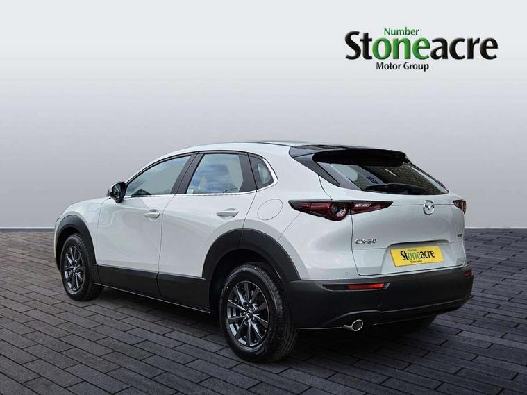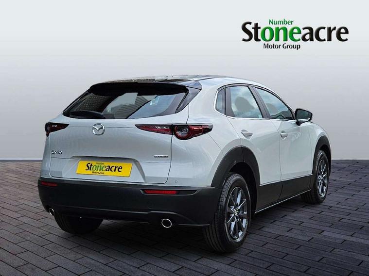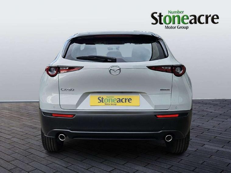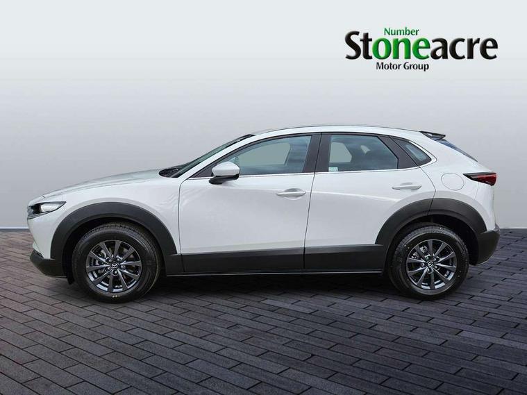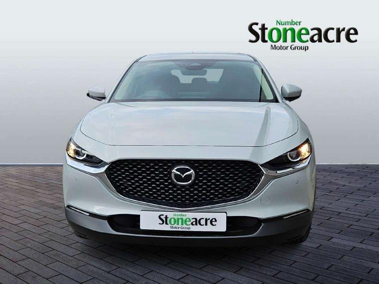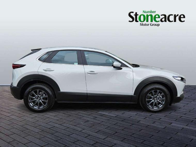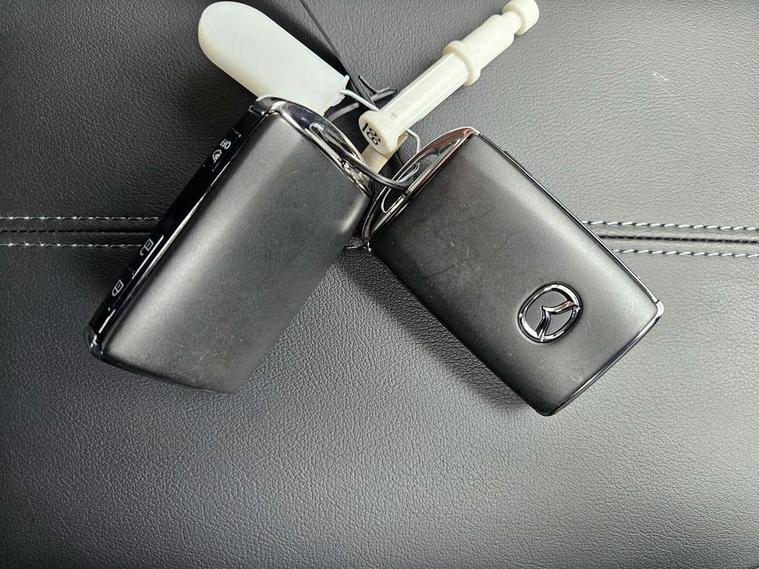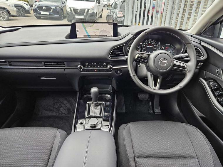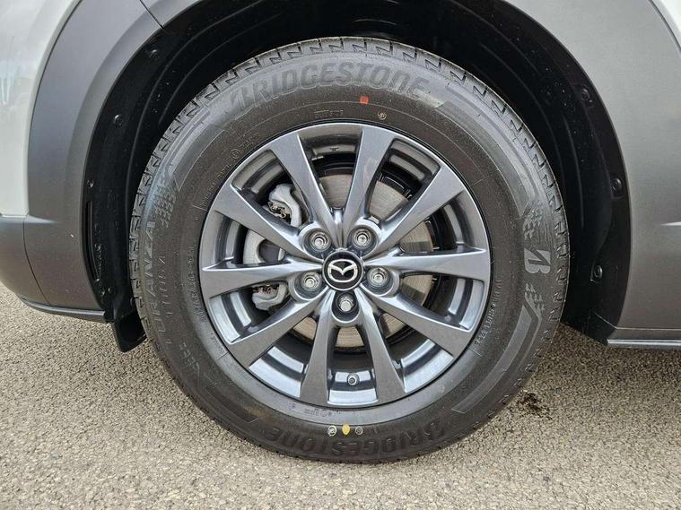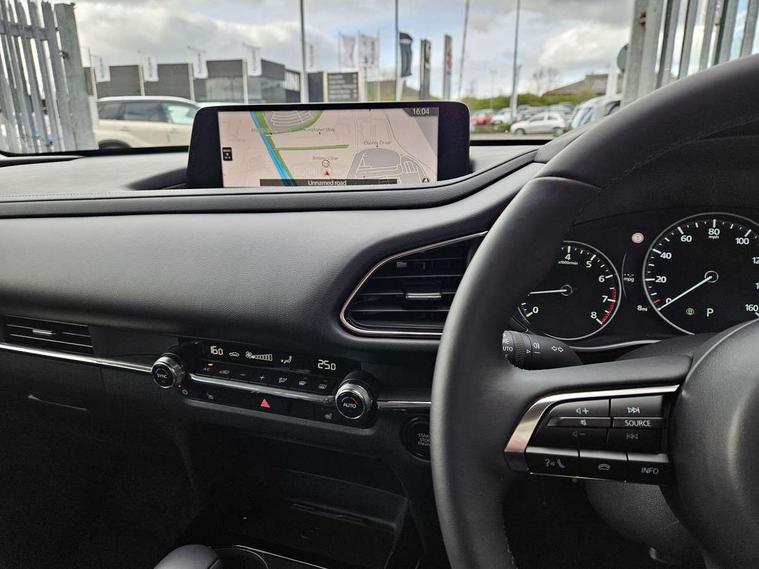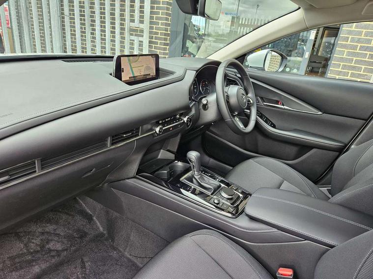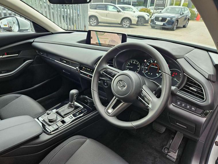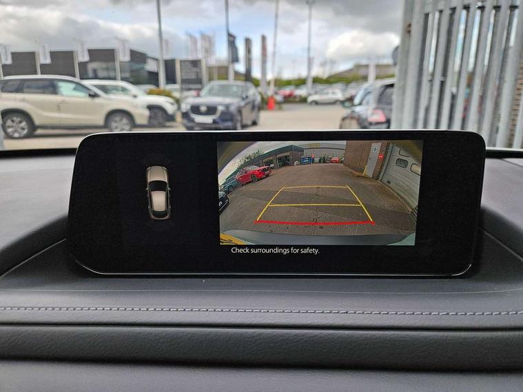 10.25" display with Mazda Connect infotainment, 7" TFT Colour driver instrument panel display, Adaptive cruise control (Mazda radar cruise control) features stop and go, Blind spot monitoring with rear cross traffic alert, Drive mode selector, Driver attention alert system, E-call with GPS, Emergency stop signalling system, Engine start/stop button, Front and rear parking sensors, Integrated Alexa Voice Assistant, Integrated bluetooth, Integrated Mazda navigation system, Intelligent speed assist, Lane keep assist system (LAS) with Lane departure warning system (LDWS), Mazda connected services, PAS, Qi wireless charging, Reversing camera, Service indicator, Tailgate, Traffic sign recognition, Trip computer, Windscreen projected colour active driving display (HUD), Wireless Apple CarPlay/Android Auto, Cylinder Deactivation, i-stop, 2 x USB Type-C inputs, AM / FM / DAB radio with 8 speakers, Multimedia Commander including separate volume dial, Steering wheel mounted audio/bluetooth controls, B-pillar and C-pillar garnishes in satin black finish, Auto dimming driver's door mirror, Auto dimming rear view mirror, Body coloured, electrically adjustable, heated auto power folding door mirrors with integrated indicators, Chrome finish signature wing in front grille, Coming/leaving home lighting function, Dual bright finish exhaust tip trim, Dusk sensing headlights, Electric front/rear windows with one touch auto up/down, Front kodo turn signal, Gloss black rear roof spoiler, LED auto headlight levelling, LED headlights with halogen daytime running lights and high beam control, LED rear combination lights, Rain sensing front wipers with adjustable speed and intermittent wipe, Rear fog lights, Rear side wing doors, Rear wiper, Satin black front grille, Third brake light, 12V power outlet in centre console, 3 seat bench in 2nd row, 60/40 split fold down rear seats, Cloth upholstery with interior accents, Dark cloth door panel inserts, Dashboard, door cards and front centre armrest in black cloth, Driver and front passenger visors with covered vanity mirror and driver ticket holder, Driver seat manual slide, recline, height and seat tilt adjust, Driver, front passenger and two rear door storage, Driver, Front passenger and two rear grab handles with coathooks, Dual zone climate control air conditioning with rear air vents, Folding rear centre armrest with two cup holders, Front and rear (x3) head restraints, Front and rear LED lighting, Front armrest, Front centre storage with two cupholders, Front passenger seatback pockets, Front passengers seat manual slide, recline and height adjustment, Gear shift indicator, Glovebox illumination, Heated front seats with 3 stage setting, ISOFIX child seat anchorage points attached on outer rear seats, Leather wrapped gear shift knob, Leather wrapped steering wheel with telescopic and tilt adjustment, LED luggage compartment lighting, Light roof headlining and pillars, Roof mounted sunglasses holder, Single front passenger seat, 3 point ELR front seat belts x2 with pretensioners, 3 point ELR rear seat belts, Anti-lock braking system (ABS), Drivers knee airbag, DSC - Dynamic Stability Control, Electronic parking brake with auto disengage function and auto hold function, Front and rear curtain airbags, Front dual stage driver and single stage front passenger airbags, Front passenger airbag cut-off switch, Front side airbags, Front smart city brake support, G-Vectoring control plus, Hill launch assist, Manual child lock in rear doors, Mild Hybrid system with regenerative braking, Seatbelt reminder for driver/front passenger and rear seats, Traction control system (TCS), Tyre pressure monitoring system (TPMS), Remote central locking with deadlocking and automatic door lock when driving, Smart keyless entry, Thatcham accredited alarm and immobiliser, 16" Grey metallic alloy wheels, Emergency tyre repair kit,