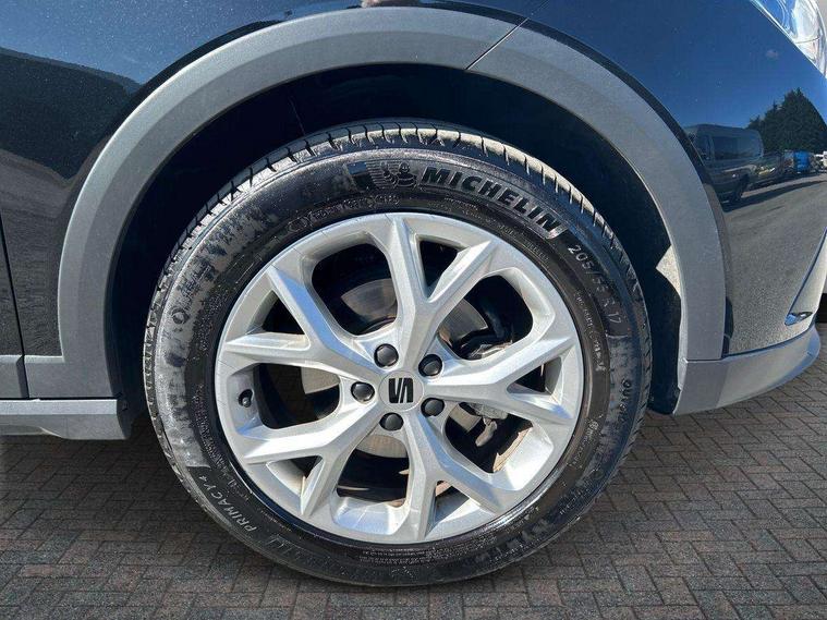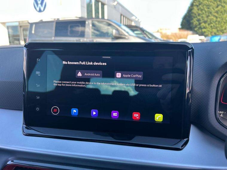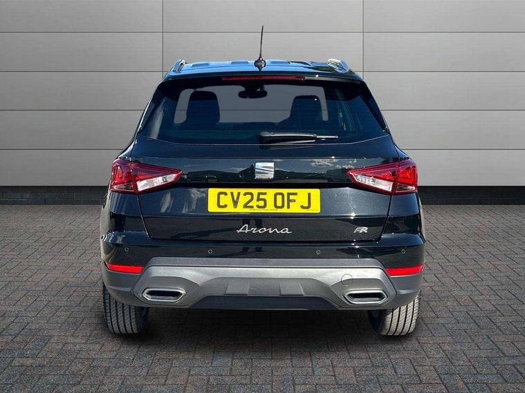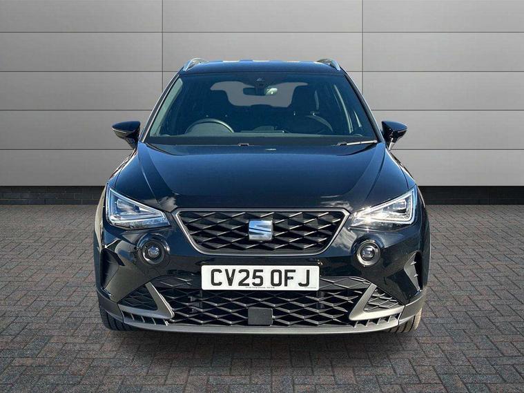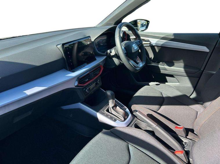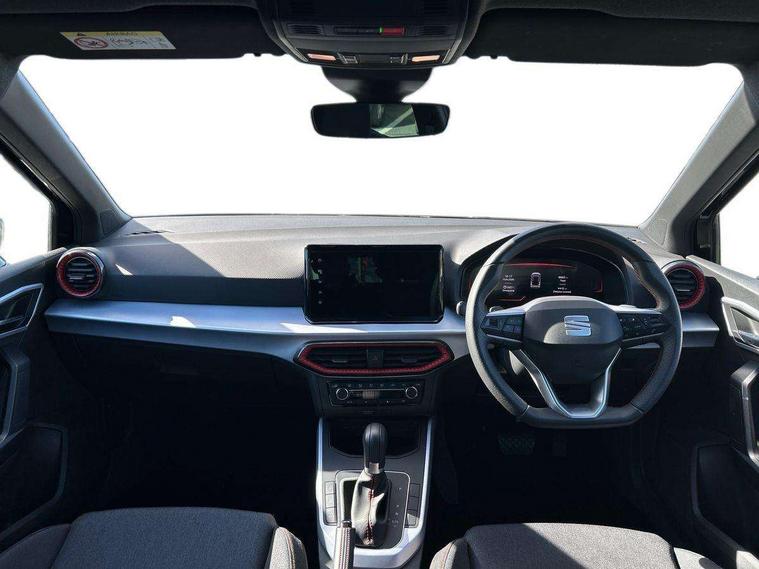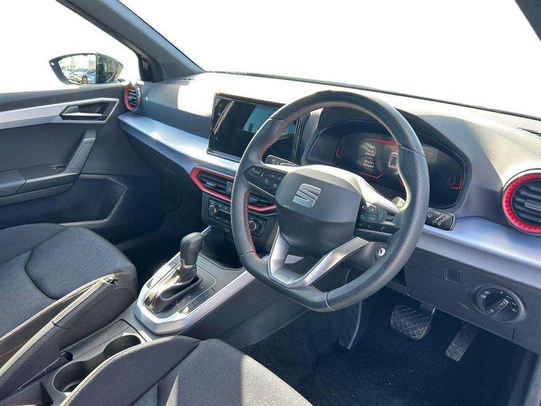 'Lights On' Reminder warning buzzer, 8" Digital cockpit, Digital clock, E-call, Electric speed sensitive power steering, Full link smartphone integration with mirror link, wireless apple carplay, Google android auto + USB Type C cable for apple and android devices, Lane keeping system, Low fuel warning light, Outside temperature display, RPM counter, SEAT Drive profile - Four different models normal-sport-eco-individual, steering response, throttle response and gear shifts mode, Trip computer, Wireless phone charger, 6 speakers, 9.2" colour touchscreen with navigation system, voice control and USB port (type c), Bluetooth interface for hands free and audio streaming, DAB digital radio and AM/FM radio, Steering wheel mounted audio controls, Anti theft roof antenna, Auto dimming interior rear view mirror, Automatic activation of hazard warning lights, Body coloured bumpers, Body coloured door handle inserts, Chrome roof rails and window surrounds, Dark tinted rear windows, Electric front/rear windows, Electrically adjustable, heated and folding door mirrors, Front fog lights with cornering function and rear fog light, FULL LED automatic headlights with dynamic headlight range control, coming and leaving home, LED daytime running lights, LED rear tail lights and licence plate lights, Protective side mouldings, Rain sensing wipers, Rear side wing doors, Rear spoiler, Rear window wash/wipe, Roof colour door mirrors, Third brake light, Twin exhaust pipe styling hidden exhaust pipe, Visible VIN plate, 2 cupholders, 3 seat bench in 2nd row, 60/40 split folding rear seat, Aircare filter, Black interior roof, Cloth upholstery, Double boot floor, Driver sunvisor with covered mirror + card holder, Dual zone climate control, Front courtesy light with front reading lights, Gear shift indicator, Height adjustable front seats, Height/reach adjustable steering column, Illuminated air vent surrounds, Illuminated boot, Instrument lighting with brightness control, Interior ambient lighting, Interior light in footwell, central console and door panel, ISOFIX points in outer rear seats with top tether anchorage points, Passenger sunvisor with vanity mirror, Perforated flat bottomed leather steering wheel/gear knob/handbrake with red stitching and FR logo, Potentiometer, Single front passenger seat, Steering wheel mounted gearshift paddles, Two front and three rear height adjustable headrests, Interior chrome pack - Arona, Safe and driving pack (S) - Arona, 3 point seatbelts on all rear seats, ABS, Active front headrests, Child locks on rear doors, Driver and front passenger airbags with front passenger airbag de activation, front side and curtain airbags, Emergency Brake Assist (EBA) and front assist, Front and rear seatbelt reminder, Hill hold control, Multi-Collision braking, Tiredness recognition system, Traction control, Tyre pressure monitoring system, Alarm with back up horn with tow away protection, Deadlock, Electronic engine immobiliser, Locking wheel bolts, Remote central locking, Titan black dashboard, 17" Dynamic alloy wheels,