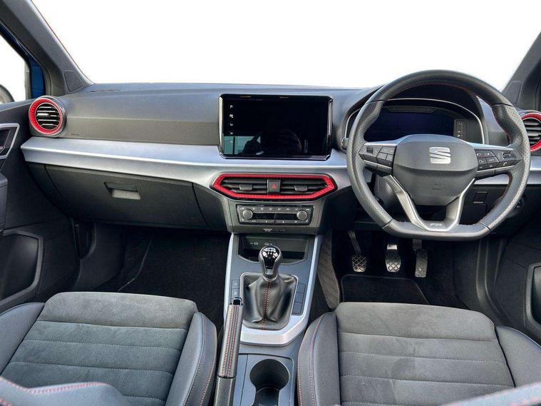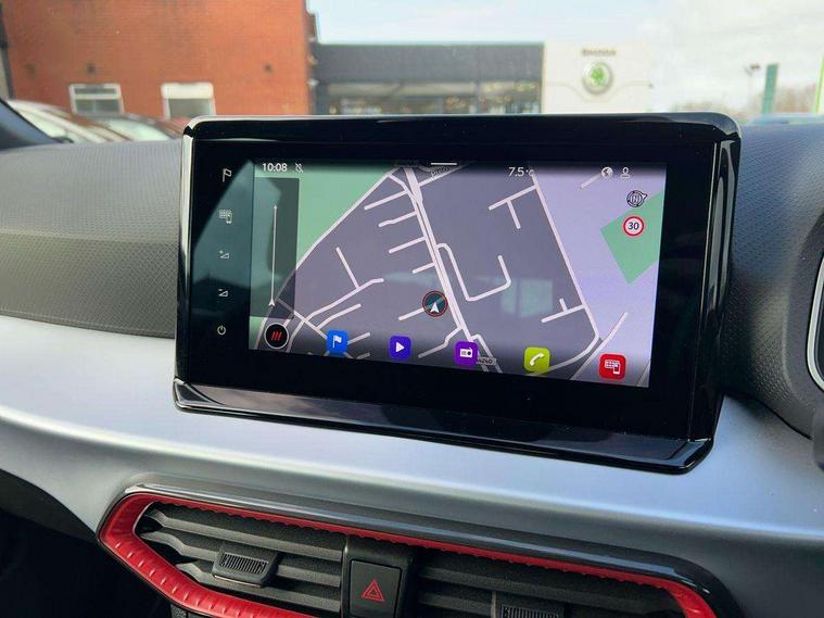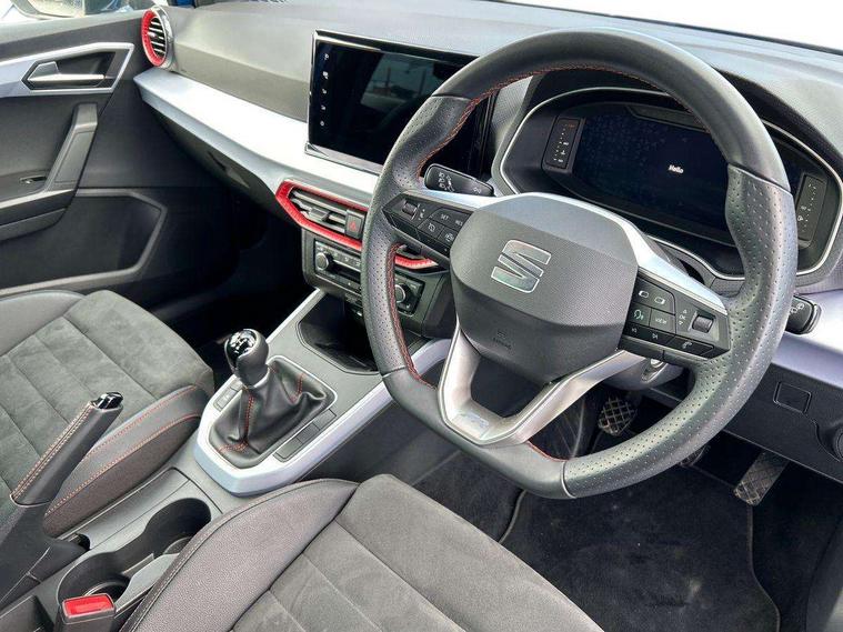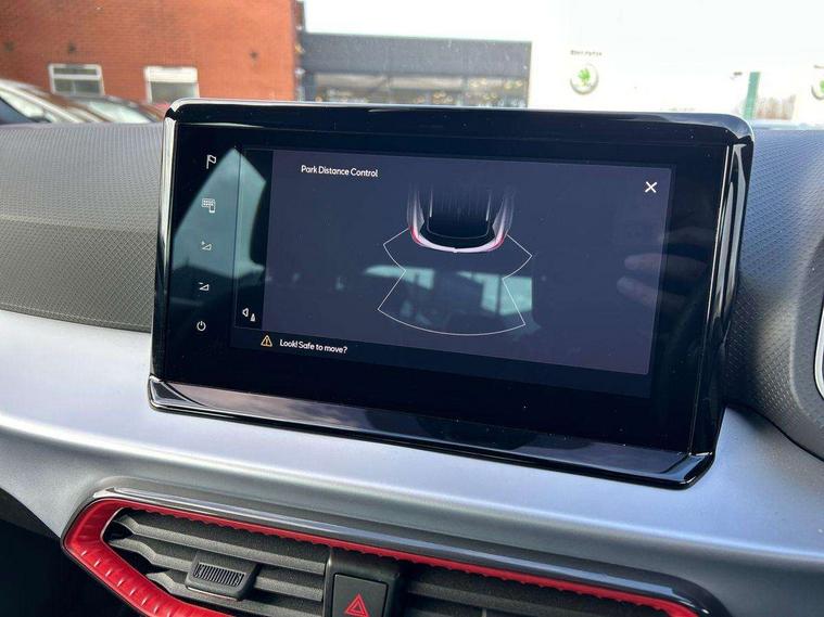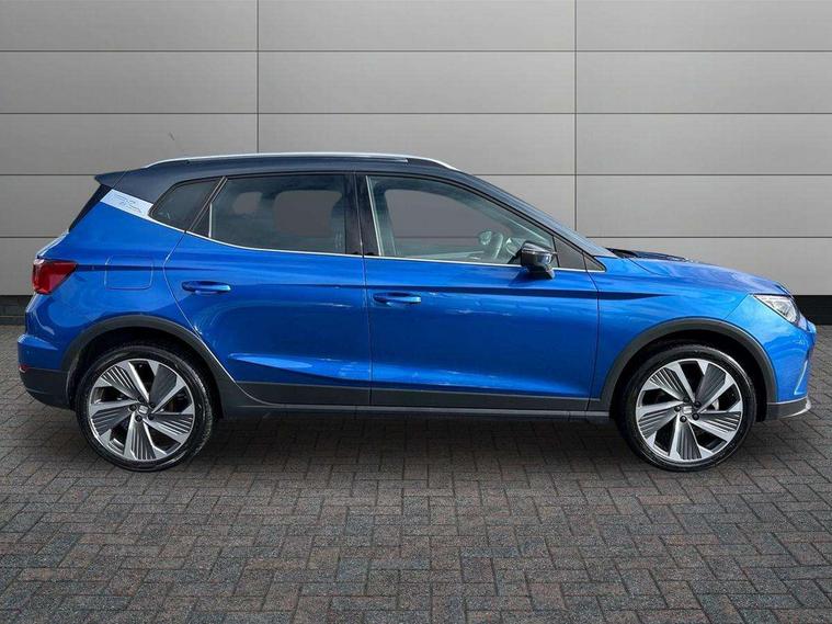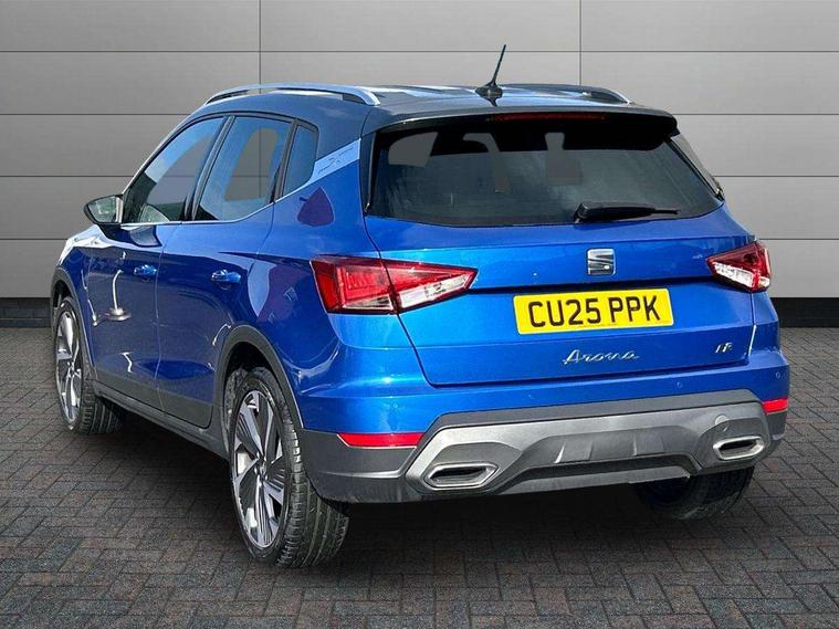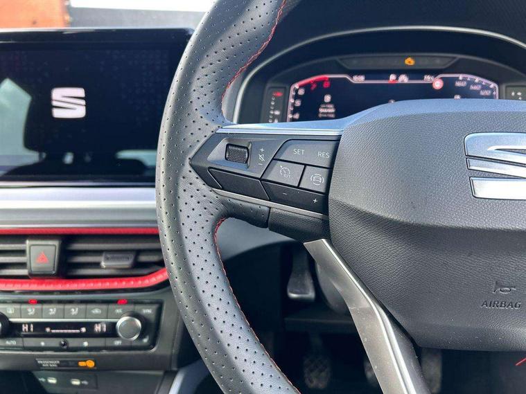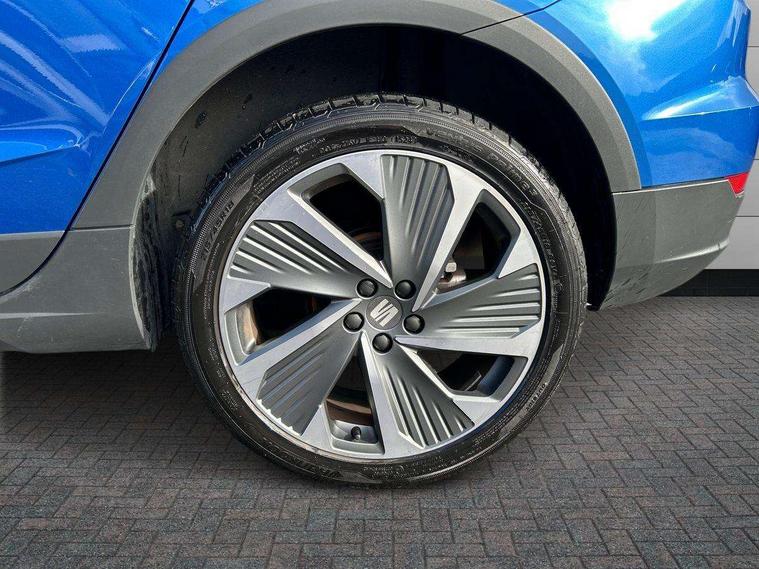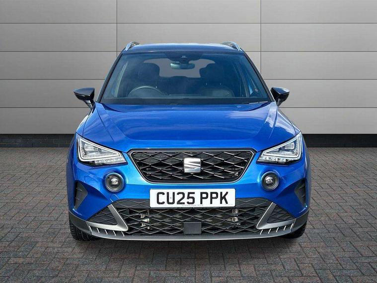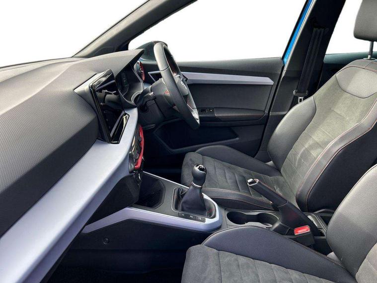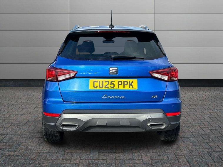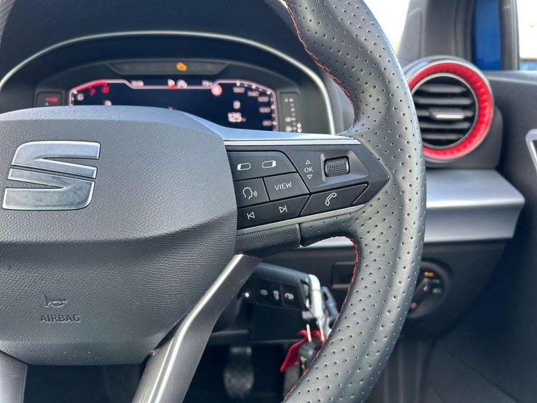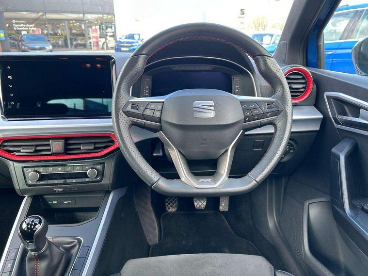 'Lights On' Reminder warning buzzer, 10" Digital cockpit, Digital clock, E-call, Electric speed sensitive power steering, Full link smartphone integration with mirror link, wireless apple carplay, Google android auto + USB Type C cable for apple and android devices, Lane keeping system, Low fuel warning light, Outside temperature display, RPM counter, SEAT Drive profile - Four different models normal-sport-eco-individual, steering response, throttle response, Trip computer, Wireless phone charger, 6 speakers, 9.2" colour touchscreen with navigation system, voice control and USB port (type c), Bluetooth interface for hands free and audio streaming, DAB digital radio and AM/FM radio, Steering wheel mounted audio controls, Anti theft roof antenna, Auto dimming interior rear view mirror, Automatic activation of hazard warning lights, Body coloured bumpers, Body coloured door handle inserts, Chrome roof rails and window surrounds, Dark tinted rear windows, Electric front/rear windows, Electrically adjustable, heated and folding door mirrors, Front fog lights with cornering function and rear fog light, FULL LED automatic headlights with dynamic headlight range control, coming and leaving home, LED daytime running lights, LED rear tail lights and licence plate lights, Protective side mouldings, Rain sensing wipers, Rear side wing doors, Rear spoiler, Rear window wash/wipe, Roof colour door mirrors, Third brake light, Twin exhaust pipe styling hidden exhaust pipe, Visible VIN plate, 2 cupholders, 3 seat bench in 2nd row, 60/40 split folding rear seat, Aircare filter, Black interior roof, Double boot floor, Driver sunvisor with covered mirror + card holder, Dual zone climate control, Front comfort seats, Front courtesy light with front reading lights, Front seat back storage pockets, Gear shift indicator, Heated front seats, Height adjustable front seats, Height/reach adjustable steering column, Illuminated air vent surrounds, Illuminated boot, Instrument lighting with brightness control, Interior ambient lighting, Interior light in footwell, central console and door panel, ISOFIX points in outer rear seats with top tether anchorage points, Microsuede cloth upholstery, Passenger sunvisor with vanity mirror, Perforated flat bottomed leather steering wheel/gear knob/handbrake with red stitching and FR logo, Potentiometer, Single front passenger seat, Two front and three rear height adjustable headrests, Interior chrome pack - Arona, Safe and driving pack (S) - Arona, 3 point seatbelts on all rear seats, ABS, Active front headrests, Child locks on rear doors, Driver and front passenger airbags with front passenger airbag de activation, front side and curtain airbags, Emergency Brake Assist (EBA) and front assist, Front and rear seatbelt reminder, Hill hold control, Multi-Collision braking, Tiredness recognition system, Traction control, Tyre pressure monitoring system, Alarm with back up horn with tow away protection, Deadlock, Electronic engine immobiliser, Locking wheel bolts, Remote central locking, Titan black dashboard, 18" Performance Cosmo grey matt alloy wheels,