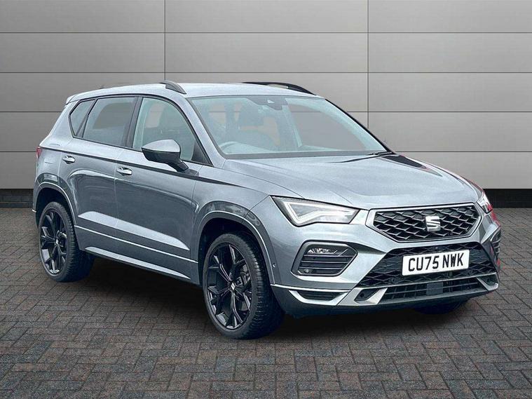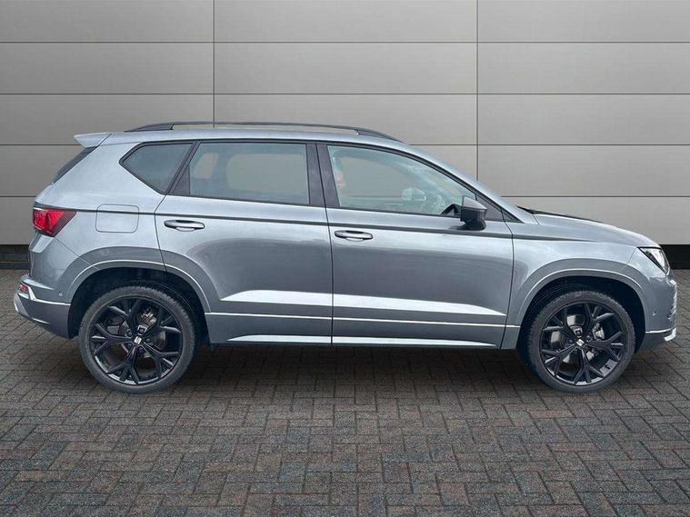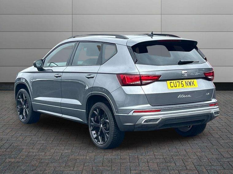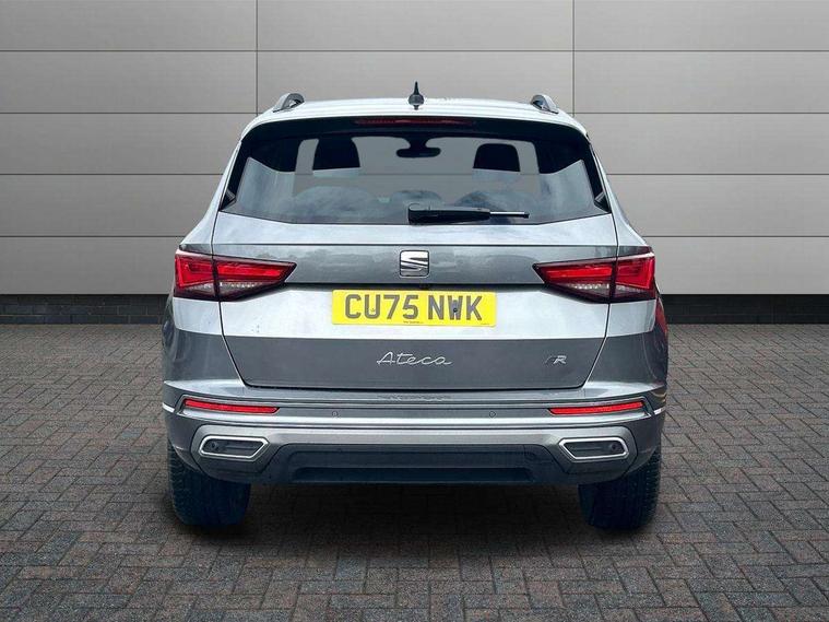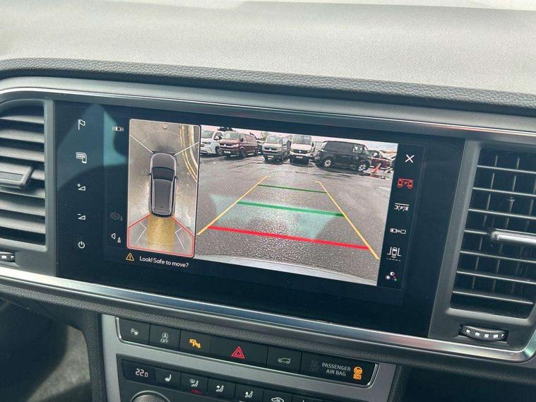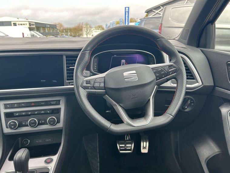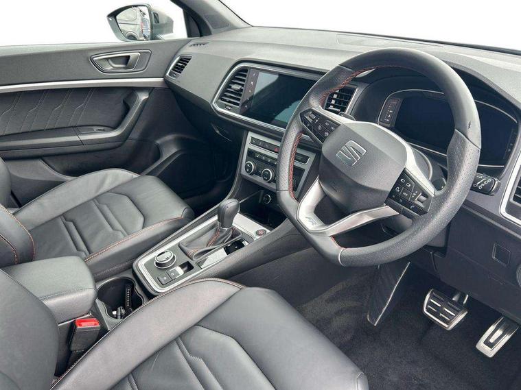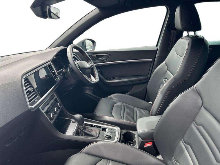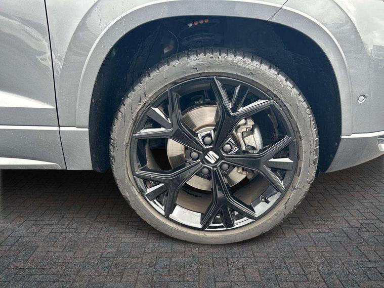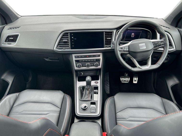 10" Digital cockpit, Bluetooth audio streaming with handsfree system, E-call, Electric tailgate with virtual pedal, Outside temperature gauge, Progressive power assisted steering, SEAT drive profile with driving experience button - Normal, Sport, Eco and Individual mode, gearshift, steering and throttle response, Self parking functionality (includes front and rear parking sensors), Speed limiter, Start/stop system, Top view camera with rear view camera, Trip computer, wired and wireless full link smartphone integration, Wireless phone charger, Steering wheel mounted audio/phone controls, Black roof rails, Black side window trim, Body colour bumpers, Body coloured wheel arch surrounds, Chrome front grille frame, Dark tinted rear windows, Daytime running lights, Door mirrors with welcome light silhouette, Dynamic headlight range control with self adjusting whilst driving, Electric adjustable/heated/folding door mirrors, Front and rear electric windows, Illuminated aluminium front door sill, LED 3rd brake light, LED headlamps with lens and LED front fog lamps with cornering function, LED rear tail lights with dynamic indicators, Rear exhaust tailpipe, Rear fog lights, Rear side wing doors, Rear spoiler, Rear wash/wipe, Variable front intermittent wipers, 12V socket in front, 3 seat bench in 2nd row, 60/40 split folding rear seat, Aluminium pedals, Black greenhouse interior roof, Dual zone climate control, Electric adjustable driver seat with memory function, Front and rear head restraints, Front centre armrest, Front seat back storage pockets, Heated front seats, Height adjustable passenger seats with lumbar adjustment, ISOFIX points in outer rear seats with top tether anchorage points, Leather sports steering wheel and gear knob, Leather upholstery with front comfort seats, Rear armrest and easy back seat release mechanism from boot, Single front passenger seat, Steering wheel mounted gearshift paddles, Convenience pack - Ateca, Interior lighting pack - Ateca, Navigation system pack with DAB - Ateca, Safety and driving pack (L) - Ateca, Safety and driving pack with attention and drowsiness assist - Ateca, 3x3 point rear seatbelts, ABS, Traction control system (TCS), Electronic stability control (ESC) and Electronic differential lock system (XDS), Airbags - Driver and front passenger airbag with deactivation, front side, two curtain and driver's knee airbags, Electric parking brake with auto hold function, Front and rear seatbelt reminder, Hill hold control, Manual rear child locks, Single tone horn, Tyre pressure monitoring system, Alarm, Keyless entry, Locking wheel bolts, Remote central locking, Chrome interior detailing, 19" Exclusive alloy whelels 36/10 in glossy black, Tool kit,