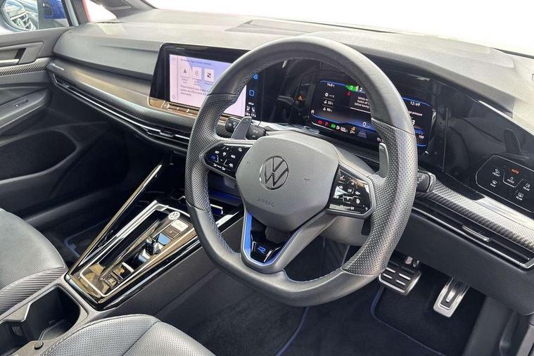 Adaptive cruise control (ACC) with speed limiter and front assist (reacting to vehicles pedestrians and cyclists), Car2X communication, Digital cockpit pro - 10.25" high resolution TFT dash display screen with customizable menus and information, Drive acoustics, Driver alert system, Dynamic road sign display, eCall - Emergency call service for SOS calls to emergency response, Lane assist, Lane change assistant, Mobile phone interface with wireless inductive charging function, Multifunction camera for distance control, PAS, Speedo, rev counter, electronic odometer, trip, service interval display, exterior temperature and fuel gauge, Start/Stop function, Travel assist with emergency side assist with electrically foldable door mirrors, USB-C ports in the front and rear centre console with increased charging performance, Warning buzzer and light for front seatbelts unfastened, Wireless app connect, 4Motion 4 wheel driver, Emotion start function, Front differential lock, Petrol Particulate Filter, XDS electronic differential lock for improved traction and handling, Premium USB cable in choice of either Apple or Android smartphone compatibility, "20" badge on the B-Pillar, Ambient lighting, exterior illuminated styling elements at the sides, Auto dimming rear view mirror, Automatic headlamp activation with Coming home and Leaving home feature, Automatic headlights, Blue 'R' logo on front grille, side fenders and rear tailgate, Body colour bumpers, Body colour door handles, Body colour rear roof spoiler, Front and rear electric windows, Golf 20 years styling - including '20 R' logo projection from door mirrors, Heat insulating glass windscreen, Heated rear windscreen, High level 3rd brake light, Highway light, Illuminated front grille, IQ.Light - LED Matrix headlights, dynamic headlight control with advanced high beam control matrix dipped main beam + LED DRL + 22 LED lights, LED front fog lights with 5 honeycomb design, LED License plate illumination, LED rear combination lamp inlcuding dynamic turn signal, Performance rear spoiler, Rain sensor, Rear fog light on one side and reversing lights on both sides, Rear side wing doors, Rear tinted glass 65% light absorbing from B pillar backwards, Rear windscreen washer and wiper with interval delay, Remote electrically heated, adjustable and foldable door mirrors, including door mirror puddle lights and reverse activated kerb-view adjustment on pa, Welcome light, 12V socket in front centre console, 12V socket in luggage compartment, 3 rear head restraints, 3 seat bench in 2nd row, 3 zone climate with controls in the rear, Aluminium gear knob, Ambient lighting - Customisable 30 colour ambient lighting, Black roof lining, Blue R logo on the multifunction sport steering wheel and on the vehicle key cap, Brushed stainless steel pedals, Chrome plated surround to electric mirror button, window switch and air vent surrounds, Door insert in Artvelours, Drivers and front passengers sun visors with vanity mirrors, Front + rear carpet mats in recycled material, Front centre armrest with storage compartment, Front cupholders x 2, Front passenger seat, Front reading lights x 2 incorporating LED technology, Front seat lumbar support adjuster, Glovebox, Height adjustable front seats, Height and reach adjustable steering wheel, Isofix child seat preparation for 2 rear child seats and front passenger seat, Leatherette door armrests and centre armrest, Luggage compartment lighting, Nappa leather upholstery with heated, active climate control sports comfort seats, electric adjust driver seat, memory, leather door insert, R leather wrapped multi function sports heated steering wheel with extended paddle shift, Removable luggage compartment cover, Split folding backrest with centre armrest and unsplit rear seat bench, Sports seats with integrated headrest in Nappa leather front and outer rear seats with R logo in upper backrest, Woven fabric storage compartments in front and rear doors, R performance pack - Golf R 20 years, R styling pack - Golf, Winter pack - Golf R Line/GTE/GTD/GTI/GTI Clubsport/R/Alltrack, 3 point height adj front seatbelts + pretensioners, 3 rear three point seatbelts, ABS, Blue brake callipers in front with R logo, Child locks on rear doors, Driver and front passenger airbag with front passenger airbag deactivation, Drivers and front passengers safety optimised head restraints, Electronic parking brake with auto hold, ESC (Electronic Stability Control), Extended pedestrian protection measures, Front and rear passengers curtain airbag system including front side airbags, Front centre airbag, Front disc brakes, Front side airbags with curtain airbags, Rear disc brakes, Two tone horn, Tyre pressure monitoring system, Alarm with interior protection and deactivation via infotainment system, Electronic engine immobiliser, Keyless entry with start/stop button on centre console, High gloss black centre console, High quality decorative trim in Genuine Carbon on dash panels and door trims, Soul dashboard, Tyre mobility kit Includes 12V compressor and tyre sealant,