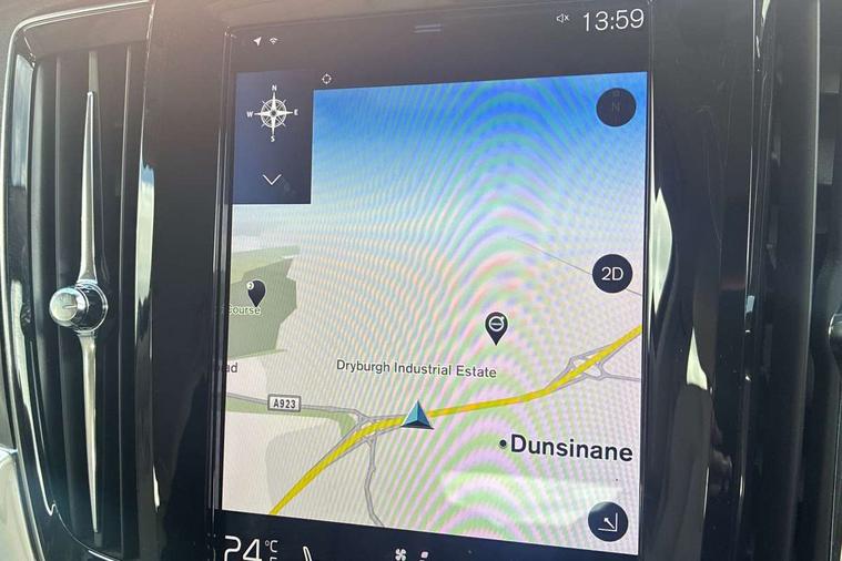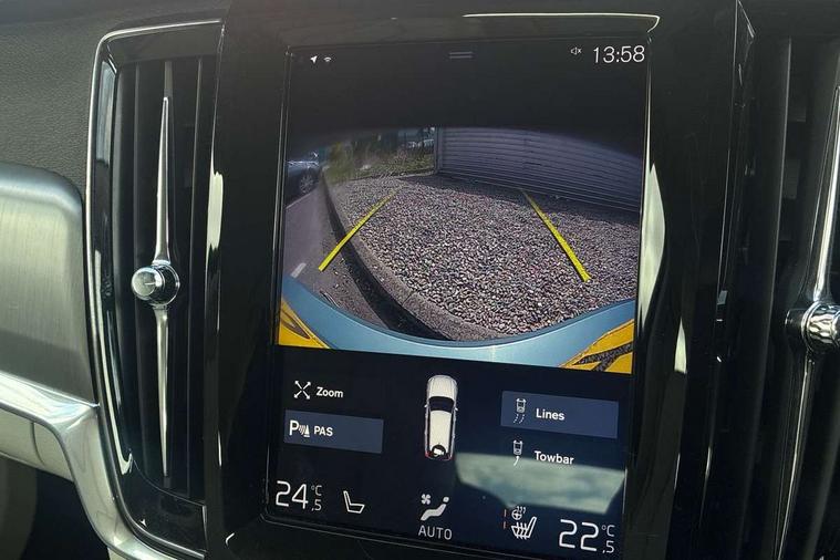 12.3" Active TFT crystal driver's instrument display, Adaptive cruise control with pilot assist, Adjustable steering wheel force, Bluetooth system, Drive mode selector, Electric tailgate release, Forward collision warning, Lane keep assist with driver alert control, Oncoming Lane Mitigation, Road Edge Detection, Service interval indicator, Speed limiter, Speed sensitive steering, Touch screen display, Trip computer, Voice control system, Volvo on call, Dynamic chassis, Recharging port located in nearside front wing, DAB Digital radio, Steering wheel mounted audio controls, Adaptive brake lights, Auto dimming interior mirror, Automatic headlamp levelling, Body colour electric folding/heated door mirrors, Body coloured bumpers, Chrome window surround, Front and rear electric windows, Home safe and approach lighting, Illuminated side steps, LED Headlights + Active high beam incorporating daytime running lights, Piano black front grille with chrome surround, Rain sensor windscreen wipers, Roof antenna, Roof spoiler, Silver roof rails, Twin chrome exhaust tailpipes, Visible VIN plate, 12V power point in luggage area, 12V socket in front tunnel console, 3 spoke leather steering wheel with chrome trim, 60/40 split folding rear seat, A-pillar parking ticket holder, B Pillar ventilation, Bright metal luggage threshold, Centre armrest with storage box, Centre console cupholder, Centre console storage, Door step illumination, Electric height adjustable driver seat, Electric lumbar support, Floor mats, Front and rear aluminium tread plates, Front footwell illumination, Front headrests, Front passenger seat electric height adjust, Front tunnel storage net, Front/rear reading lights, Grocery bag holder-luggage area, Heated front seats, Height/reach adjustable steering column, Illuminated gear knob, Illuminated glovebox with lock, Illuminated luggage compartment, Illuminated vanity mirror, Isofix system on outer rear seats, Leather upholstery, Load cover, Pollen filter, Power Folding Rear Seat Backrests and Headrests, Rear armrest with storage + cupholders, Ski hatch, Storage compartment on driver's side, Theatre dimming interior lights, Underfloor stowage compartment, 3x3 point rear seatbelts, ABS/EBD, Active bonnet, City safety braking system, Drivers knee airbag, Dual stage driver/passenger airbags, EBA, Electronic parking brake with auto hold, Fasten seatbelt reminder, Front and rear curtain airbags, Hill start assist, IC (Inflatable Curtains) - Full Length, Passenger airbag cut-off device, Road sign information display, Run off Road Mitigation, Run off Road Protection, Seatbelt pre-tensioners, Side airbags, Side impact protection, STC - Stability and traction control, Tyre pressure monitoring system, Warning triangle and first aid kit, WHIPS whiplash protection system - front, Anti-theft alarm including immobiliser/volume sensor + level sensor, Deadlocking system, Key integrated remote control central locking, Keyless start, Locking wheel nuts, Private locking, Tempa spare wheel,