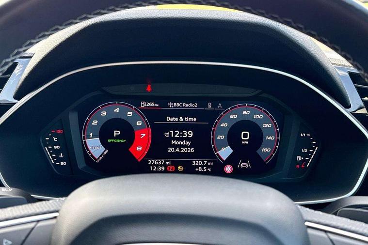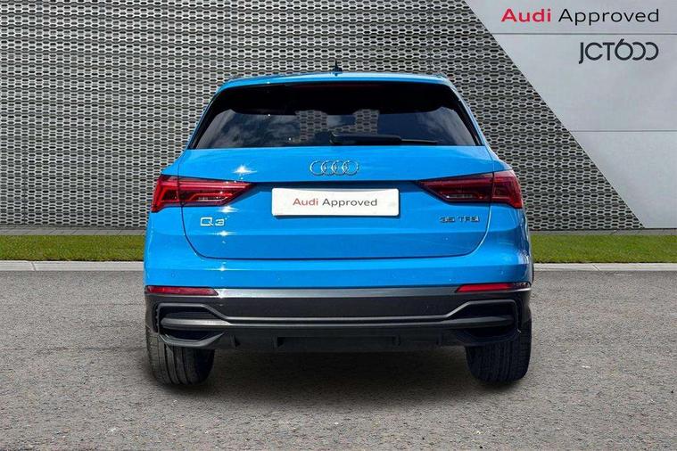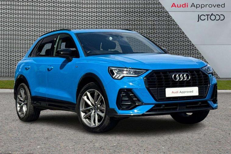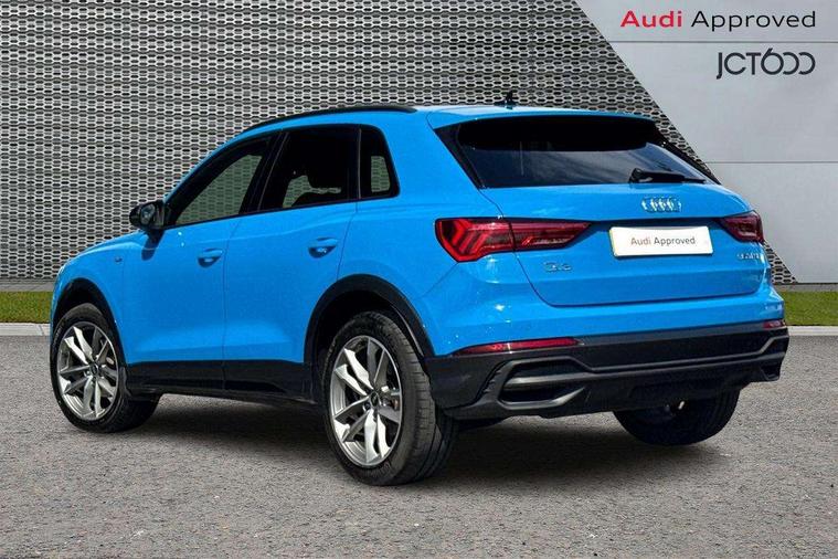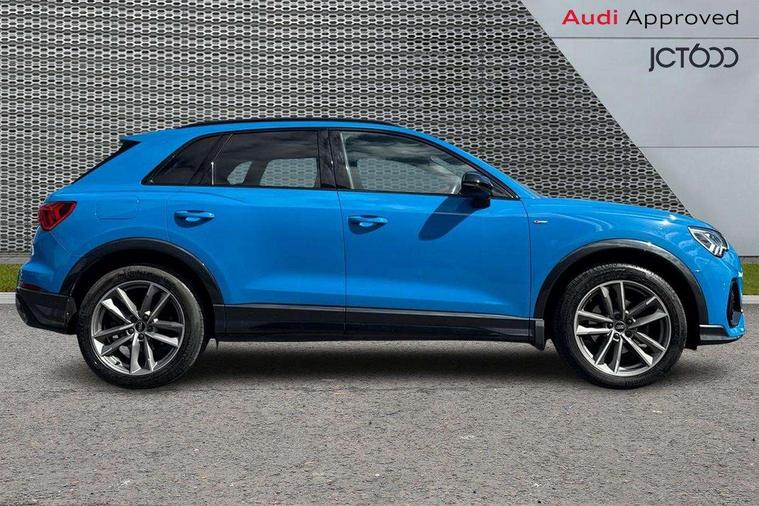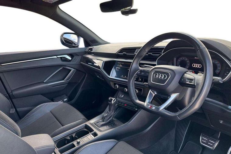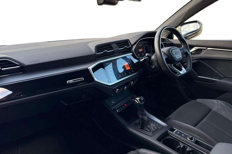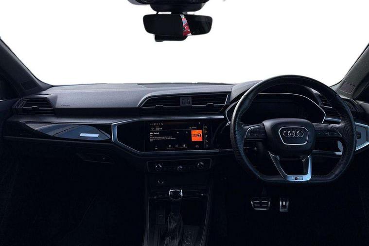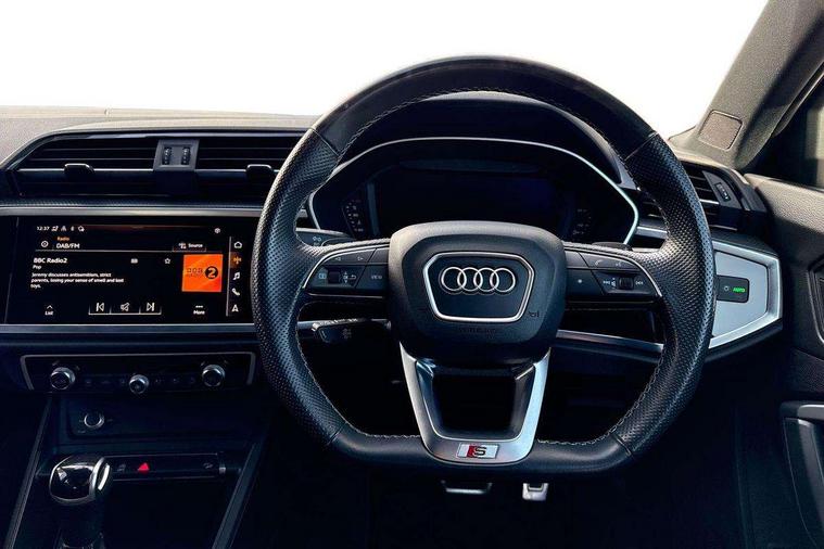 Amazon alexa Integration, Audi connect safety and service (e-call), Audi drive select, Audi lane departure warning, Audi smartphone interface includes wireless Apple carplay/Android Auto, Audi Virtual Cockpit - 10.25" display, Bluetooth interface, Camera based traffic sign recognition, MMI Navigation Plus with high resolution 10.1 inch touchscreen colour display, Power operated tailgate, Progressive steering, Service interval indicator, Start stop system with recuperation, Voice control system with natural language interaction, 48V Mild hybrid technology, Sports suspension, 2 USB-C ports with charge and data functions, 6 passive loudspeakers, DAB digital radio module, Acoustic windscreen, Auto dimming frameless rear view mirror, Black roof rails, Electrically folding, adjustable and heated door mirrors with integrated LED side indicators and kerb view function for passenger side, Front and rear electric windows, Front fog lights, Grille vertical bars in aluminium silver/Matt, High gloss black finish B and C pillars, LED headlights with LED daytime running lights, LED rear lights, LED third brake light, Privacy glass dark tinted rear and rear-side windows (from B-pillar backwards), Rain and light sensors, Rear diffuser strip in matt titanium black, Rear side wing doors, Rear wiper, S line bumpers in contrasting Manhattan grey, Tinted rear windows, Variable front intermittent wipers, 12V socket in rear centre console, 3 seat bench in 2nd row, 40:20:40 folding with manual adjustment for 60:40 forwards/backwards position and backrest angle, Adjustable rear seat bench/backrest with centre armrest and cupholder, Black cloth headlining, Dual zone electronic climate control, Front and rear black floor mats with contrast stitching in rock grey, Front and rear headrests, Front and rear roof module including reading lights, Front centre armrest, Glove compartment lighting, Height and reach adjustable steering wheel, Illuminated door sill trims with S logo, ISOFIX child seat mounting for front passenger with airbag deactivation and outer rear seat including top tether attachment point for outer rear seats, Luggage compartment light, Manual front seats with height adjustment, Perforated leather gearknob, Single front passenger seat, Stainless steel luggage compartment sill finisher, Stainless steel pedals, Tool kit, Black styling pack - Q3, Non smoking pack - Q3, 3x3 point rear seatbelts, 6 airbags - Driver, front passenger, curtain and side windows, Audi pre-sense front with pedestrain and cyclist recognition, Electrically operated child locks on rear doors, Electromechanical parking brake, Electronic stabilisation control including ABS, ASR and EDL, Front seatbelt reminder, Hill descent control, Hill hold assist, Pre sense basic, Seatbelt monitoring, Tyre pressure warning, Warning triangle and first aid kit, Anti theft alarm, Anti theft wheel bolts, Immobiliser, Remote central locking, Detail dashboard around MMI touch colour display in glass look, black with surround in aluminium look, Leatherette door armrest, Piano black inlay, Tyre repair kit,