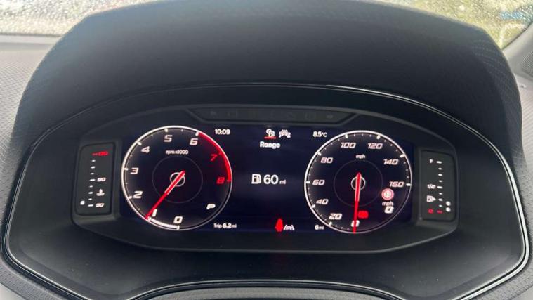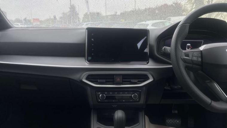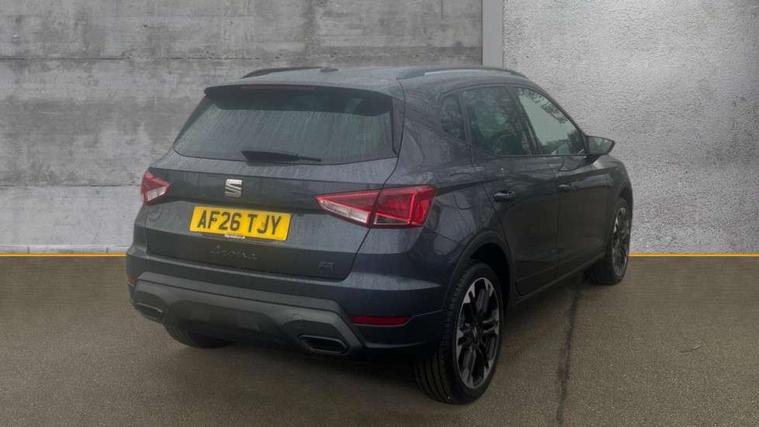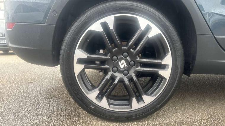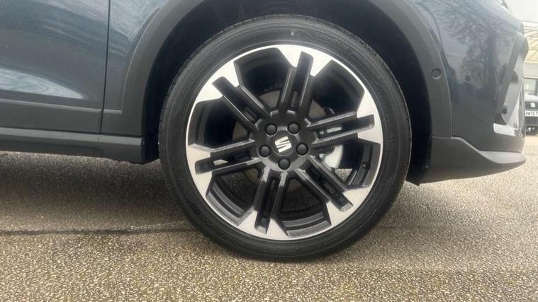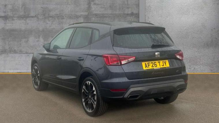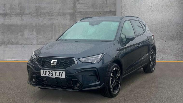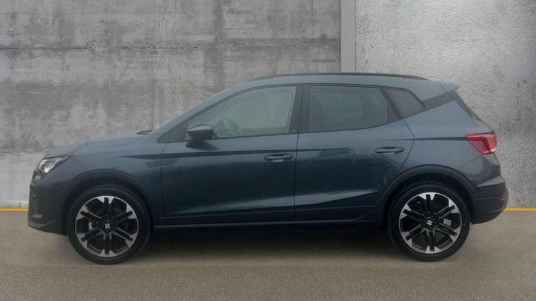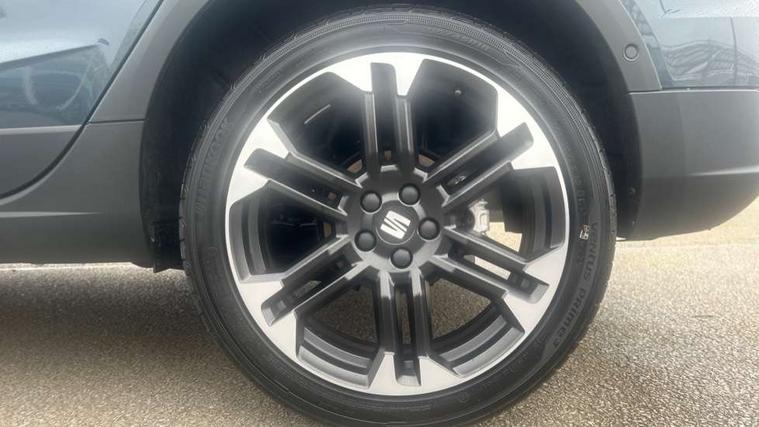 'Lights On' Reminder warning buzzer, 10" Digital cockpit, Digital clock, E-call, Electric speed sensitive power steering, Front parking sensors, Full link smartphone integration with mirror link, wireless apple carplay, Google android auto + USB Type C cable for apple and android devices, Low fuel warning light, Outside temperature display, Rear view camera, RPM counter, SEAT Drive profile - Four different models normal-sport-eco-individual, steering response, throttle response and gear shifts mode, Trip computer, Wireless phone charger, 9.2" colour touchscreen with navigation system, voice control and USB port (type c), Bluetooth interface for hands free and audio streaming, DAB digital radio and AM/FM radio, Steering wheel mounted audio controls, Anti theft roof antenna, Auto dimming interior rear view mirror, Automatic activation of hazard warning lights, Black roof rails and window surrounds, Body coloured bumpers, Body coloured door handle inserts, Dark tinted rear windows, Electric front/rear windows, Electrically adjustable, heated and folding door mirrors, Front fog lights with cornering function and rear fog light, LED 3rd brake light, LED daytime running lights, LED rear tail lights and licence plate lights, Protective side mouldings, Rain sensing wipers, Rear side wing doors, Rear spoiler, Rear window wash/wipe, Roof colour door mirrors, SEAT design Full LED automatic headlamps with dynamic headlight range control, coming and leaving home feature, Twin exhaust pipe styling with double flow exhaust pipe, Visible VIN plate, 2 cupholders, 3 seat bench in 2nd row, 60/40 split folding rear seat, Aircare filter, Black headliner, Cloth upholstery with embossed textile/Sport bucket seats, Double boot floor, Driver sunvisor with covered mirror + card holder, Dual zone climate control, Front courtesy light with front reading lights, Front seat back storage pockets, Heated front seats, Height adjustable front seats, Height/reach adjustable steering column, Illuminated air vent surrounds, Interior ambient lighting, Interior light in footwell, central console and door panel, ISOFIX points in outer rear seats with top tether anchorage points, Passenger sunvisor with vanity mirror, Perforated flat bottomed leather steering wheel/gear knob/handbrake with red stitching and FR logo, Red coloured interior air vents, Single front passenger seat, Steering wheel mounted gearshift paddles, Two front and three rear height adjustable headrests, Interior chrome pack - Arona, Safe and driving pack (S) - Arona, Storage pack - Arona, 3 point seatbelts on all rear seats, ABS, Active front headrests, Child locks on rear doors, Driver and front passenger airbags with front passenger airbag de activation, front side and curtain airbags, Emergency Brake Assist (EBA) and front assist, Front and rear seatbelt reminder, Hill hold control, Multi-Collision braking, Tiredness recognition system, Traction control, Tyre pressure monitoring system, Anti-theft alarm (perimeter and interior monitoring) with backup horn and towing protection, Central locking with radio remote control, interior controls and SAFELOCK, Deadlock, Electronic engine immobiliser, KESSY Keyless entry and go, Locking wheel bolts, 18" Performance machined alloy wheels in black,