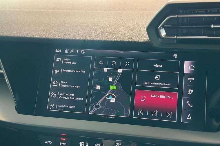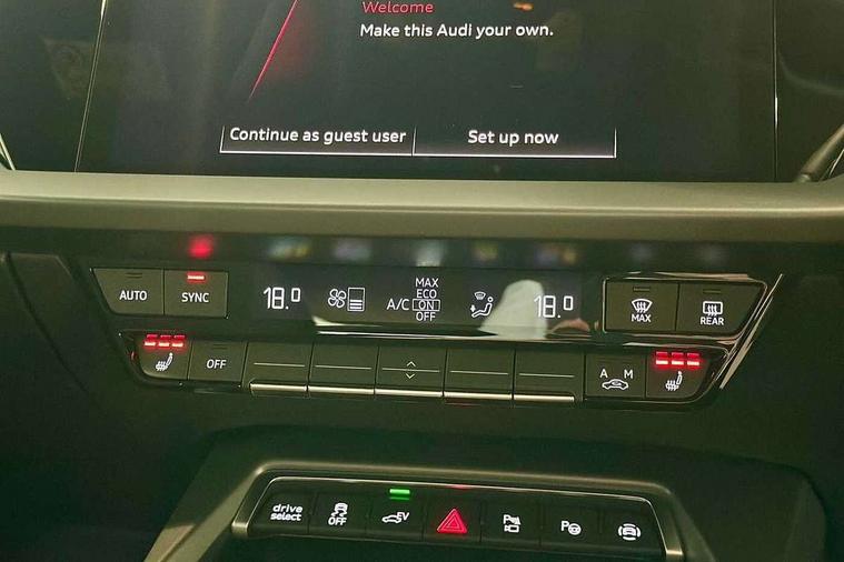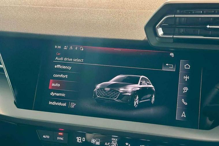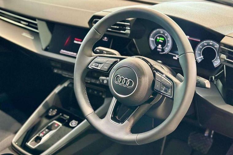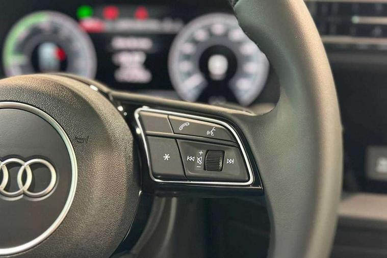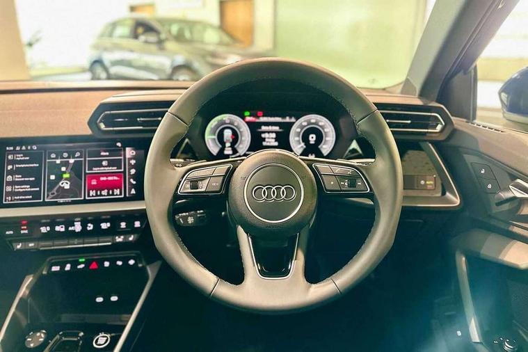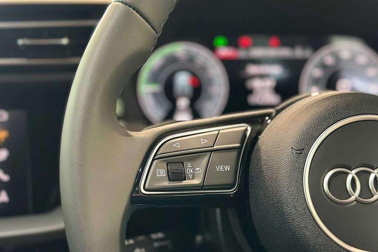 Adaptive cruise control (ACC), Adjustable speed limiter, Audi drive select (Auto, Comfort, Dynamic, Efficiency and Individual), Audi virtual cockpit plus - 12.3" full HD resolution dynamic digital instrument cluster, Automatic start/stop system with recuperation, Bluetooth interface, Camera based traffic sign recognition, Collision avoidance assistant, Driver attention and fatigue detection, e-Call (emergency call), Electromechanical power speed sensitive steering, Emergency assist, Intersection assist, Lane departure warning system, MMI Navigation Plus with high resolution 10.1" colour touch screen display, Park Assist with parking system Plus, Reversing camera, Service indicator, Smartphone interface with app store includes wireless Apple carplay, Android auto and Amazon alexa integration, Trip computer, Voice control system with natural language interaction, CCS socket for DC charging, Charging cable for public charging, mode 3 (type 2), 32 A, Standard suspension, Type 2 socket for AC charging, Audi Phonebox light with wireless charging, Audi sound system - 10 loudspeakers including centre loudspeaker and subwoofer, DAB Digital radio, USB ports with charging function in the rear, 3rd brake light, Acoustic glass windscreen, Aluminium window trim, Auto dimming frameless rear view mirror, Body colour exterior mirrors, Body colour roof spoiler, Electrically adjustable/heated/folding/auto dimming door mirrors with integrated LED indications + kerb view function for passenger side, Exterior model badging, Front electric windows, Front radiator grill in high gloss dark chrome, Front side air inlets in grained matt black with silver frame, Heat insulating glass windscreen, Invisible tailpipe, LED daytime running lights, LED headlights and halogen rear lights, Light and rain sensors, Rear diffuser and grill in grained matt black with silver frame, Rear electric windows, Rear side wing doors, Rear window, rear door windows and rear side windows in clear glass, Rear wiper, 12V socket and storage compartment in front centre console, 3 seat bench in 2nd row, 3 spoke leather multifunction steering wheel with gear shift paddles, 3-zone deluxe automatic air conditioning, 4 way electrically adjustable lumbar support for driver and front passenger, 60/40 split folding rear seat bench, Black front and rear floor mats, Convenience auxiliary air conditioning, Front and rear headrests, Front centre armrest, Front door sill trims with aluminium inlay, Heated front seats, Height and reach adjustable steering wheel, i-Size child seat mounting on the front passenger side and outer rear seats, i-Size and top tether on the outer rear seats, Manual boot compartment lid, Manually adjustable front seats, Routine cloth upholstery with front sports seats, Seat side bolsters, Single front passenger seat, Steel grey cloth headlining, Aluminium interior elements pack - A3, LED interior lighting pack -A3, 3x3 point rear seat belts, Acoustic vehicle alerting system, Driver and front passenger airbag with passenger airbag deactivation, Electronic Stabilisation Control (ESC) including ABS, ASR and EDL, First aid kit with warning triangle and 2 safety vests, Front side airbags with head airbags and interaction airbag, Hill hold assist, Pre-sense front with pedestrian and cyclist detection, Seatbelt monitoring, Tyre pressure loss indicator, Anti theft alarm, Anti-theft wheel bolts, Electronically operated child locks, Immobiliser, Black dashboard, Inlays in volcano grey fine paint finish, Tyre repair kit,