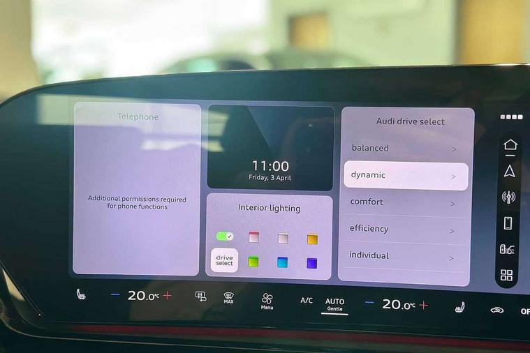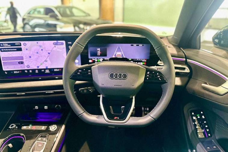 Adaptive cruise control, Attention and drowsiness detection with driver observation, Audi application store, Audi assistant, Audi connect emergency call and service, Audi drive select, Audi virtual cockpit plus with 11.9" OLED colour display, Automatic start/stop system with coasting functionality, Camera based traffic sign recognition, Convenience key, Intersection assist, Lane departure warning, MMI navigation plus with high resolution 14.5" OLED touchscreen colour display, Park assist plus, Parking system plus with 360 display, Progressive steering with servotronic, Rear view camera, Side assist and exit warning, rear cross-traffic assist and rear turn assist, Smartphone interface, Swerve assist and turn assist, Traffic sign based speed limiter, Household plug type G, Hybrid propulsion system, Industrial connector CEE 32A, 230V, long and straight for the e-tron charging system, Mode 3 type 2 AC charging cable 22kW, Sports suspension lowered by 20mm, Audi sound system impressive sound with 8 loudspeakers including centre speaker and subwoofer, 6-channel amplifier with a total output of 180 watts, DAB digital radio reception, Smartphone compartment with wireless charging, Aluminium window trims, Auto dimming rear view mirror, Black door handles, Black door mirrors, Black roof rails, Dark chrome-plated tailpipe trims, Door mirrors - electrically adjustable, heated, folding and auto dimming on both sides, Front and rear electric windows, Front door sill trims with aluminium inlays, illuminated with 'S' logo, LED headlights Plus incl. digital daytime running lights, turning light, all-weather light, motorway light, manouevring light and intersection light, LED rear lights pro incl. dynamic rear indicators and illuminated light strip with animated coming and leaving home function, LED third brake light, Privacy glass, Rear and side windows with heat insulating glass, Rear side wing doors, Rear wash/wipe, S line bumpers, radiator grille and diffuser in phantom black and diffuser insert in matt anthracite, White rhombus logo projection light in exterior mirrors, Windscreen with acoustic glazing, 3 rear headrests, 3 seat rear bench, 3 spoke leather steering wheel with multi-function buttons with touch control, flattened on top and bottom, with S badging and contrast stitching, 3-zone automatic climate control, 40:20:40 split folding rear seat bench with centre armrest and cup holders, Auxiliary air conditioning, Comfort front centre armrest, Dinamica microfibre/Artificial leather upholstery, Front and rear floor mats, Front sport seats with integrated headrest and S embossed logo, Headlining in black cloth, i-Size child seat mounting on the front passenger side and outer rear seats, i-Size and top tether on the outer rear seats, Increased charging capacity for USB ports 2X100 Watts in rear, 2X60 Watts in front, LED roof module front and rear including reading lights, Luggage compartment lid, electrically opening and closing, Manual steering column height and depth adjustment, Single front passenger seat, Stainless steel pedals and footrest, Steering wheel grips in perforated leather and shift paddles, Storage compartment lighting under the centre armrest, Ambient lighting package plus - A5, Black styling pack plus - A5, Comfort Pack - A5, Interior lighting in white package pro - A5, 3x3 point rear seat belts, Acoustic vehicle alerting system, Driver airbag, Electric child safety locks, First aid kit with warning triangle and vests, Front emergency brake assist, Front passenger airbag, Front passenger airbag deactivation, Front side airbags with head airbag system and front interaction airbag, Hill hold assist, Seat belt monitoring with rear seat occupant reminder, Tyre pressure loss indicator, Anti theft alarm, Anti-theft wheel bolts, Digital key, Keyless Go, Accent surfaces and control buttons in gloss black, Black dashboard with contrast stitching, Decorative inlays chestnut natural, grey, Softwrap in Dinamica with contrast stitching, Upper and lower interior elements in dinamica microfiber, Upper and lower interior elements in leatherette, Tyre repair kit,