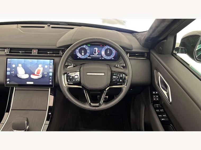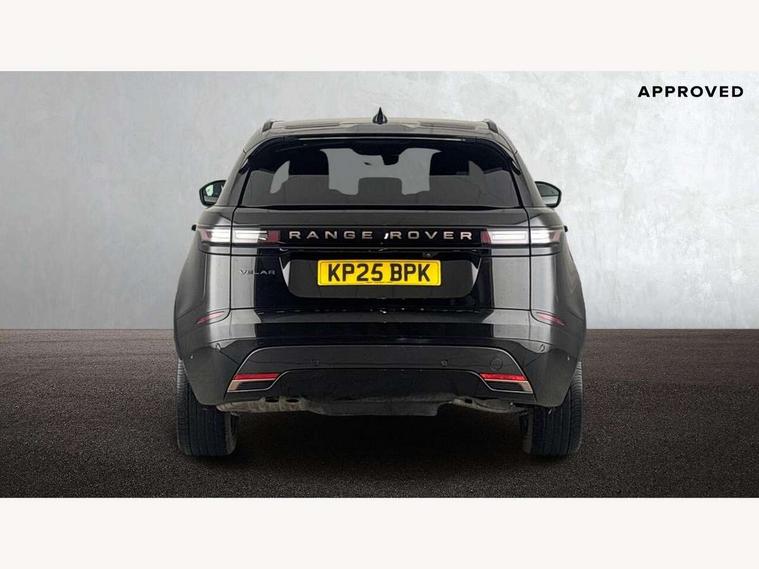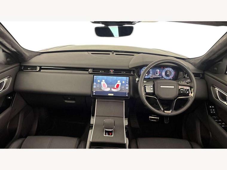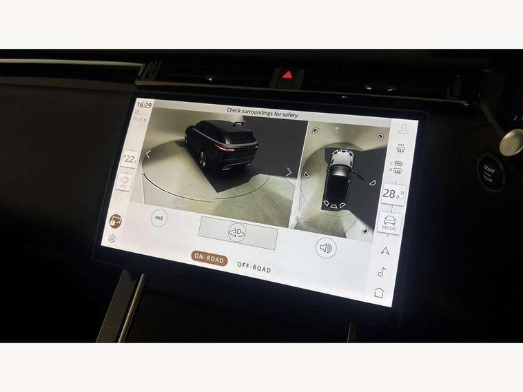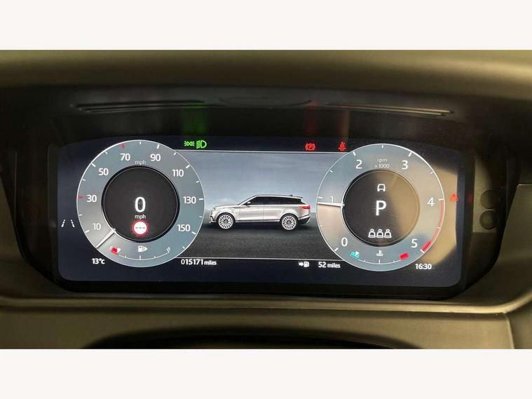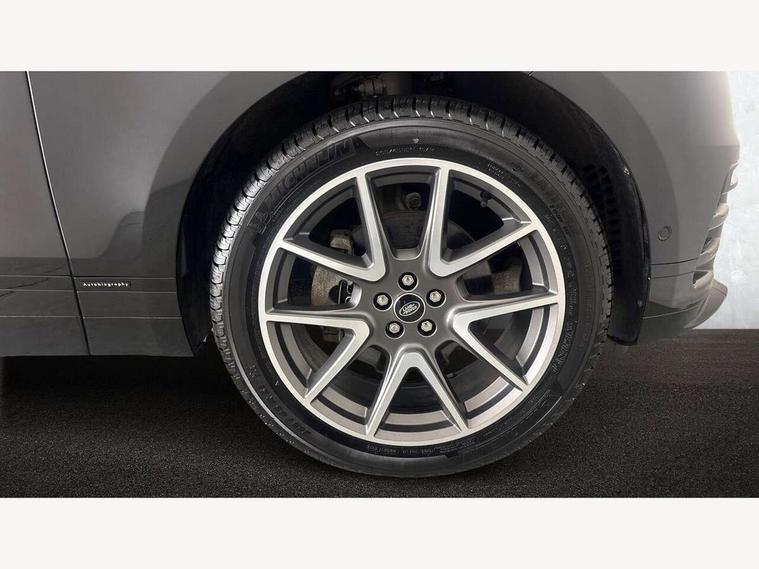 3D surround camera includes forward traffic detection and vehicle guidance, Adaptive cruise control with steering assist, Android Auto, Apple CarPlay, Blind spot assist, Bluetooth connectivity, Brake pad wear indicator warning light, Driver condition monitor, eCall emergency call system, Front and rear parking aid, InControl remote, Land Rover InControl apps, Lane keep assist, Pivi pro with connected navigation, Rear collision monitor, Rear traffic monitor, Service indicator, Speed proportional electronic power assisted steering (EPAS), Traffic sign recognition with adaptive speed limiter, Trip computer, Voice control system, Wade Sensing, Wireless device charging, 8 speed automatic transmission, Adaptive dynamics, All terrain progress control, Electronic air suspension, Open differential with torque vectoring by braking, Single speed transfer box, Terrain Response 2 with dynamic program, DAB radio, Steering wheel mounted controls, 3rd brake light, Acoustic laminated windscreen, Auto dimming interior rear view mirror, Autobiography badge, Automatic headlamp levelling, Automatic headlights, Body coloured bumpers, Boot protection plate, Contrast bonnet in burnished copper & rear lettering, Electric windows with one touch open/close and anti trap, Flush deployable exterior door handles, Follow me home headlights, Heated rear window with timer, Heated washer jets, Heated windscreen, Metal load space scuff plates, Pixel LED headlights with signature DRL, Power fold, auto-dimming, heated door mirrors with memory and approach lights, Rain sensor windscreen wipers, Rear animated directional indicators, Rear fog lights, Rear side wing doors, Rear wash/wipe, Tailgate/boot lid spoiler, Trailer stability assist, Velar badge, 3 seat bench in 2nd row, Ambient lighting, Bright metal pedals, Carpet mats, Driver/passenger sunvisors with illuminated vanity mirrors, Ebony suedecloth headlining, Electrically adjustable steering column, Full extended leather upgrade, Heated steering wheel, Isofix system on outer rear seats, Loadspace cover, Overhead lighting console, Overhead stowage for sunglasses, Passive front headrests, Rear air vents, Rear centre headrest, Single front passenger seat, Twin front cupholders, Twin sliding front centre armrest, Online pack with data plan - Velar, Power socket pack 2 - Velar, 380mm front brakes and 325mm rear brakes, 3x3 point rear seatbelts, Anti-lock braking system (ABS), Cornering brake control, Curtain airbags, Customer configurable autolock, Door side intrusion beams, Driver airbag, DSC - Dynamic Stability Control, Electronic brake force distribution, Electronic parking brake, Electronic traction control, Emergency braking, Front and rear seatbelt reminder, Hill descent control, Hill launch assist, Low traction launch, Passenger airbag, Power operated child locks, Rear airbags, Roll stability control, Side airbags, Tyre pressure monitoring system (TPMS), Global lock and unlock switch on driver door, Immobiliser, Intrusion sensor, Keyless entry, Lock only switch on front passenger door, Locking wheel nuts, Perimetric alarm, Remote central locking, All season tyres,