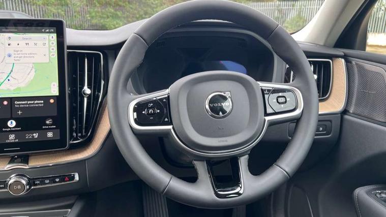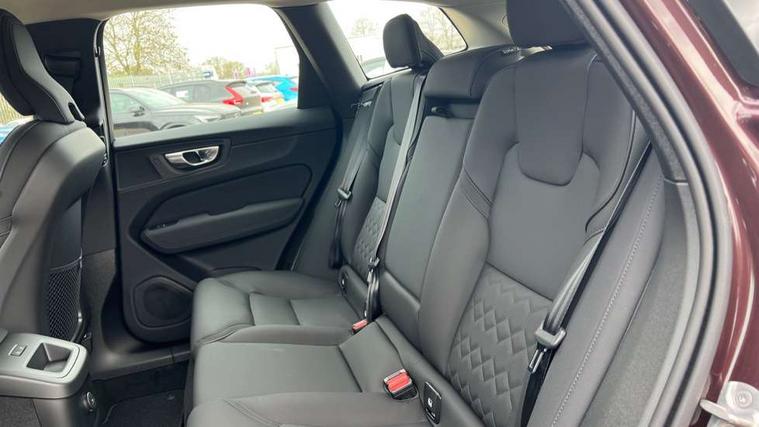 11.2" centre console touch screen, 12.3" Progressive Driver Display, 360 degree surround view parking camera with side proximity sensors, Adaptive cruise control, Adjustable steering wheel force, Android auto (Wired), Apple carplay (wired), Bluetooth handsfree system, Drive mode settings, Driver alert control with lane keeping aid, Driver understanding system, Emergency services call system, Front and rear park assist, Google Automotive Services, Intelligent speed assistance, Oncoming Lane Mitigation, PAS, Power operated tailgate with handsfree opening and closing, Service interval indicator, Speed limiter, Speed sensitive steering, Trip computer, Volvo cars services with app, Volvo on call with App, Wireless/Inductive Mobile Phone Charging, 2 phase on board charger 6.4kW (home charging limited to 3.7kW), 6m 3 phase 16amp Type 2 / mode 3 charge cable, 8 speed automatic transmission with start/stop + manual change functions, Electric rear axle drive, Recharging port located in nearside front wing, DAB Digital radio, Low speed exterior sound speaker, Premium Sound by Harman Kardon, dirac unison, dolby pro logic II surround sound, 13 speakers/600W output and fresh air subwoofer, Steering wheel remote infotainment controls, Adaptive brake lights with high level LED brake lights, Auto dimming interior + exterior mirrors, Automatic headlight levelling system, Automatic LED Headlights + Active high beam incorporating daytime running lights, Electric adjustable/heated/auto power folding door mirrors, Electric front+rear windows, Front aluminium tread plates, Heated front windscreen, High gloss black door mirrors and window surround, High gloss black front and rear bumper decoratives, High gloss black mesh front grille with high gloss black surround, Home safe and approach lighting, Integrated roof rails in high gloss black, Puddle lights, Rain sensor with automatic windscreen wiper activation, Rear side wing doors, Rear wiper, Roof antenna, Roof spoiler, Tinted windscreen, Visible VIN plate, 12V socket in front tunnel console and luggage compartment, 2 zone electronic climate control with Clean zone air quality system and pollen filter, 3 seat bench in 2nd row, 3 Spoke tailored steering wheel with chrome trim, A-pillar parking ticket holder, Air purifier particulate matter (PM) 2.5 filter, B Pillar ventilation, Bright metal luggage scuff plate, Centre console cupholders and storage, Charcoal floor mats, Front and rear courtesy lights, Front and rear door pocket illumination, Front cupholder illumination, Front footwell illumination, Front reading lights, Front seat cushion extensions, Glovebox compartment with illumination, Head restraints for all seats, Heated front seats, Heated steering wheel, Height/reach adjustable steering column, Illuminated luggage compartment, Illuminated vanity mirrors + ticket holder, Inner door release handle illumination, ISOFIX attachment on outer rear seats, Load cover, Load protection net, Multi directional lumbar support, Power driver seat with memory + exterior mirrors memory, Power height adjustable passenger seat, Power passenger seat with memory, Quilted nordico leather upholstery, Rear armrest with cupholder, Rear footwell and front and rear side step illumination, Rear reading lights, Rear seat concealed storage, Single front passenger seat, Tailgate illumination and ambient door lighting, Underfloor stowage compartment, Versatile split folding rear seat - 60/40, Driver assist pack without Adaptive cruise control - XC60, 5 three point seatbelts, City safety with steering support with Pedestrian + cyclist + front collision warning with full auto brake and rear auto brake, Drivers knee airbag, Dual stage driver/passenger airbags, Electronic parking brake with auto hold, First aid kit, Front seats SIPS airbags, Hill descent control - Off-road drive mode, Hill start assist, IC (Inflatable Curtains) - Full Length, Passenger airbag cut-off device, Power child locks on rear doors, Road sign information display, Run off Road Mitigation, Run off Road Protection, Seatbelt reminder and pretensioners, SIPS (Side Impact Protection System), Slippery road and hazard light alert, Stability and Traction Control with Spin control, Engine Drag Control and Corner Traction Control, Tyre pressure monitoring system, Vehicle deceleration control with Anti-lock Brake System, Electronic Brake Distribution and Emergency Brake Assist, Warning triangle, WHIPS whiplash protection system - front, Anti-theft alarm including immobiliser/volume sensor + level sensor, Key integrated remote control central locking + fuel flap with deadlocking system and auto open/close power windows, Keyless Drive (includes Keyless Entry and Keyless Start), Locking wheel nuts, Private locking for tailgate, Summer tyres, Tyre sealant kit + 12v compressor,