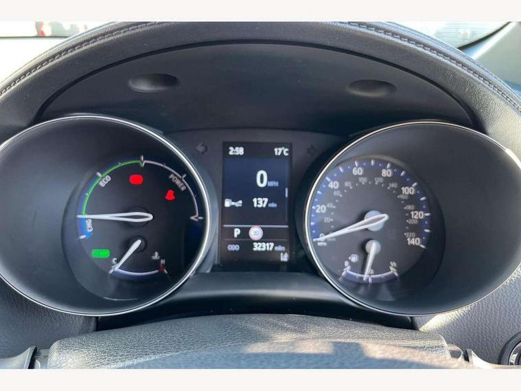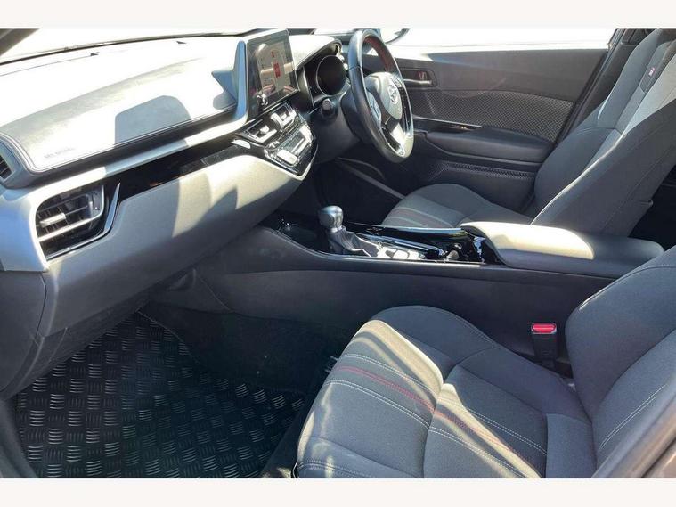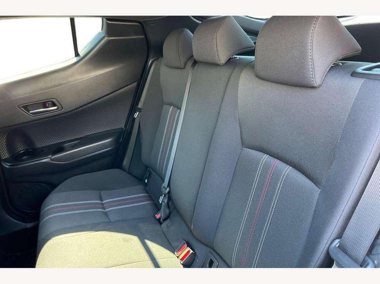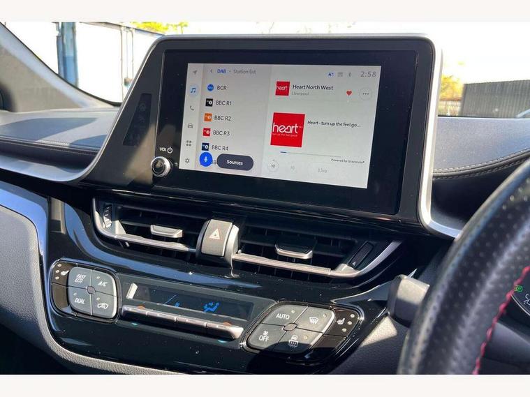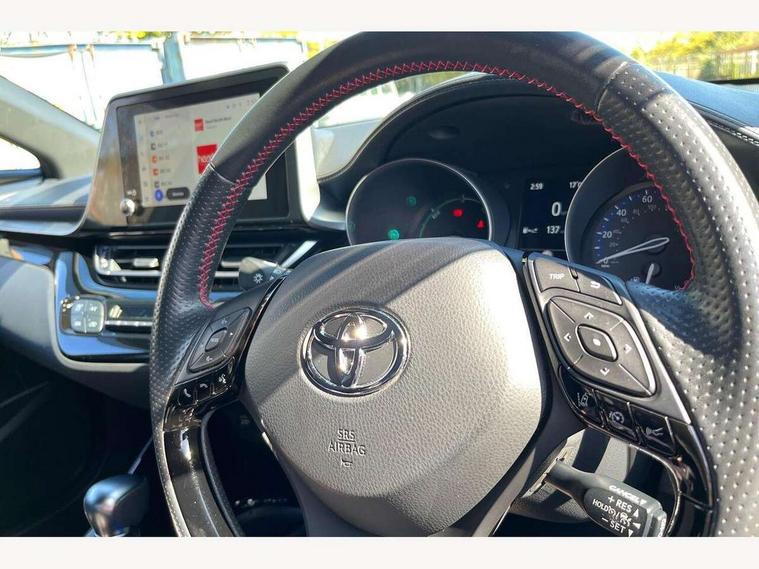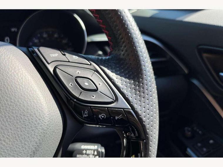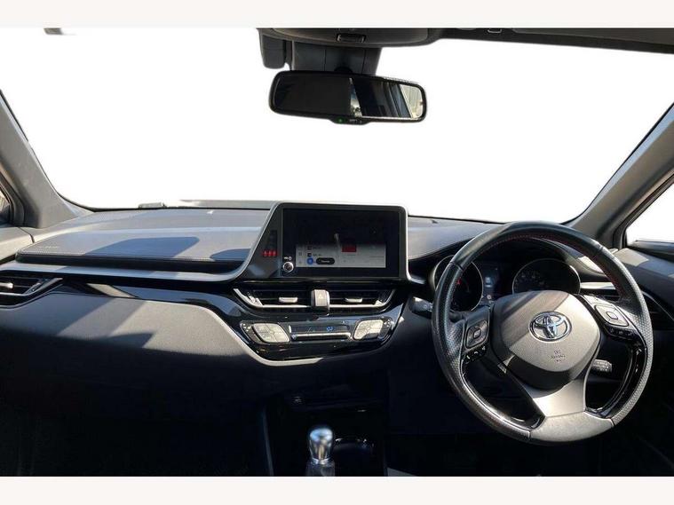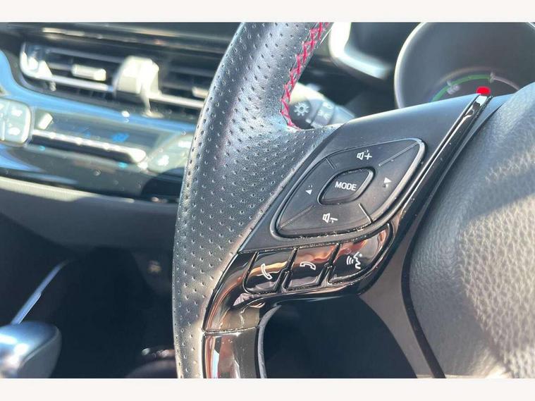 4.2" coloured TFT screen for multi-information display, Adaptive cruise control, Bluetooth connectivity, E-call, Electric power steering, Hybrid system indicator, Lane departure alert with steering control, Remote boot door release in cabin, Remote boot door release in key, Reversing camera, Road sign assist - RSA, Simple Intelligent parking assist, Touch 2 Go navigation system, Trip computer, Voice recognition, Vehicle Stability Control (VSC), 6 speakers, AM/FM radio, DAB Radio (Digital Audio Broadcasting), Toyota touch 2 multimedia system with 8" display, USB connector, Wi-fi connectivity, Adaptive front light system, Adaptive LED Headlights, Anti-jam protection on power windows, Auto high beam, Auto up and down function on all power windows, Automatic headlight levelling, Automatic headlights, Automatic headlights cut-off, Black and body coloured rear bumper, Black upper front grille, Body colour door handles, Body colour door mirrors, Body coloured front bumper, Boot door release with push button, Chrome front lower bumper, Electric heated door mirrors, Follow me home headlights, Front and rear power windows, Front spoiler lip in black, Honeycomb lower front grille, LED daytime running lights, LED fog lights, LED front light guide, LED High mounted stop light, LED rear brake lights, LED rear combination lights, Noise reduction layer on front windows and windscreen, Power adjustable door mirrors, Privacy glass, Rain sensor, Rear sequential indicators, Rear side wing doors, Rear spoiler, Rear tailgate, Rear window defogger, Rear window wiper, Shark fin antenna, UV-filter on driver and passenger windows, UV-filter on rear windows, 12v power outlet - front, 3 rear headrests, 3 seat bench in 2nd row, 3 spoke perforated leather steering wheel, 60/40 split folding rear seat, Adjustable rear headrests, Adjustable speed limiter switch on steering wheel, Assist grips front and centre pillar, Audio and telephone switches on steering wheel, Black front door assist grips, Blue ambient lighting on front cup holders, Blue ambient lighting on front doors, Boot light, Chrome interior door handles, Driver and front passenger personal light, Driver and front passenger Whiplash Injury Lessening seats, Driver and passenger seatback pockets, Dual zone automatic air conditioning, Fabric upholstery, Floor mats, Front cupholders, Front head restraints, Front sports seats, Glovebox with internal light, Hard tonneau cover, Heated driver and front passenger seats, Hooks for luggage holding net, Humidifying Nanoe air purifier, Illuminated entry system, Isofix attachments on outer rear seats, Leather gearshift, Light on driver sun visor, Light on passenger sun visor, Manual telescopic steering wheel, Manual tilt steering wheel, Manually height adjustable driver seat, Manually height adjustable front passenger seat, Manually reclining driver seat, Manually reclining front passenger seat, Manually sliding driver seat, Manually sliding front passenger seat, Microphone on front personal light, Mirror on driver sun visor, Mirror on passenger sun visor, Multimedia switches on steering wheel, Pollen filter, Power adjustable lumbar support on driver seat, Shopping bag hooks, Single front passenger seat, Slow opening on lower glovebox, Voice recognition switch on steering wheel, Tech with parking sensor pack - C-HR, 16 Disk front wheel brake, 3x3 point rear seatbelts, ABS+EBD+Brake assist, Electronic parking brake, Front and rear seatbelt reminder, Front passenger airbag on/off switch, Hill start assist control (HAC), Pre collision system with pedestrian detection, Pre-tensioners and force limiters, Rear door child safety locks, SRS Airbags - Driver + Front passenger, front side, front and rear curtain and driver's knee airbags, Toyota safety sense, Tyre pressure monitoring system, Acoustic vehicle alert system (AVAS), Glass-breaking alarm sensors, Immobiliser, Intrusion alarm, Intrusion sensor, Motion sensor alarm, Power passenger window lock, Remote central locking, Black lower dashboard, Black upper dashboard, Piano black console, Silver deco line on upper dashboard, 19" Black machined alloy wheels, Tyre repair kit,