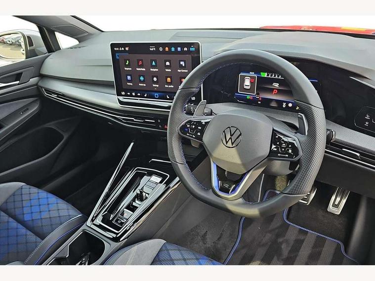 Activated carbon canister, Adaptive cruise control (ACC), Advanced driver attention and drowsiness monitor, Dynamic road sign display, E-Sim card for online connectivity, eCall emergency call system, Multi-color Digital cockpit pro, selection of different info profile possible, Multifunction front facing camera for distance control, Navigation system, Oncoming vehicle braking when turning including swerve support, Side assist blind spot lane change system, rear traffic alert and exit warning system, Speed limiter, Speedo, rev counter, electronic odometer, trip, service interval display, exterior temperature and fuel gauge, Traffic jam assist, Voice enhancer and voice control, Warning signal and warning light for front and rear seatbelts not fastened, We connect plus preparation, We connect preparation, Wireless app connect, All wheel drive - 4Motion, Petrol Particulate Filter, Start-stop system with battery regeneration (recuperation - energy recovery during braking), XDS electronic differential lock for improved traction and handling, 2 USB C ports in front, 2 USB charging sockets on the centre console in the rear charging capacity upto 45W, Digital radio reception (DAB), Diversity antenna for FM reception, Gaming platform via car app, Infotainment system with 12.9" display, Mobile phone interface with inductive charging feature, 3rd brake light, Auto dimming rear view mirror, Automatic headlamp activation with Coming home and Leaving home feature, Body colour door handles, Exterior mirror housings in matte chrome, Exterior mirrors convex on the left and aspherical on the right, Front and rear electric windows, Front fog lamps and cornering light, Heat insulating windshield made of laminated glass, Illuminated lighting animation with wake up/goodbye scenario, LED matrix headlights with ambient light V2, advanced high beam, dynamic range contol with cornering, LED rear lamp with indicator, poor weather, LED separate daytime running light, Light assist with High beam control, R name plate, Rain sensor, Rear fog light on one side and reversing lights on both sides, Rear side wing doors, Rear tinted glass 65% light absorbing from B pillar backwards, Rear windscreen washer and wiper with interval delay, Remote electrically foldable door mirrors, puddle lights and reverse activated passenger's door mirror, Welcome light with surround lighting, 12V socket in front centre console, 12V socket in luggage compartment, 3 rear head restraints, 3 seat bench in 2nd row, 30 colour ambient lighting, illuminated center console storage compartment in front, Air care climatronic 3 Zone automatic climate control with rear air conditioning control panel, Aluminium gearshift handle, Brushed stainless steel pedals, Chrome plated radiator grille inserts, air vent surrounds and light switch surrounds, Entry lights, Front + rear black carpet mats, Front centre armrest, Integrated front head restraints, ISOFIX anchors for child seats on outer rear bench seats and on front passanger seat compatible for i-Size, Luggage compartment lighting, Rear cupholder and loadthough, Single front passenger seat, Soul black instrument panel, Soul black roof lining, Split folding backrest with centre armrest and unsplit rear seat bench, Sun visors with illuminated vanity mirrors, Driver assistance pack - Golf Estate/Hatchback Auto, R styling pack - Golf, Technology park and comfort pro package - Golf Hatchback, 3 point height adj front seatbelts + pretensioners, 3 rear three point seatbelts, ABS, Autonomous emergency braking front assist with pedestrian and cyclist monitoring, Child locks on rear doors, Driver and front passenger airbag with front passenger airbag deactivation, Electronic parking brake with auto hold, ESC (Electronic Stability Control), Extended pedestrian protection measures, Front blue brake callipers with R logo, Hill start assist, Rear disc brakes, Two tone horn, Tyre pressure loss indicator, Volkswagen roadside assistance, Anti theft wheel bolts, Preparation for alcohol interlock, Sporty vehicle dynamics, Tool kit for tyre mobility set, Tyre mobility kit Includes 12V compressor and tyre sealant,