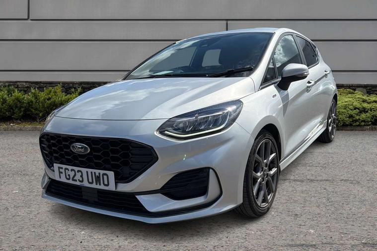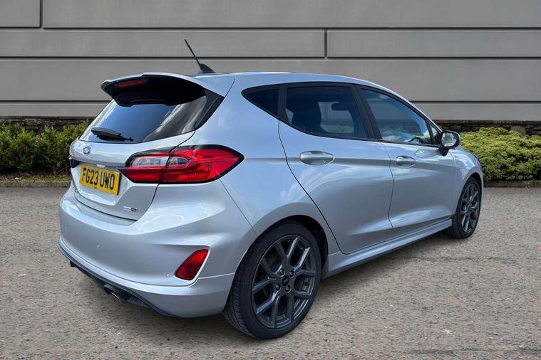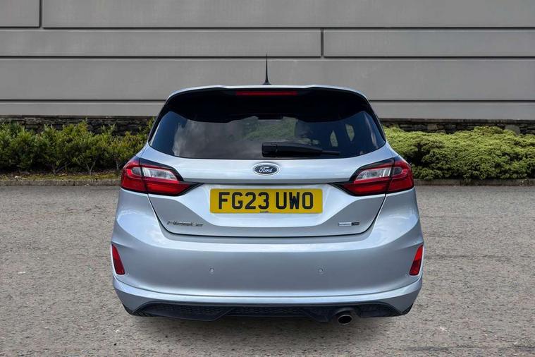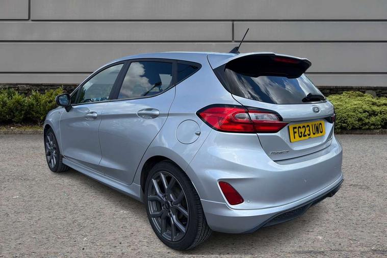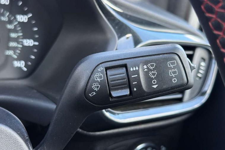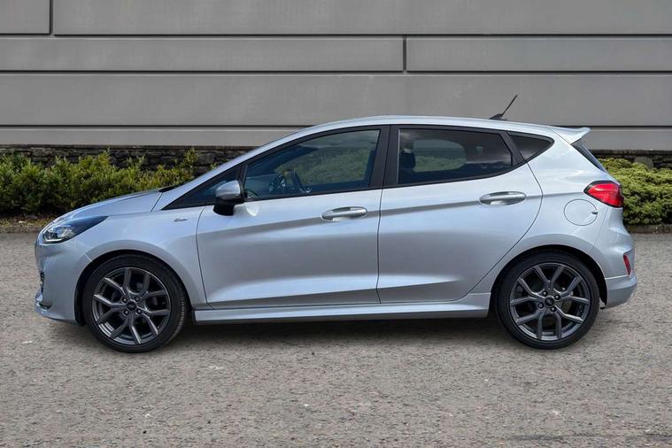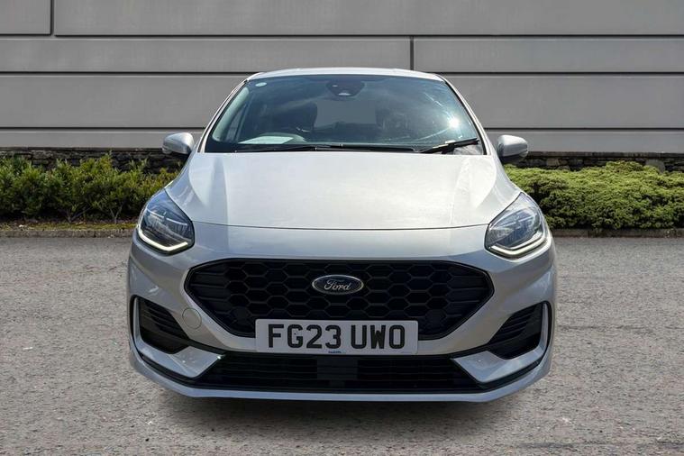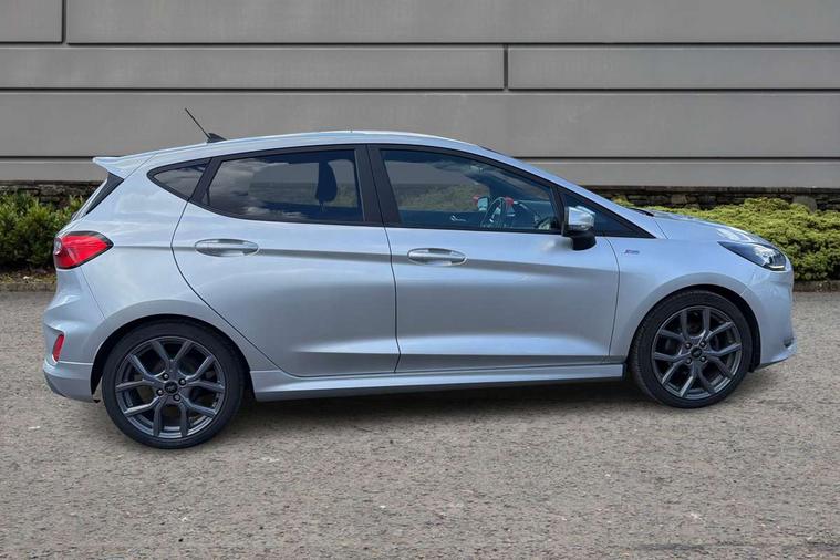 4.2" Colour TFT Ice blue illumination analogue cluster, Driver alert system, Electric power steering, Ford easy fuel, Lane keep assist, Lane keeping aid, Rear parking distance sensors, Selectable drive modes (Normal, Sport, Track), Trip computer, Sports suspension, 3rd brake light, Auto high beam, Automatic headlights, Body colour bumpers, Body colour large rear spoiler, Body coloured electrically operated with side indicators, Electric front windows/one touch facility, Electric rear windows, Quickclear heated windscreen, Rain sensing wipers and auto dimming rear view mirror, Rear privacy glass, Rear side wing doors, Rear wiper, Unique ST-Line grille, full bodystyling kit and large body coloured rear spoiler, 3 rear headrests, 3 seat bench in 2nd row, Adjustable head restraints, Black headlining, Centre console with opening armrest, 2x cupholders, 12v and USB, Cloth upholstery with red stitching, Leather gear knob, Manual 2 way passenger seat adjust, Manual 4-way driver seat adjust, Manual air conditioning, Premium floor mats, Sensico wrapped steering wheel, Single front passenger seat, 3 point seatbelts on all rear seats, Electronic stability control with hill start assist, Front and rear seat belt warning, Manual child lock in rear doors, Tyre pressure monitoring system, Keyless start with 'Ford Power' starter button, MyKey system, Remote central locking, Thatcham alarm with power door dead locks, 17" 5x2 spoke alloy wheels with rock metallic finish,