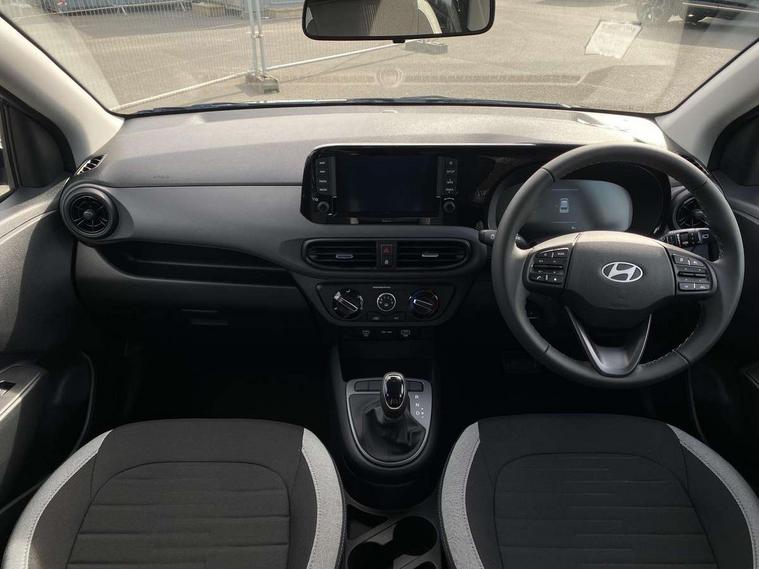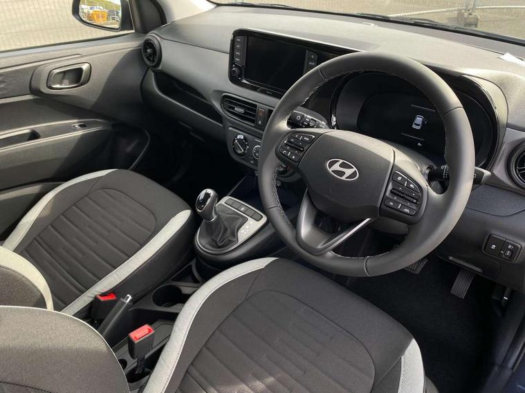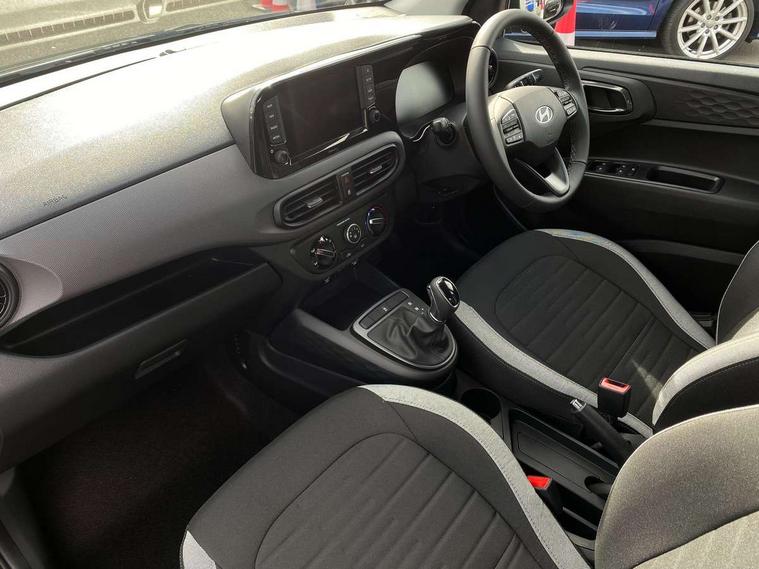8" Touchscreen satellite navigation including mapcare and LIVE services, Apple car play/Android Auto, Bluelink mobile remote connectivity, Bluetooth connectivity with voice recognition, Cruise control, Driver attention alert system, eCall emergency call system, Forward Collision-Avoidance Assist (FCA) - Pedestrian/Cyclist, Full-width 4.2" LCD instrument cluster, Intelligent speed limit assist, Lane departure warning system with lane keep assist - LKAS, Lane follow assist, PAS, Rear parking sensors, Rear view camera with guidelines, Roadside assistance, Start/Stop function, Tailgate, Trip computer, 2 front/2 rear speakers, Front and rear USB-C ports, Front USB connection, Leading vehicle alert (LVA), Steering wheel audio, phone and cruise controls, 1 speed non intermittent rear windscreen wiper, Black finish on B pillars, Body colour door handles, Body coloured bumpers, Body coloured door mirrors, Electric front windows, Electric rear windows, Electrically adjustable and heated door mirrors, Flat metal emblem, Front grille in matte black, Front intermittent wipers, Halogen headlights, Headlights inner with Black Blade design, Heated rear window, High beam assist, Indicator light on door mirrors, LED daytime running lights, Rear roof spoiler with integrated LED brake light, Rear side wing doors, 12v power outlet - front, 3 seat bench in 2nd row, 60/40 split folding flat to floor rear seats, Auto light control, Bottle holders in front/rear doors + front centre console, Cabin and luggage compartment interior lighting, Cloth upholstery, Driver + passenger vanity mirrors, Driver's seat height adjustment, Driver/passenger sunvisors with ticket holders, Floor mats, Front door pockets, Front Head Restraints - Vertical and Horizontal Adjustment, Glove compartment, Height adjustable steering column, Isofix child seat preparation, Leather wrapped steering wheel and gear knob, Manual air conditioning, Rear door pockets, Single front passenger seat, Vertical adjustment rear head restraints, 3x3 point rear seatbelts, Airbags - front, front side and curtain airbags, Anti-lock brake system (ABS), Autonomous emergency braking (AEB) with forward collision warning system, Brake assist function, Childproof rear door locks, Electronic stability control, Front and rear seatbelt reminder, Front seatbelt pretensioners, Hill start assist control (HAC), Passenger airbag deactivate switch, Traction control, Tyre pressure monitoring system, Immobiliser, Perimeter alarm, Rear occupant alert, Remote central locking, Second remote key, Speed sensitive auto door locking, 15" Alloy wheels, Temporary mobility kit (TMK),