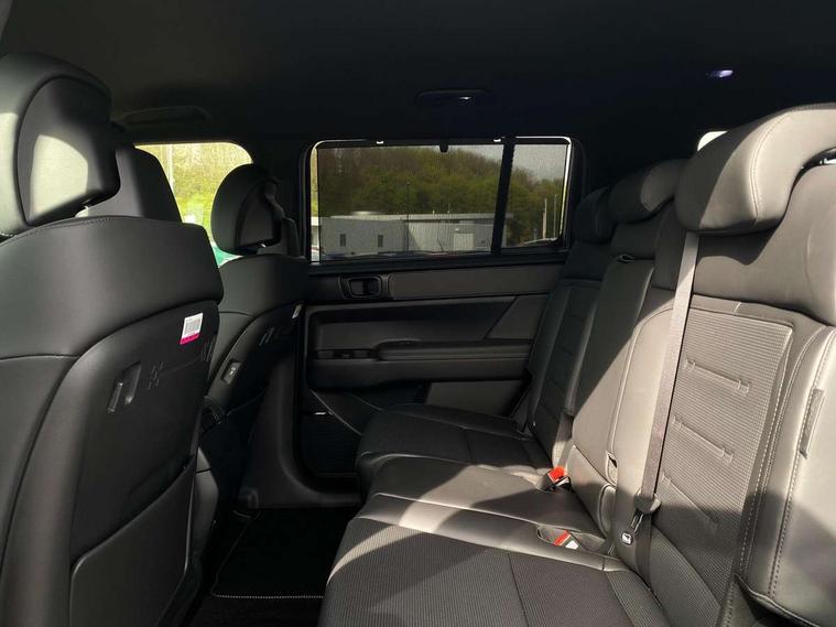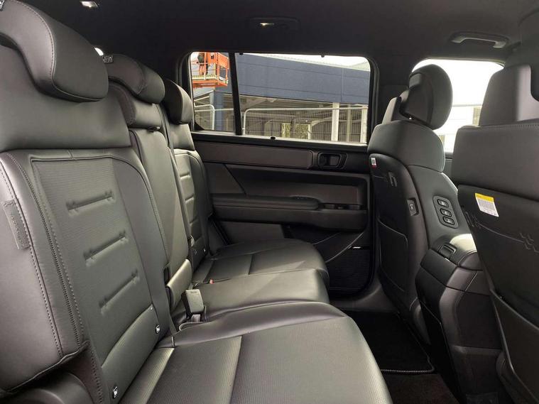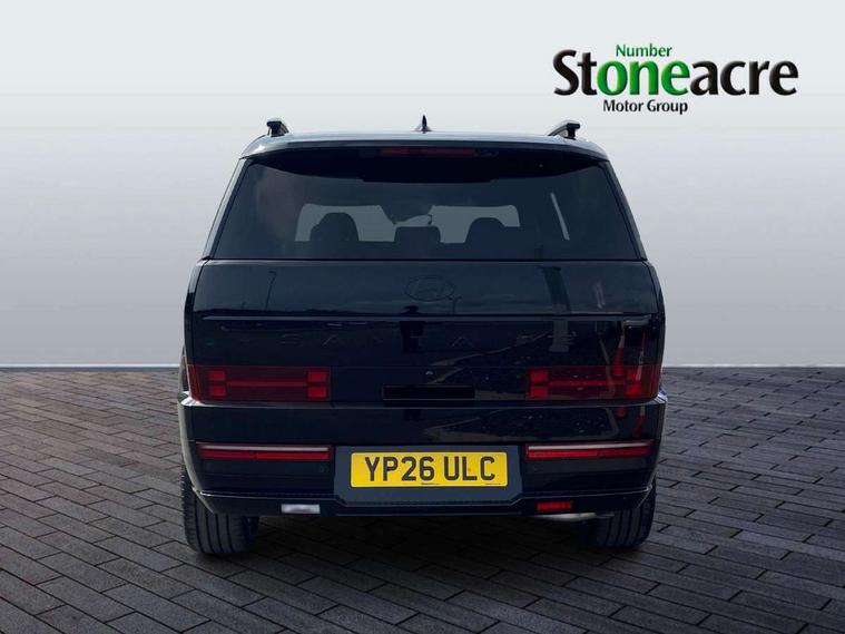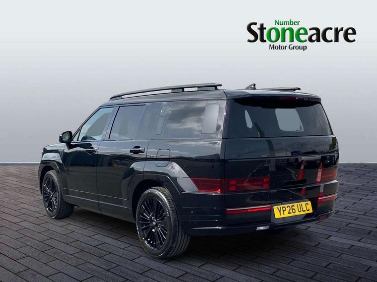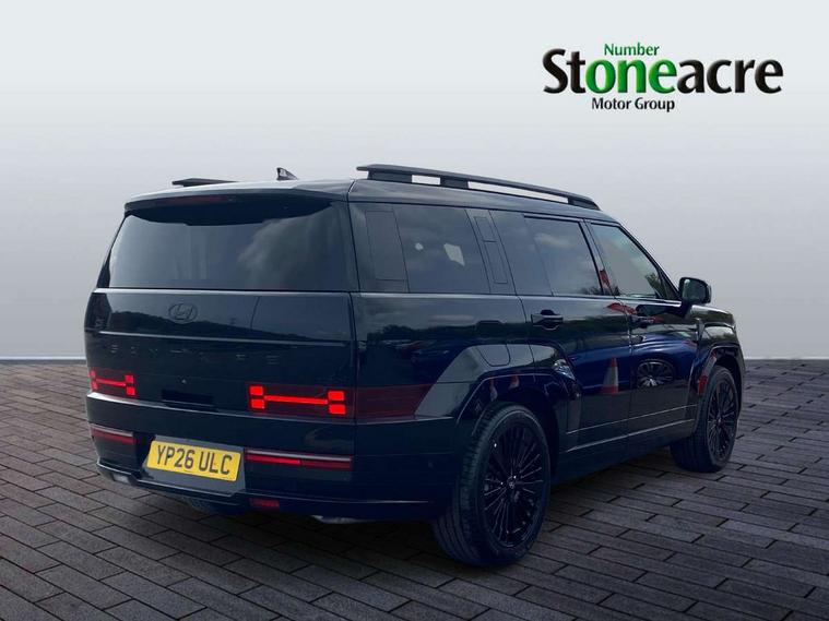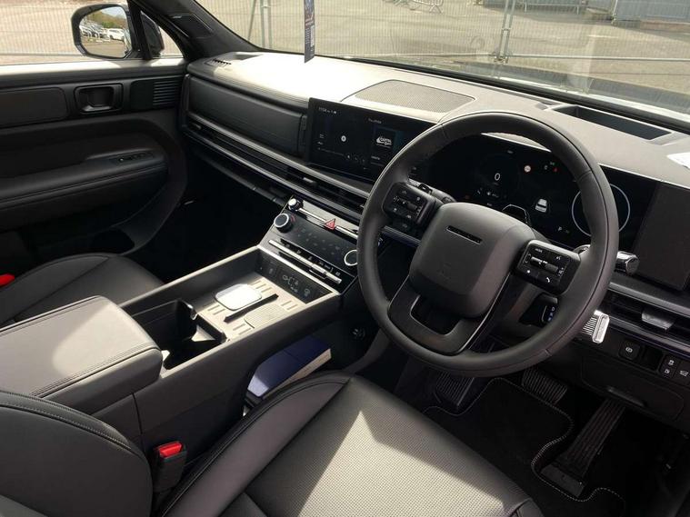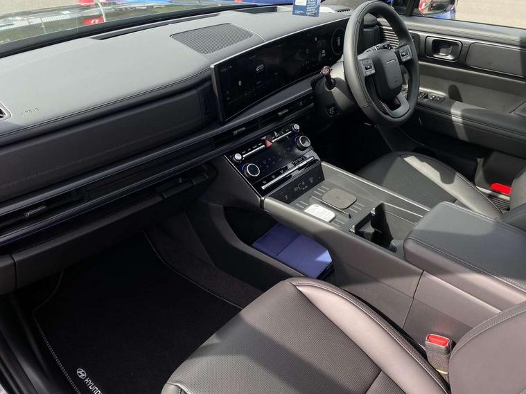 12.3" Drivers supervision instrument cluster with LCD display, 360 degree parking sensors, Blind spot collision avoidance assist (BCA), Blind spot view monitor (BVM), Bluelink and Wireless Apple Carplay/Android Auto, Bluetooth connectivity with voice recognition, Drive mode selector, Driver status monitor (DSM), Dual wireless phone charging pad, Emergency services call system, Forward collision avoidance assist (FCA 2.0), Head up Display, Highway drive assist 2 (HDA 2), Intelligent speed limit assist (ISLA), Lane departure warning system (LDW), Lane Follow Assist 2 (LFA 2), Lane keeping assist (LKA), Low washer fluid warning, Navigation based smart adaptive cruise control with stop and go, Over the air software updates (OTA), Parking Collision Avoidance Assist-Reverse (PCA-R), Power assisted steering, Remote smart parking assist, Safe exist assist (SEA), Smart electric tailgate with hand's free opening function, Surround view monitor, Self levelling suspension, Shift by Wire Gear Selector (SBW), 12.3" Touchscreen display with satellite navigation, 2nd Row USB C Ports x2 Charging, 3rd Row USB C Ports x2 Charging, Front USB C port 1 charging and 1 data/charging, Premium BOSE sound system with 12 speakers and subwoofer, Steering wheel audio, phone and cruise controls, Automatic headlights with dusk sensor, Automatic windscreen wipers with rain sensor, Black Styling (Skid plate, Fender upper garnish, Door side garnish, C/D pillars, Rear bumper moulding, DLO), Body colour bumpers, Digital centre mirror, Dynamic welcome lights, Electric adjustable/heated/auto power folding door mirrors, Front and rear electric windows, Heated rear window, Hidden C pillar assist handle, Hidden rear wiper, High beam assist, LED daytime running lights, LED Headlights, LED indicator lights, LED indicators in door mirrors, LED positioning lights, LED taillights, LED third brake light, Manual rear door blinds, Rear side wing doors, Rear windows and tailgate privacy glass, Roof rails, Solar glass windscreen and front windows, Windscreen acoustic film, Windscreen auto defog function, 2nd and 3rd row center armrest with cupholder, 3rd row head restraints, Centre rear head restraint, Driver and front passenger premium relaxation seats, Dual zone climate control air conditioning, Electrically adjustable front seats with 2 way electric lumbar support, Front head restraints, Front seats with memory, Heated front seats, Heated rear seats, Height and reach electrically adjustable steering column, Leather wrapped heated steering wheel, Luggage cover, Luggage hooks, Luggage net, Multi colour LED ambient lighting, Nappa leather upholstery, Rear head restraints, Single front passenger seat, Split folding (50/50) third row seats, Split folding (60/40), sliding and reclining second row seats, Sun Visors with driver and passenger illuminated vanity mirrors, Two front cup holders, UV-C Tray, Ventilated front seats, Trailer wiring pack - Santa Fe, 3 point seatbelts on all seats, Adjustable regenerative braking paddle shifters, Airbag - Front, front side, curtain and centre front airbags, Anti-lock brake system (ABS), Dynamic brake control, Electric parking brake with auto hold function, Electronic Stability Control (ESC), Hill start assist control (HAC), Manual child lock in rear doors, TSA (Trailer Stability Assist), Tyre pressure monitoring system, Immobiliser, Smart Key - Keyless entry with Power On/Off button, Black ink interior decals, 20" Black calligraphy alloy wheels, Tyre mobility kit,