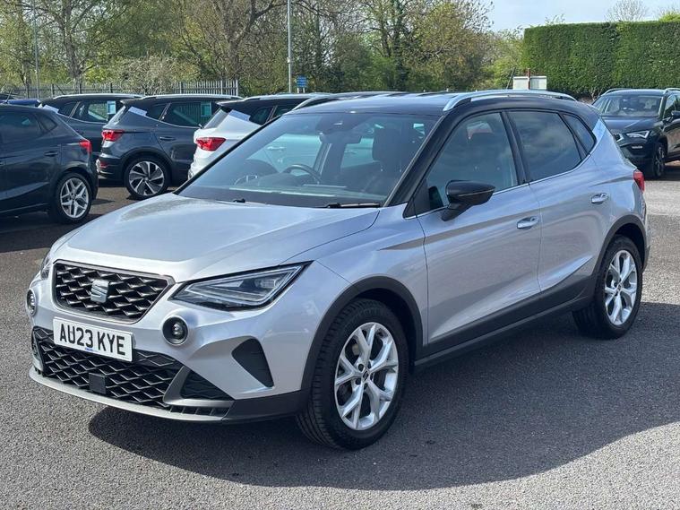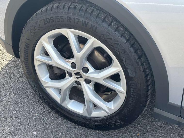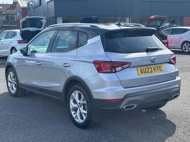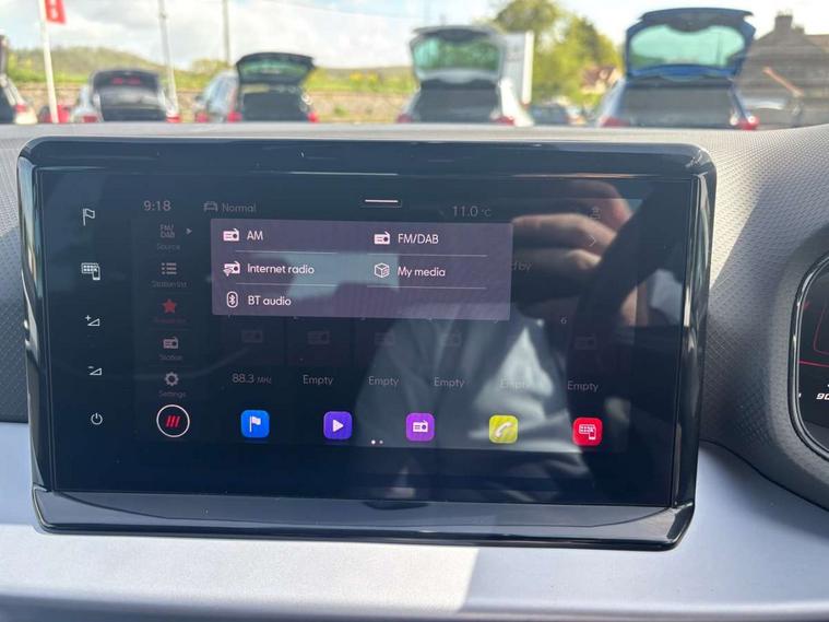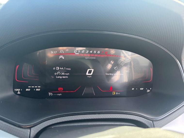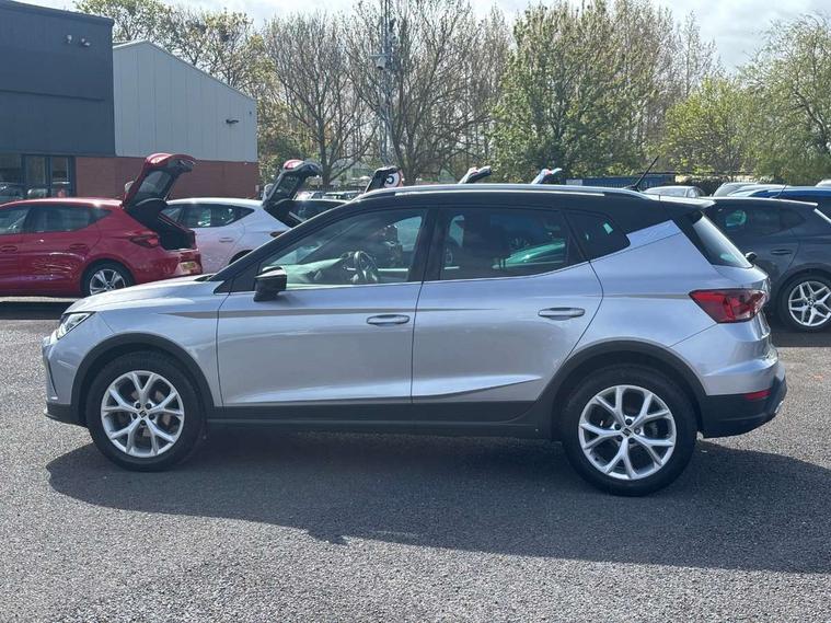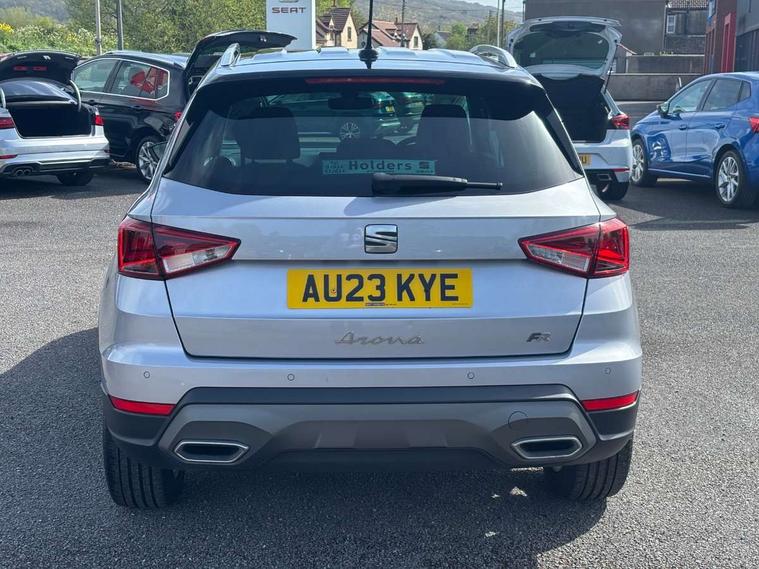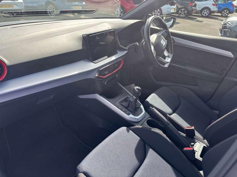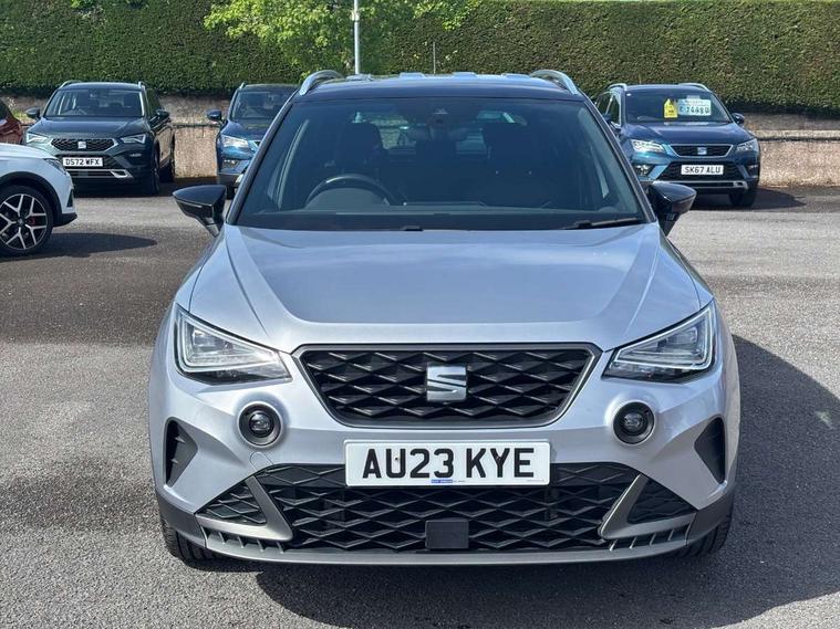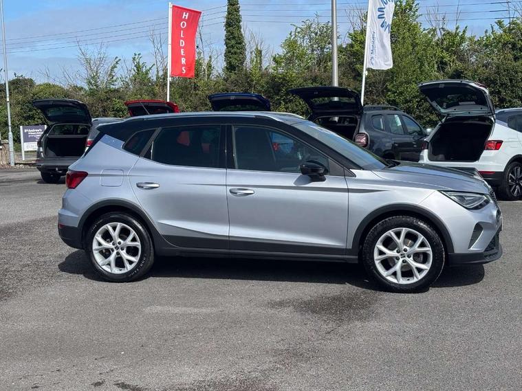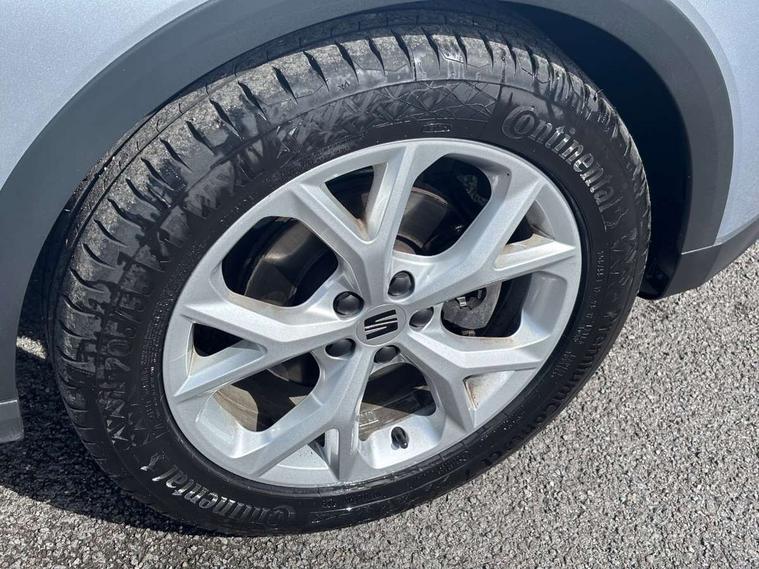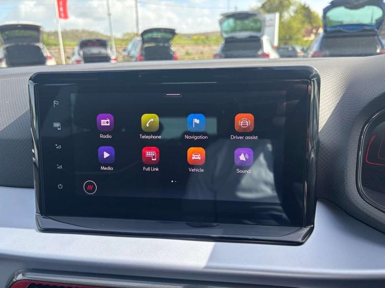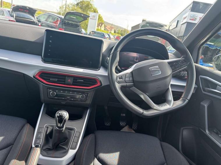 'Lights On' Reminder warning buzzer, 8" Digital cockpit, Digital clock, E-call, Electric speed sensitive power steering, Full Link Smartphone Integration with Mirror Link, Apple Car Play, Google Android Auto with USB Type C cable for Apple and Android compatibility, Lane keeping system, Low fuel warning light, Outside temperature display, Rear parking sensor, RPM counter, Seat connect with safety, service, remote and online, SEAT Drive profile - Four different models normal-sport-eco-individual, steering response, throttle response, Trip computer, Wireless phone charger, 9.2" colour touchscreen with navigation system, voice control and USB port (type c), Bluetooth interface for hands free and audio streaming, DAB digital radio and AM/FM radio, Steering wheel mounted audio controls, Anti theft roof antenna, Auto dimming interior rear view mirror, Automatic activation of hazard warning lights, Body coloured bumpers, Body coloured door handle inserts, Chrome roof rails and window surrounds, Dark tinted rear windows, Electric front/rear windows, Electrically adjustable, heated and folding door mirrors, Front fog lights with cornering function and rear fog light, FULL LED automatic headlights with dynamic headlight range control, coming and leaving home, LED daytime running lights, LED rear tail lights and licence plate lights, Protective side mouldings, Rain sensing wipers, Rear side wing doors, Rear spoiler, Rear window wash/wipe, Roof colour door mirrors, Third brake light, Twin exhaust pipe styling hidden exhaust pipe, Visible VIN plate, Windshield wiper with intermittent control and potentiometer, 2 cupholders, 3 seat bench in 2nd row, 60/40 split folding rear seat, Aircare filter, Black interior roof, Cloth upholstery, Double boot floor, Driver sunvisor with covered mirror + card holder, Dual zone climate control, Front courtesy light with 2x front and 2x rear reading lights, Front sport seats, Gear shift indicator, Height adjustable front seats, Height/reach adjustable steering column, Illuminated boot, Instrument lighting with brightness control, Interior ambient lighting, Interior light in footwell, central console and door panel, ISOFIX points in outer rear seats with top tether anchorage points, Passenger sunvisor with vanity mirror, Perforated flat bottomed leather steering wheel/gear knob/handbrake with red stitching and FR logo, Single front passenger seat, Two front and three rear height adjustable headrests, Interior chrome pack - Arona, 3 point seatbelts on all rear seats, ABS, Active front headrests, Child locks on rear doors, Driver and front passenger airbags with front passenger airbag de activation, front side and curtain airbags, Electronic stability control, Emergency Brake Assist (EBA) and front assist, Front and rear seatbelt reminder, Hill hold control, Multi-Collision braking, Tiredness recognition system, Traction control, Tyre pressure monitoring system, Alarm with back-up horn, Electronic engine immobiliser, Locking wheel bolts, Remote central locking + deadlocks, Tow away protection, Titan black dashboard, 17" Dynamic alloy wheels,