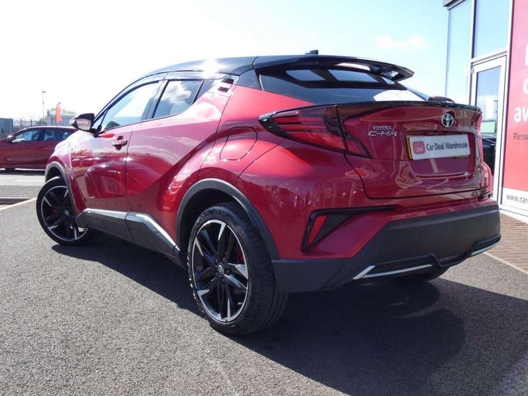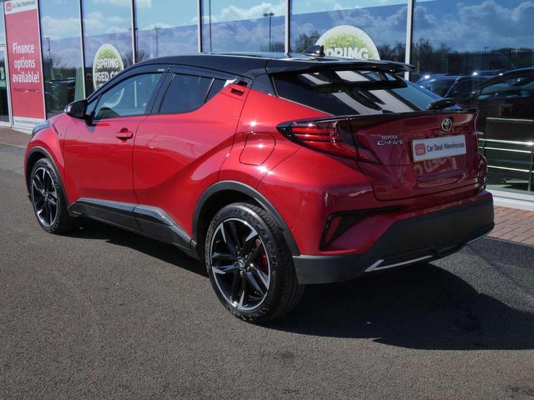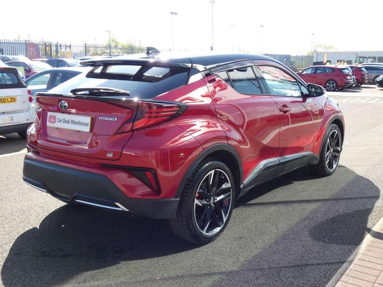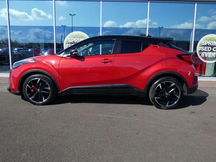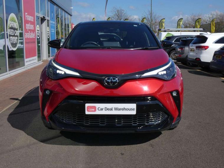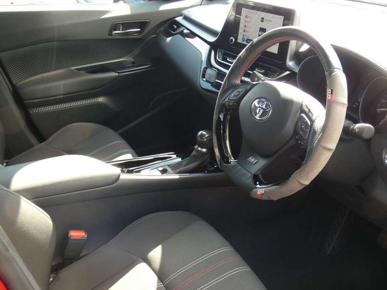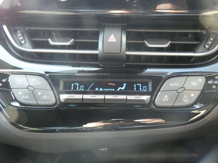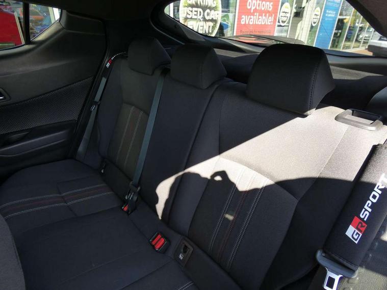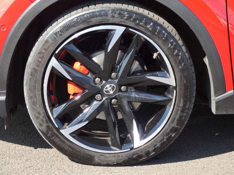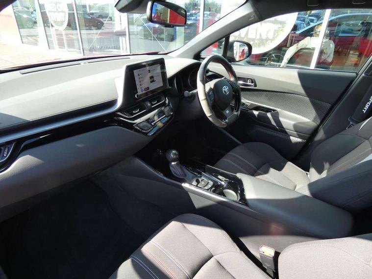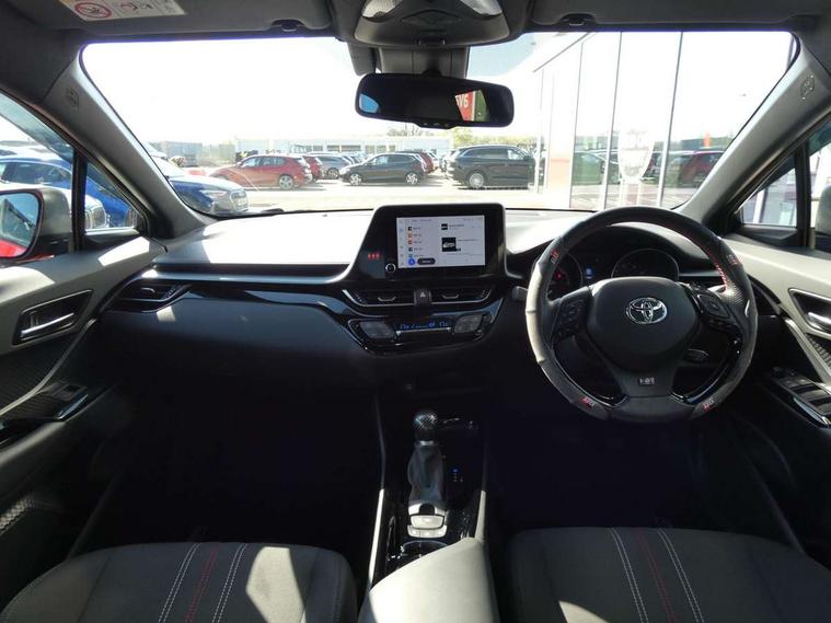 4.2" coloured TFT screen for multi-information display, Adaptive cruise control, Apple car play and Android auto, Bluetooth connectivity, E-call, Electric power steering, Hybrid system indicator, Lane departure alert with steering control, Lane trace assist, Push button tailgate release, Remote boot door release in cabin, Remote boot door release in key, Reversing camera, Road sign assist - RSA, Simple Intelligent parking assist, Smart voice assist, Touch 2 Go navigation system, Trip computer, Voice recognition, Wireless smartphone integration, Vehicle Stability Control (VSC), 6 speakers, AM/FM radio, DAB Radio (Digital Audio Broadcasting), Toyota touch 2 multimedia system with 8" display, USB connector, Wi-fi connectivity, Adaptive front light system, Adaptive LED Headlights, Anti-jam protection on power windows, Auto high beam, Auto up and down function on all power windows, Automatic headlight levelling, Automatic headlights, Automatic headlights cut-off, Black and body coloured rear bumper, Black upper front grille, Body colour door handles, Body colour door mirrors, Body coloured front bumper, Boot door release with push button, Chrome front lower bumper, Electric heated door mirrors, Follow me home headlights, Front and rear power windows, Front spoiler lip in black, Headlight cut off reminder, Honeycomb lower front grille, LED daytime running lights, LED fog lights, LED front light guide, LED High mounted stop light, LED rear brake lights, LED rear combination lights, Noise reduction layer on front windows and windscreen, Power adjustable door mirrors, Privacy glass, Rain sensor, Rear sequential indicators, Rear side wing doors, Rear spoiler, Rear tailgate, Rear window defogger, Rear window wiper, Shark fin antenna, UV-filter on driver and passenger windows, UV-filter on rear windows, Variable front intermittent wipers, 12v power outlet - front, 3 rear headrests, 3 seat bench in 2nd row, 3 spoke perforated leather steering wheel, 60/40 split folding 2nd row rear seats, Adjustable rear headrests, Adjustable speed limiter switch on steering wheel, Assist grips front and centre pillar, Audio and telephone switches on steering wheel, Black front door assist grips, Blue ambient lighting on front cup holders, Blue ambient lighting on front doors, Boot light, Chrome interior door handles, Cloth upholstery, Driver and front passenger personal light, Driver and front passenger Whiplash Injury Lessening seats, Driver and passenger seatback pockets, Dual zone automatic air conditioning, Floor mats, Front cupholders, Front head restraints, Front sports seats, Glovebox with internal light, Hard tonneau cover, Heated driver and front passenger seats, Hooks for luggage holding net, Humidifying Nanoe air purifier, Illuminated entry system, Isofix attachments on outer rear seats, Leather gearshift, Light on driver sun visor, Light on passenger sun visor, Manual telescopic steering wheel, Manual tilt steering wheel, Manually height adjustable driver seat, Manually height adjustable front passenger seat, Manually reclining driver seat, Manually reclining front passenger seat, Manually sliding driver seat, Manually sliding front passenger seat, Microphone on front personal light, Mirror on driver sun visor, Mirror on passenger sun visor, Multimedia switches on steering wheel, Pollen filter, Power adjustable lumbar support on driver seat, Shopping bag hooks, Single front passenger seat, Slow opening on lower glovebox, Voice recognition switch on steering wheel, Tech with parking sensor pack - C-HR, 16 Disk front wheel brake, 3x3 point rear seatbelts, ABS+EBD+Brake assist, Electronic parking brake, Front and rear seatbelt reminder, Front passenger airbag on/off switch, Hill start assist control (HAC), Pre collision system with pedestrian detection, Pre-tensioners and force limiters, Rear door child safety locks, SRS Airbags - Driver + Front passenger, front side, front and rear curtain and driver's knee airbags, Toyota safety sense, Tyre pressure monitoring system, Tyre pressure warning system, Acoustic vehicle alert system (AVAS), Glass-breaking alarm sensors, Immobiliser, Intrusion alarm, Intrusion sensor, Motion sensor alarm, Power passenger window lock, Remote central locking, Black lower dashboard, Black upper dashboard, Piano black console, Silver deco line on upper dashboard, 19" Black machined alloy wheels, Tyre repair kit,
