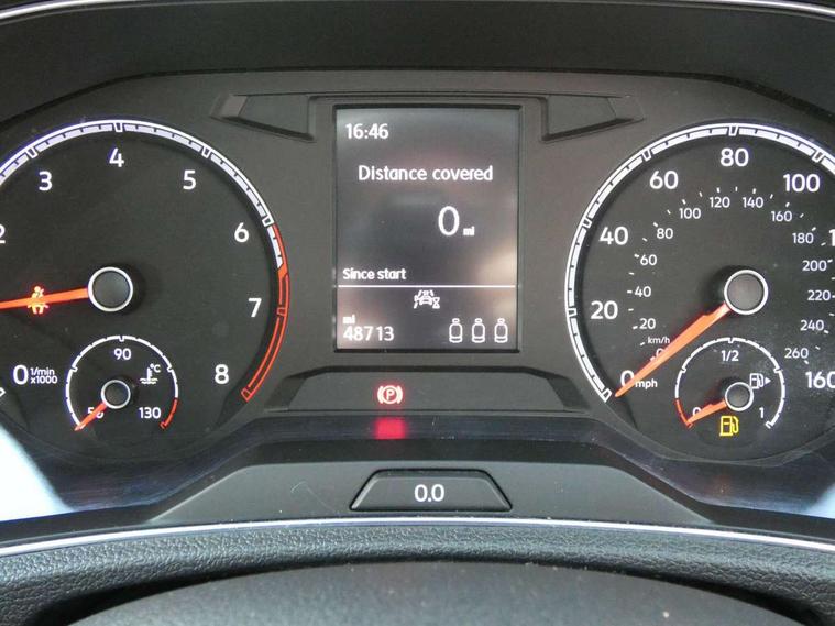 'Lights On' Reminder warning buzzer, 2 USB connection charging sockets, Adaptive cruise control with front assist, radar sensor controlled distance monitoring, city emergency braking, App-Connect, Automatic start/stop system, Bluetooth telephone and audio connection for compatible devices, Car information display, Driver tips and journey analysis, Lane assist, Multifunction computer with visual gear change recommendation for fuel consumption, Service interval indicator, Think blue trainer driver tips and journey analysis, Warning sound and light for doors and tailgate open, Warning sound and light for front seatbelts unfastened, We Connect Go Dongle, Battery regeneration during braking, DAB Digital radio, Multi device interface (MDI) with USB connection, Music playback - MP3, WMA and AAC files, Premium USB cable in choice of either Apple or Android smartphone compatibility, SD card slot, Simultaneous pairing of 2 compatible mobile devices, SMS functionality - read, compose and send SMS messages using touch-screen display, Title and cover art display, Auto dimming interior rear view mirror, Automatic hazard lights activation under emergency braking, Black grained lower door protectors, Black grained wheel arches, Body colour bumpers with silver metallic underbody fascia, Body colour door handles, Chrome trim on upper and lower radiator grille, Dusk sensor, Electrically foldable, adjustable and heated door mirrors with puddle lights and reverse activated kerb-view adjustment on passenger's door mirror, Front and rear electric windows, Front windscreen wiper with intermittent wipe and 4 position delay, Fully galvanised body, Heated rear window, High level 3rd brake light, LED rear number plate lights, Manual coming/automatic leaving home lighting function, Rain sensor, Rear wash/wipe with intermittent wipe setting, 12V socket in centre console storage area, 2 front reading lights, 3 rear head restraints, 4 load lashing points in luggage compartment, Climate control - 2 zone electronic air conditioning with automatic air recirculation and allergy filter, Drawer under drivers seat, Front centre armrest with storage compartment, longitudinal and height adjustable and two rear air vents, Front cupholders x 2, Front seat back storage pockets, Glovebox, Height adjustable front seats, Height/reach adjust steering wheel, Illuminated vanity mirrors, Instrument lighting, white adjustable panel illumination, Interior light delay, Isofix easy fit child seat preparation for 2 outer rear seats, Load through provision with single cup holder when folded down, Luggage compartment cover, removable, Luggage compartment lighting, Split folding rear seat backrests with centre armrest, Storage compartment in left and right luggage area, Storage compartment in rear doors, Storage compartments in driver and front passenger doors, 3 rear three point seatbelts, ABS, Curtain airbags, Driver and front passenger safety-optimised head restraints, Drivers and front passengers airbags with passengers deactivation switch, Electronic parking brake with auto hold, Electronic stability control (ESC) includes ASR, EDL, EDTC and trailer stabilisation function, Front seat side impact airbags, Predictive pedestrian protection, Rigid safety cell with front and rear crumple zones, Three point height adjust front seatbelts + pretensioners, Tyre pressure loss indicator, Ventilated front and rear disc brakes, Volkswagen roadside assistance, Alarm with interior protection and deactivation via infotainment system, Electronic engine immobiliser, Remote central locking with 2 remote folding keys, Limestone grey decorative inserts in dash and door panel, Steel space saver spare wheel,