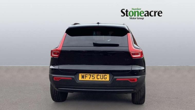 12.3" Progressive Driver Display, 9" centre console portrait touch screen, Adjustable steering wheel force, Android auto (Wired), Apple carplay (wired), Bluetooth handsfree system, Driver alert control, Driver assistance (pilot assist and adaptive cruise control), Driver awareness - Blind spot information system with steer assist, cross traffic alert with autobrake and rear collision warning and mitigation, E-call, Front and rear parking sensors, Front park assist, Google automotive services - Enabled entertainment apps, navigation with google maps, voice recognition with google assistant, Hands free power tailgate, Intelligent speed assistance, Lane keeping aid, Oncoming Lane Mitigation, Speed sensitive steering, Volvo cars services with app - Driving journal, engine remote start, remote door locking/unlocking and vehicle dashboard, Wireless/Inductive Mobile Phone Charging, Automatic transmission with start/stop and manual change functions, Dynamic chassis, DAB Digital radio, Steering wheel mounted remote controls, Adaptive brake lights with high level LED brake lights, Auto dimming feature for exterior door mirrors, Auto dimming interior mirror, Auto folding and heated power door mirrors, Automatic headlamp levelling, Automatic LED Headlights + Active high beam incorporating daytime running lights, Dark tinted windows - rear side windows and rear screen, Front aluminium tread plates, Front and rear electric windows, High gloss black front and rear skid plate, High gloss black front bumper deco, High gloss black front grille strikethrough and ironmark, High gloss black rear model, engine and volvo logo badges, High gloss black window trim, Home safe and approach lighting, Integrated roof rails in high gloss black, LED front fog lights, Puddle lights, Rain sensor with automatic windscreen wiper activation, Rear side wing doors, Rear wiper, Roof antenna, Roof spoiler, Visible VIN plate, 12V socket in front tunnel console and luggage compartment, 2-Zone electronic climate control with CleanZone air quality system and pollen filter, 3 seat bench in 2nd row, 3 Spoke tailored steering wheel with chrome trim, 60/40 versatile split folding rear seat, Centre console cupholders and storage, Charcoal carpet and floor mats, Charcoal headlining, Connect suede textile/microtech upholstery, Flexible load floor and grocery bag holder, Front headrests, Front seat cushion extensions, Glovebox bag hook, Heated front seats, Height adjustable passenger seat, Height/reach adjustable steering column, High gloss centre tunnel deco, High level illumination - Front door pocket, front side step (under door), tailgate, instrument panel, front door inlay, rear courtesy&reading lights, Integrated waste bin, Isofix attachments on outer rear seats, Load cover, Load protection net, Mid level illumination - Front footwell, luggage & glovebox compartment, front cabin courtesy & reading lights, illuminated vanity mirrors+ticket holder, Multi directional lumbar support for driver and passenger seat, Power driver seat with memory + exterior mirrors memory, Rear armrest with cupholders, Rear headrests, Single front passenger seat, Underfloor luggage compartment storage, Climate pack without heated front seats - XC40, 3x3 point rear seatbelts, City safety with steering support with Pedestrian + cyclist + front collision warning with full auto brake and rear auto brake, Driver and passenger airbags, Drivers knee airbag, Electronic parking brake with auto hold, First aid kit, Front and outer rear seatbelt reminder and pretensioners, Front seats SIPS airbags, Hill descent control - Off-road drive mode, Hill start assist, IC (Inflatable Curtains) - Full Length, Passenger airbag cut-off device, Power child locks on rear doors, Road sign information display, Run off Road Protection, SIPS (Side Impact Protection System), Slippery road and hazard light alert, Stability and Traction Control with Spin control, Engine Drag Control and Corner Traction Control, Tyre pressure monitoring system, Vehicle deceleration control with Anti-lock Brake System, Electronic Brake Distribution and Emergency Brake Assist, Warning triangle, WHIPS whiplash protection system - front, 2 x Key integrated remote control central locking including with deadlocking system and auto open/close windows, Anti-theft alarm including immobiliser/volume sensor + level sensor, Keyless drive includes keyless entry and keyless start, Locking wheel nuts, 20" 5 spoke high gloss black alloy wheels,