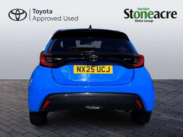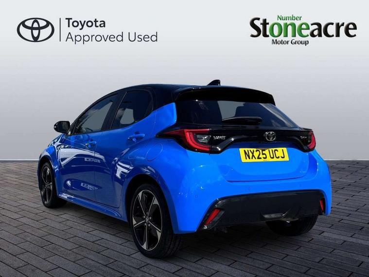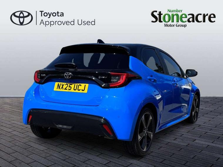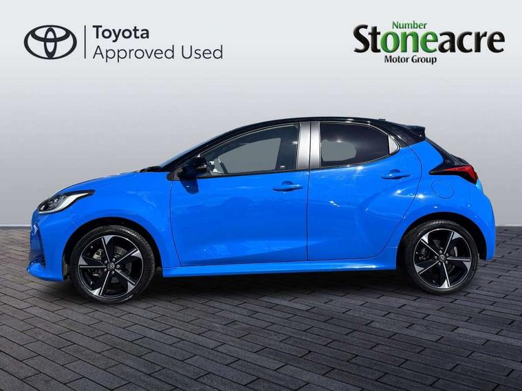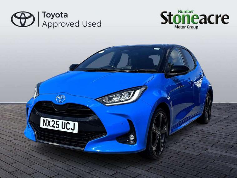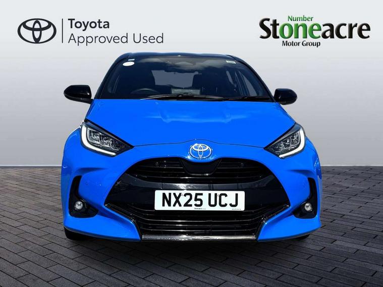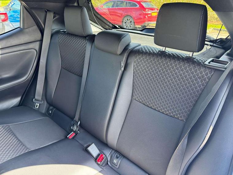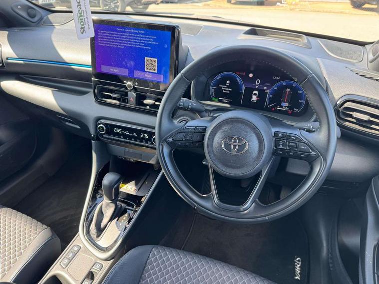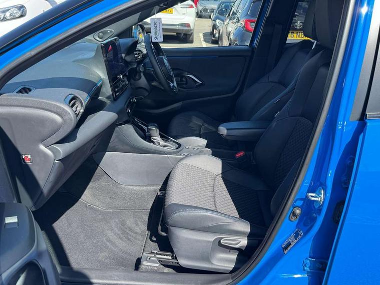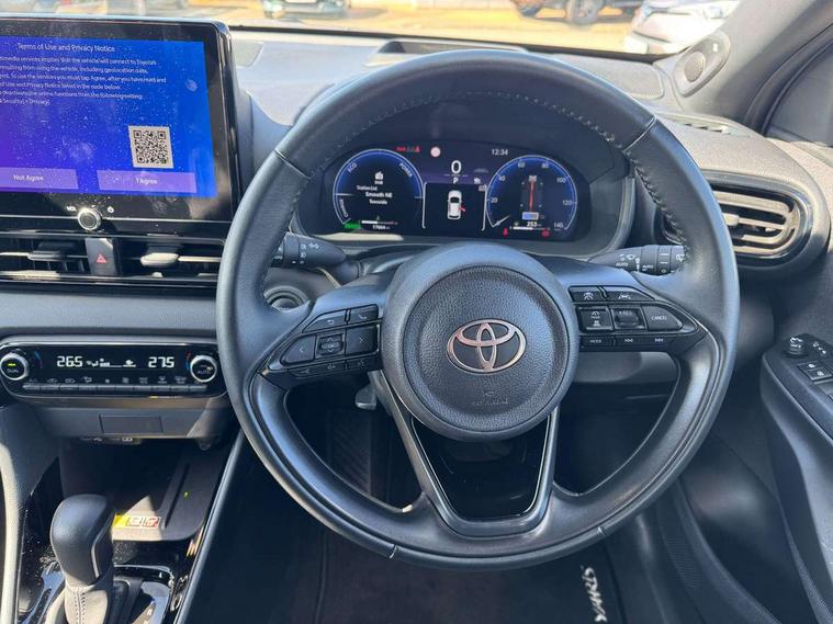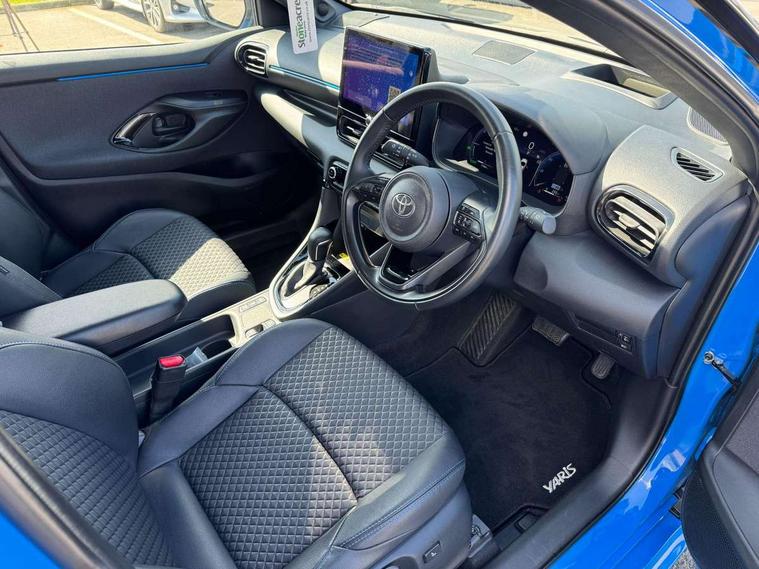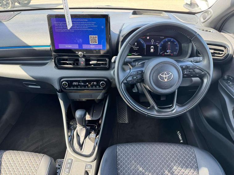 12.3" Digital Combimeter, Adaptive cruise control, Adjustable speed limit with speed warning, Bluetooth connectivity, Colour binocular inspired displays with digital speedometer, E-call, Electric power steering, Head up Display, Hybrid energy display, Multi information display switches on steering wheel, Reversing camera, Tailgate, Voice recognition, Wireless charger, Vehicle Stability Control (VSC), 10.5" Toyota smart connect multimedia with wireless smartphone integration incl apple car play and cloud Navigation, 6 speakers, 8 Speakers, JBL speaker system, Toyota Touch 3 system with DAB radio, USB connection, Acoustic windscreen glass, Auto windscreen wipers, Automatic headlights, Body coloured door mirrors, Dark chrome lower meshed front grille, Electric adjustable heated door mirrors, Follow me home headlights, Front auto power windows with anti jam protection, Full LED rear lights, LED daytime running lights, LED front fog lights, LED front light guide, LED Headlights, LED High mounted stop lamp, LED Indicators, LED rear light guide, Manual headlight levelling, Painted chequered front grille with hot stamp in mesh design, Rain sensor, Rear auto power windows with anti jam protection, Rear privacy glass, Rear roof spoiler, Rear side wing doors, Rear wiper, Shark fin antenna, Turning signal integrated indicators in door mirrors, Variable front intermittent wipers, 3 adjustable rear headrests, 3 seat bench in 2nd row, 3 spoke leather steering wheel, 60/40 split folding rear seat, Active headrests, Adjustable boot height, Black roof lining, Coat hooks in rear grab handles, Cup holders (2 front & door), Data Communication Module (DCM) connected services, Dual zone automatic air conditioning, Front armrest, Front sport seats, Glovebox, Height adjustable driver's seat, Height adjustable passenger seat, Isofix seat fixing, Leather gearshift, Map pockets on the backs of the front seats, Nanoe-X air purifier, Partial leather upholstery, Pollen filter, Shopping bag hooks, Single front passenger seat, Tilt/telescopic steering column, Safety pack - Yaris, 3 point seatbelts on all rear seats, ABS+EBD+Brake assist, Electronic parking brake, Emergency brake light system (EBS), Front passenger airbag on/off switch, Front seatbelt reminder, Hill start assist control (HAC), Rear child proof door locks, Rear seat belt reminder, Supplemental Restraint System (SRS) 8 airbags: Driver & passenger's airbags, dual side curtain airbags, side impact airbags, front centre airbag, Toyota Safety Sense 3 with over the air updates, Tyre pressure warning system, 2x Master key, Alarm/immobiliser, Keyless smart entry with push button start, Remote AC via MyT, Remote locking via MyT, Remote powered central double locking doors, Smart digital key, Piano black interior trim, Soft touch instrument panel, 17" Black Machined-face, 5 double spoke alloys wheels, Space saver spare wheel,