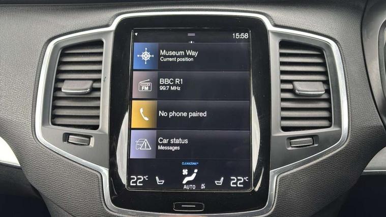 12.3" Active TFT crystal driver's instrument display, 9" centre console touch screen, Adaptive cruise control with pilot assist, Bluetooth hands free telephone connection, Distance alert system, Drive mode settings, adjustable steering wheel force + hill descent control, Emergency call service, Forward collision warning, Handsfree power boot opening and closing, Lane departure warning with driver alert control, Oncoming Lane Mitigation, Power tailgate, Service interval indicator, Speed dependant power steering system, Speed limiter, Touch screen centre multi info display, Trip computer, Voice control system, Volvo on call, Wireless internet connection, 8 speed automatic transmission with start/stop + manual change functions, Touring chassis, DAB Digital radio, Steering wheel audio controls, Steering wheel remote infotainment controls, Adaptive brake lights, Auto dimming exterior mirrors, Auto dimming interior mirror, Body colour bumpers, Body colour door mirrors, Chrome door handles, Chrome window surround, Cornering light, Day time running light, Electric adjustable/heated/folding door mirrors, Front and rear electric windows, Headlamp levelling, High beam assist, High level LED brake light, Home safe and approach lighting, Illuminated side steps, LED front fog lights, LED Headlights, Piano black front grille, Puddle lights, Rain sensor windscreen wipers, Rear side wing doors, Rear wash/wipe with intermittent wipe setting, Roof antenna, Roof spoiler, Silver roof rails, Twin chrome exhaust tailpipes, Visible VIN plate, 12V power point in luggage area, 12V socket in rear tunnel console, 2 seat bench in 3rd row, 2nd Row centre armrest with storage and cupholders, 3 seat bench in 2nd row, 3 spoke leather steering wheel with chrome trim, A-pillar parking ticket holder, B Pillar ventilation, Bright metal luggage threshold, Centre armrest storage illumination, Centre console cupholders, Centre console storage box, Driver/passenger lumbar adjustment, Drivers side dashboard storage, Electric memory driver's seat + door mirror memory, Floor mats, Front and rear aluminium tread plates, Front footwell illumination, Front headrests, Front/rear reading lights, Grocery bag holder, Heated front seats, Height/reach adjustable steering column, Illuminated gear knob, Illuminated glovebox with lock, Illuminated luggage compartment, Illuminated vanity mirrors + ticket holder, Isofix rear child seat preparation in 2nd row, Load cover, Outboard armrest with cupholder and storage for 3rd row, Passenger seat electric height adjuster, Pollen filter, Rear headrests, Single front passenger seat, Theatre dimming interior lights, Underfloor stowage compartment, 7 three point seatbelts, ABS/EBD, City safety braking system, Drivers knee airbag, Dual stage driver/passenger airbags, EBA, Electronic parking brake with auto hold, Front and rear curtain airbags, Front seat side impact airbags, Front seats SIPS airbags, Hill start assist, Inflatable curtain, Passenger airbag cut-off device, Pedestrian and Cyclist Detection, Road sign information display, Run off Road Mitigation, Run off Road Protection, Seatbelt pre-tensioners, Seatbelt warning, SIPS (Side Impact Protection System), Stability and Traction Control with Spin control, Engine Drag Control and Corner Traction Control, Tyre pressure monitoring system, Warning triangle and first aid kit, WHIPS whiplash protection system - front, Anti-theft alarm including immobiliser/volume sensor + level sensor, Deadlocking system, Keyless drive, Keyless start, Locking wheel nuts, Private locking, Remote central locking - doors and fuel cap, Cross brushed aluminium trim, Tempa spare wheel and jack,