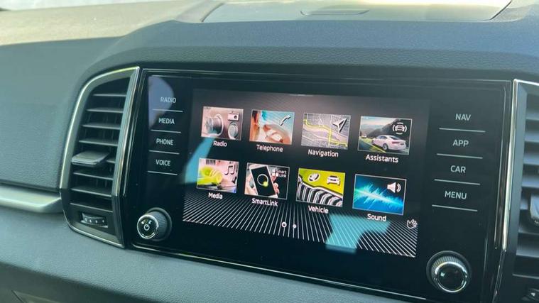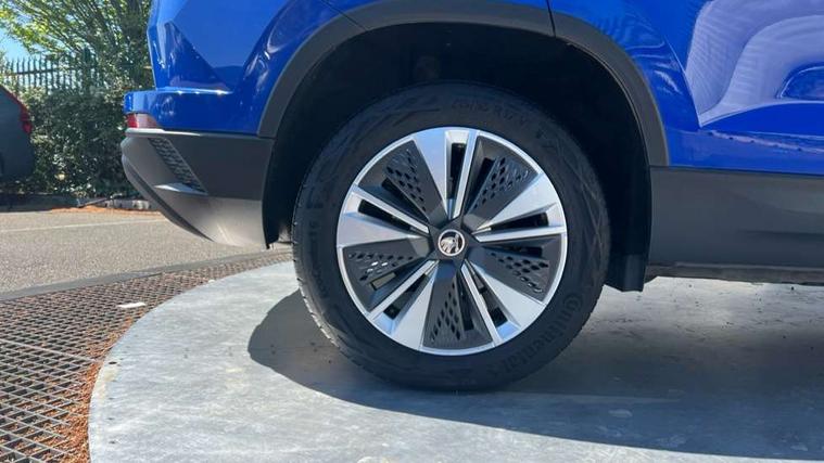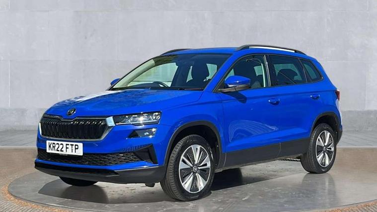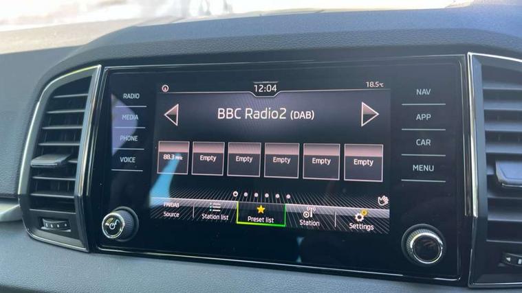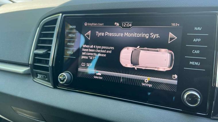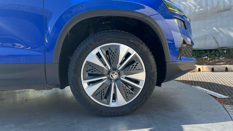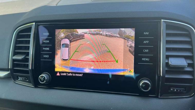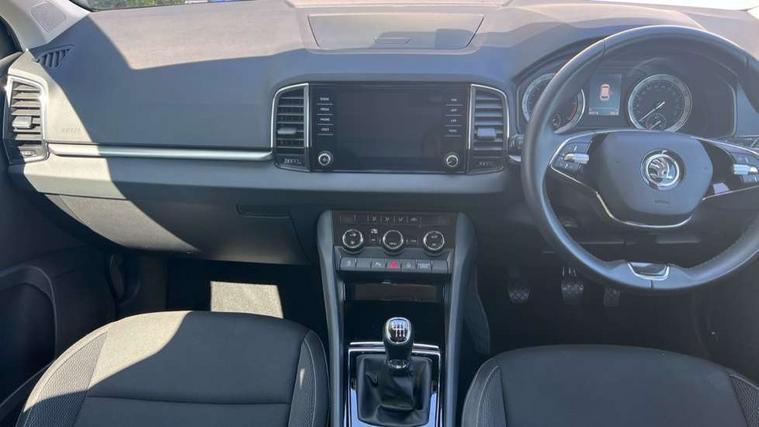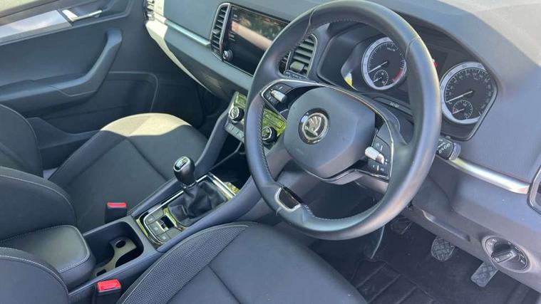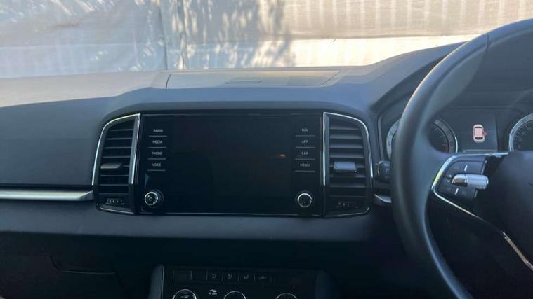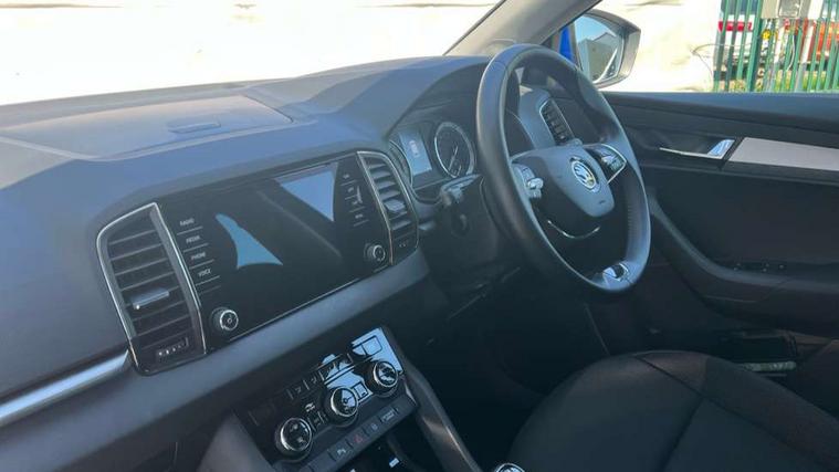 Amundsen satellite navigation with 8" touchscreen display with maps Europe, WLAN and web radio, Care connect, Drive mode selector, Driver fatigue sensor, Electro-mechanical PAS, Emergency services call system, Multifunction colour trip computer, Outside temperature gauge, Service interval indicator, SmartLink wireless for Apple and wired for Android, Start/stop system with regenerative braking, USB C Port x 2 in front centre console, Diesel particulate filter, 8 Speakers, DAB radio with Bluetooth, USB connection, Acoustic glass, Aero front windscreen wipers with intermittent function, Auto dimming rear view mirror with light and rain sensors, Automatic headlight control system, Black electric window control buttons, Body colour door mirrors and handles, Body coloured bumpers, Doors steps in front with Karoq badging, Electric front and rear windows with child proof lock, Electrically adjustable heated folding and auto dimming door mirrors, Front fog lights, Heated rear windscreen, LED daytime running lights, LED Headlights, LED rear lights with high functionality welcome effect and dynamic indicators, Light assistant (coming/leaving home/tunnel light), Privacy glass, Rear side wing doors, Rear wiper, Safety reflectors on front doors, Third brake light, 1.5 litre bottle holders in driver and front passenger door panels, 12V socket in boot, 12v socket in front centre armrest with storage compartment and rear air vents, 2 Folding hooks and nets in boot, 2 Front readings lights for driver and passenger, 2 x Tablet holder, 3 rear height adjustable headrests, 3 seat bench in 2nd row, 4 foldable roof handles with rear coat hooks, Black floor carpet, Chrome inner door handles, Double sided boot floor, Foldable hooks in the boot, Folding tables on the front seat backrests, Front head restraints, Height adjustable driver and passenger seat, Height adjustable front three point seats belts with tensioners, Height/reach adjust steering wheel, Ice scraper, Illuminated and cooled glovebox, Illuminated luggage compartment, Interior noise suppression, Isofix child seat preparation for front passenger seat, Isofix child seat preparation outer rear, Manual lumbar support for front seats, Pearl grey interior ceiling, Pen holder, Pollen filter, Rear boot cover, Rear reading lights, Rubbish bin door, Safety vest holder, Single front passenger seat, Storage box in upper central dashboard closed, Sunvisors with illuminated vanity mirrors, Textile floor mats, Umbrella under passenger seat, Airbags - Front side, head, knee and curtain, Automatic door unlocking in case of crash, Automatic fuel cut off in case of crash, Child locks on rear doors, Driver airbag, Electronic parking brake with auto hold function, Emergency rear braking signal, ESC including ABS, MSR, ASR, EDS, HBA, DSR, RBS, MKB and traction control, Front assist radar scanning of the space in front of the car with automatic braking, Hill hold control, Passenger airbag with switch-off function, Pedestrian monitor, Seatbelt reminder signalisation and pretensioner for all seats, Three point seatbelts rear, Two tone horn, Tyre pressure display, Tyre pressure monitor, Alarm with interior monitoring, back up horn and tilt sensor with safe function, Electronic engine immobiliser, Remote central locking with 2 remote folding keys, Black centre console, Chrome framed air vents, Satin black dashboard, Satin black door trim, Anti-theft wheel bolts protection, Storage on wheel cover,