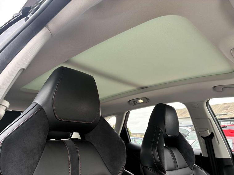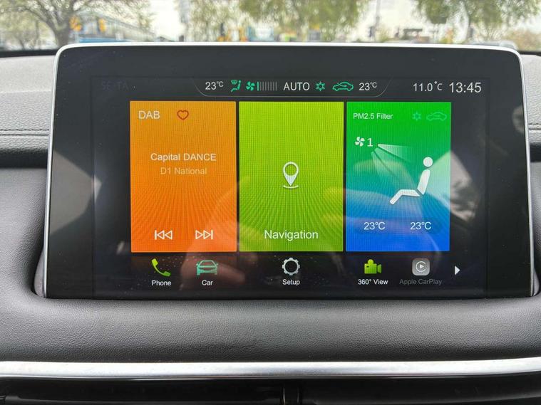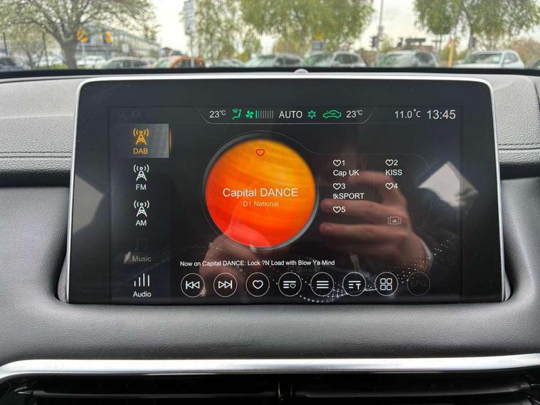 10.1" colour touchscreen, 12.3" Full digital driver information display, 360 degree parking camera, Adaptive cruise control, Android Auto, Apple CarPlay, Blind Spot Detection (BAS), Bluetooth connectivity, Emergency call service, Intelligent speed assist, Lane keep assist system (LAS) with Lane departure warning system (LDWS), PAS, Power tailgate, Rear cross traffic alert, Rear parking sensors, Satellite navigation system, Traffic jam assist, Trip computer, USB mobile phone charging function, 6 speaker audio system, DAB audio, Auto dimming rear view mirror, Automatic headlights, Body colour electric adjustable heated door mirrors, Electric folding door mirrors, Follow me home headlights, Front and rear aero wiper, Front and rear electric windows with one-touch up/down, Front fog lights, Intelligent high beam, LED Bi-Function headlights, LED centre brake light, LED daytime running lights, LED front and rear sequential indicators, Panoramic sky roof, Rain sensing wipers, Rear side wing doors, Silver roof rails, 12V power sockets, 2nd row 60/40 split fold seat, 2nd row seat with 2 stage incline adjustment, 3 rear headrests, 3 seat bench in 2nd row, 4 way electric adjustable passenger seat, 6 way electric adjustable drivers seat + lumbar support, Ambient lighting, Dual zone automatic air conditioning, Front centre sliding armrest with storage compartment, Front headrests, Heated front seats, Height and reach adjustable steering wheel, ISOFIX restraints on outer rear seats x2, Leather steering wheel, Metal sports pedals, Single passenger seat, Sports Style Front Seats with One-Piece Back, 3x3 point rear seatbelts, ABS/EBD, Active emergency braking with pedestrian/Bicycle detection, Anti rolling protection, Cornering brake control (CBC), Driver, passenger and 2nd row rear seat belt reminder, Dual front airbags, Electric parking brake with auto hold function, ESP, Front passenger airbag deactivation switch, Front seat belt height adjuster, Front seatbelts (3-point + pretensioner + load limiter), Front side airbags, Hill descent control, Hill launch assist, Manual rear child locks, Rear outer seatbelt pretensioner and load limiter, Side curtain airbags, Tyre pressure monitoring system, Alarm system and engine immobiliser, Keyless entry and push button start system, Remote central locking, Speed sensing door locks, 18" Hurricane diamond cut alloy wheels, Tyre repair kit,