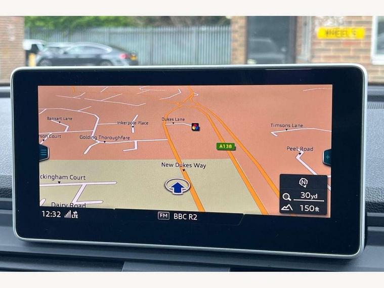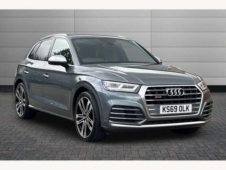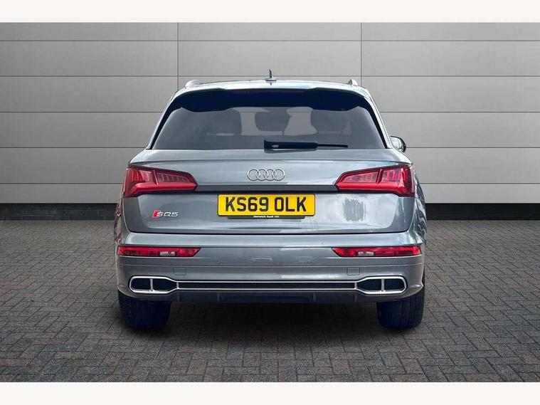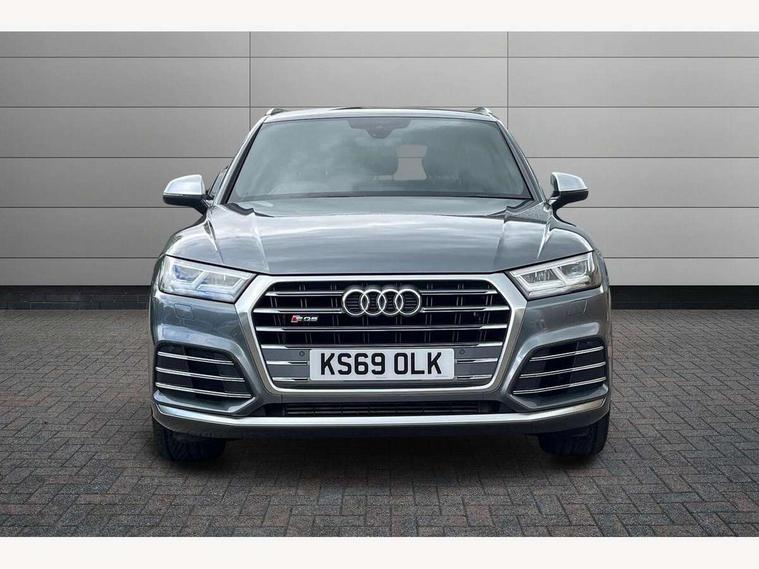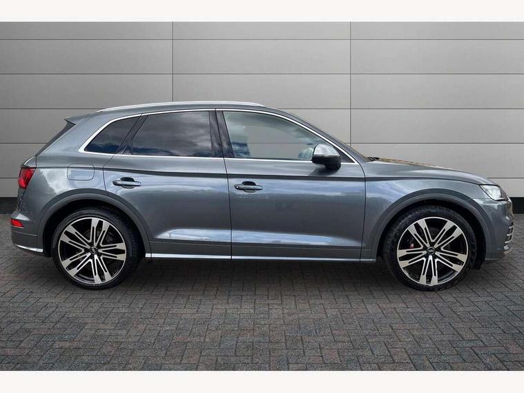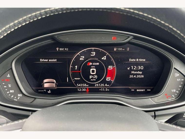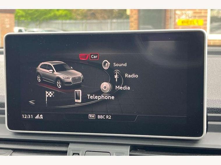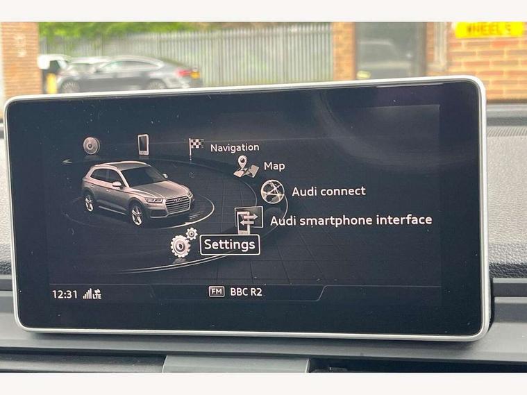 Audi connect safety and service (e-call), Audi drive select, Audi phone box with wireless charging, Audi smartphone interface, Audi virtual cockpit - 12.3" high resolution LCD digital instrument cluster display, Automatic start-stop system with coasting functionality and efficiency programme, Electro - mechanical power assisted steering, MMI navigation plus with 8.3" colour MMI screen and MMI touch, Mobile telephone preparation - bluetooth interface, Power tailgate, Service interval indicator, Voice control system, 70 litre fuel tank and 24 litre AdBlue tank, Adaptive air suspension, Diesel particulate filter, Quattro on demand, 2x SD card slot, Audi sound system, CD player, DAB Digital radio, MMI radio plus with 7" colour MMI screen and MMI controller, Acoustic windscreen, Aluminium roof rails, Audi Beam uses LEDs to project the Audi Sport logo, Auto dimming rear view mirror, Automatic headlight levelling, Body colour bumpers, Body colour S Line side skirts, Body colour S specific rear diffuser, Body colour underbody protection, Chrome exhaust tailpipe, Electric adjustable/heated/folding door mirrors, Front and rear electric windows, High beam assistant, LED headlights with LED rear lights + dynamic rear indicators, Light and rain sensor for auto activation of lights and windscreen wipers, Loading sill protector in stainless steel, Privacy glass with front acoustic glazing, Rear wiper, S air inlet in titanium black, S front and rear bumpers, S Line rear spoiler, Twilight grey matt radiator grille with matt aluminium horizontal chrome struts, 2 x USB charging port with aux input socket, 3 rear headrests, 3 spoke flat bottom high multi-function leather steering wheel, 4 way electric lumbar support for driver and front passenger, 40:20:40 split folding rear seat with rear centre armrest, Black cloth headlining, Contrast stitching on seats, steering wheel and gear lever gaiter, Deluxe 3 zone electronic climate control, Fine Nappa leather upholstery with diamond stitching, Front centre armrest, Front sport seats with S embossed logo, Front/rear floor mats, Fully electrically adjustable driver's seat, Fully electrically adjustable front passenger seat, Heated front seats, Height adjustable front head restraints, Height/reach adjustable steering column, Illuminated door sill trims with S logo, ISOFIX child seat mounting and top tether, Luggage compartment carpet, Massage function for front seats, Perforated leather gearknob, Rear seat bench plus, Removable luggage compartment floor, Stainless steel pedals, Sunvisors with vanity mirrors, Tool kit, Trunk roller cover, Extended LED Interior Lighting Pack - Q5, High gloss pack - Q5, Non Smokers pack, 3 point seatbelts on all seats, 6 airbags - Driver, front passenger, curtain and side airbags, Electromechanical parking brake, Electronic stabilisation control including ABS, ASR and EDL, Front passenger airbag deactivation, Hill descent control, Hill hold assist, Multi collision brake assist, Pop-up bonnet for pedestrian protection, Pre sense city, Seat belt force limiter, Seatbelt monitoring, Tyre pressure warning, Warning triangle and first aid kit, Anti theft alarm, Anti-theft wheel bolts, Keyless Go access/ignition system, Remote central locking,