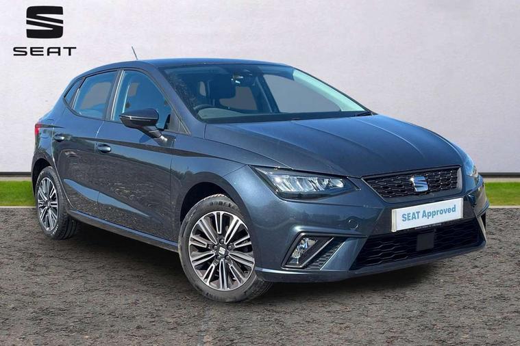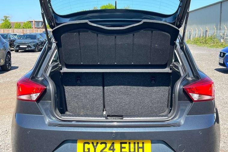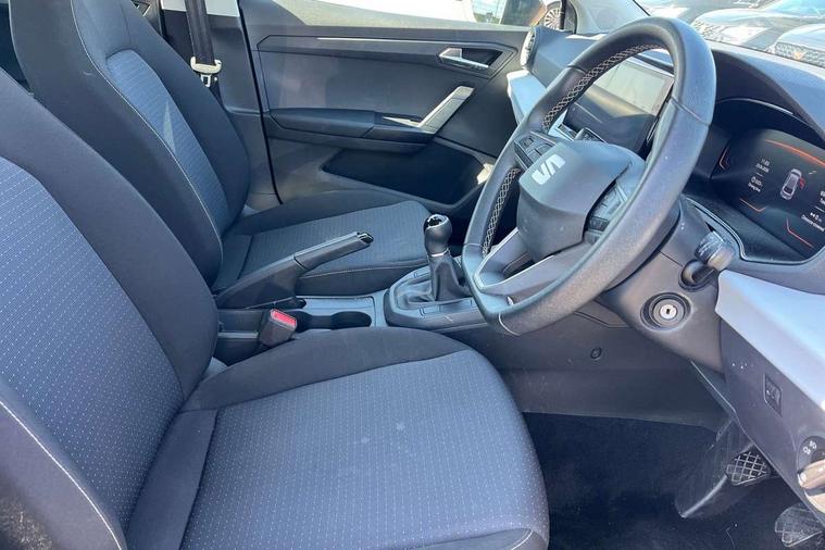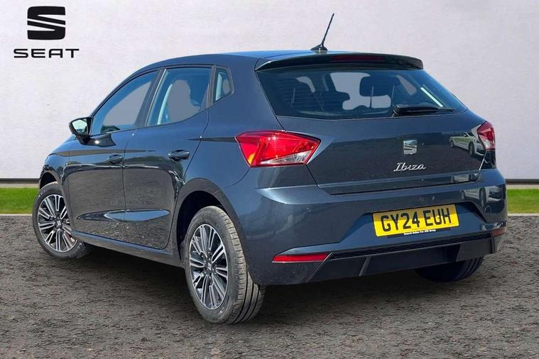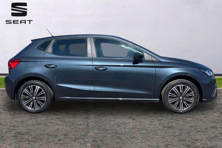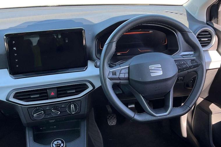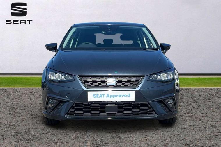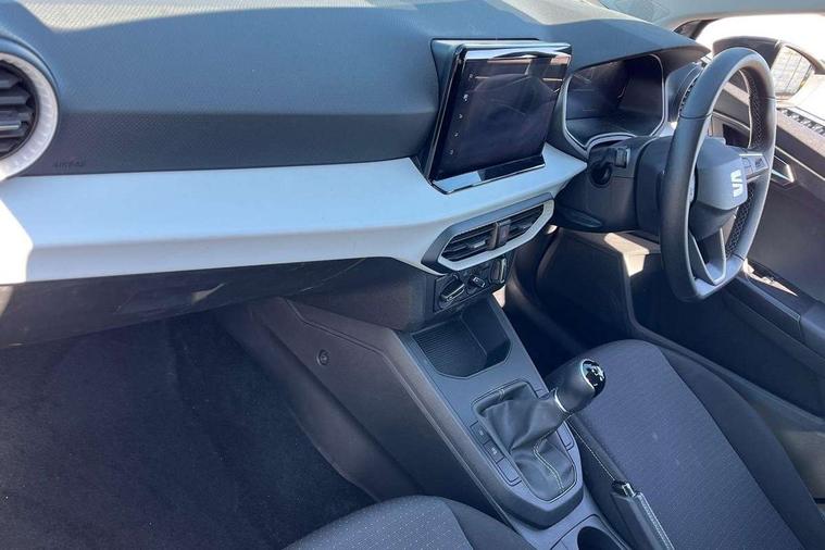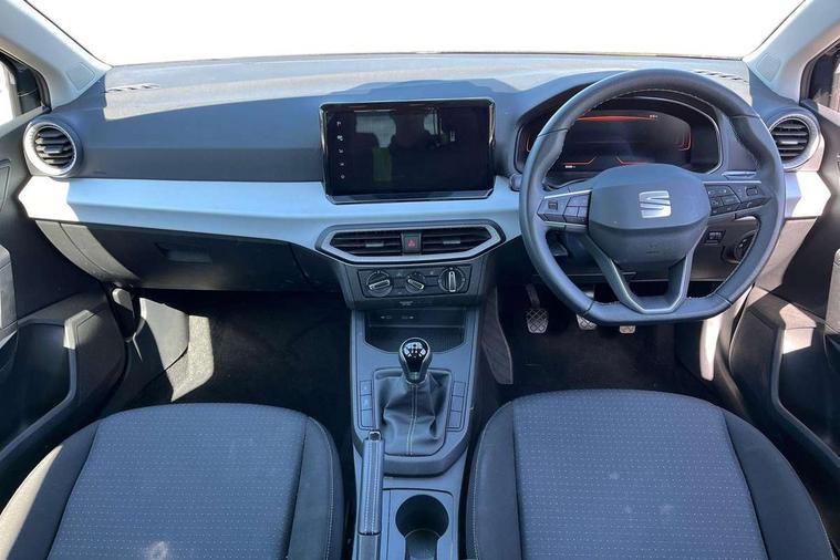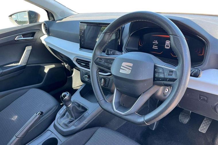 'Lights On' Reminder warning buzzer, 8" Digital cockpit, 9.2" touchscreen navigation system with type C USB socket, Voice control and DAB/AM/FM radio, Auto start and stop system, Bluetooth audio streaming with handsfree system, Cruise control, Digital clock, E-call, Full link smartphone integration with mirror link, wireless apple carplay, Google android auto + USB Type C cable for apple and android devices, Lane assist, Low fuel warning light, Outside temperature gauge, Power Steering, Rear parking sensor, Seat connect plus with safety, service, remote and online, SEAT logo boot release, Speed limiter, Traffic sign recognition, Trip computer, Comfort suspension, Auxiliary input socket, Radio/MP3 player, SD card slot, Steering wheel mounted controls, Anti theft roof antenna, Body colour bumpers, Body colour door handles, Body colour door mirror caps, Dimming interior rear view mirror, ECO LED automatic headlights and LED daytime running lights, Electric front windows, Electric headlight adjustment, Electrically adjustable door mirrors, Front/rear fog lights, Halogen tailights, Rain sensor, Rear side wing doors, Rear wiper, Third brake light, 3 seat bench in 2nd row, 60/40 split folding rear seat, Air conditioning with dust and pollen filter, Chrome interior detailing and grey headlining, Cloth upholstery, Comfort seats, Front courtesy lights, Front cupholders x 2, Front reading lights, Gear shift indicator, Glovebox, Height adjustable front and rear headrests (five), Height adjustable front seats, Height/reach adjust steering wheel, Illuminated boot, Instrument lighting with brightness control, Isofix, Leather multifunction flat bottomed sports steering wheel, Passenger sunvisor, Single front passenger seat, Sunvisors with mirror and driver side card holder, Safety and driving pack (S) - Ibiza, 3 point seatbelts on all 3 rear seats, ABS, Active front headrests, Child locks on rear doors, Electronic stability control, Energy recovery system, Front assist forward collision warning and autonomous emergency braking, Front driver and passenger side airbags with curtain airbag and front passenger airbag deactivation, Hill hold control, Multi-Collision braking, Seat belt reminder for front and rear seats, Tiredness recognition system, Tyre pressure monitoring system, Locking wheel bolts, Remote central locking + deadlocks, 16" Design machined alloy wheels in Nuclear grey,