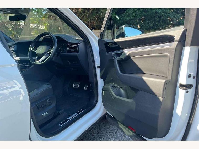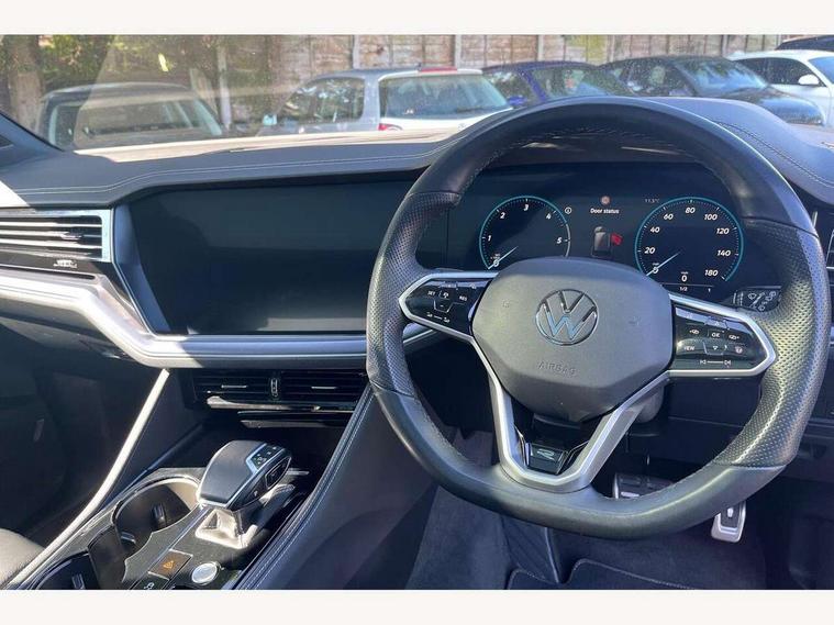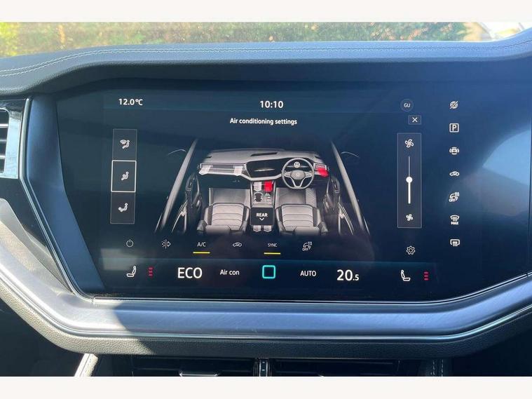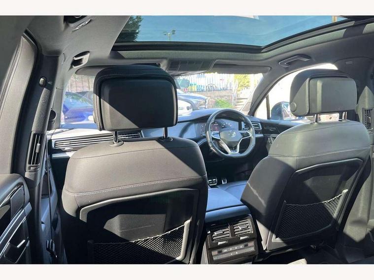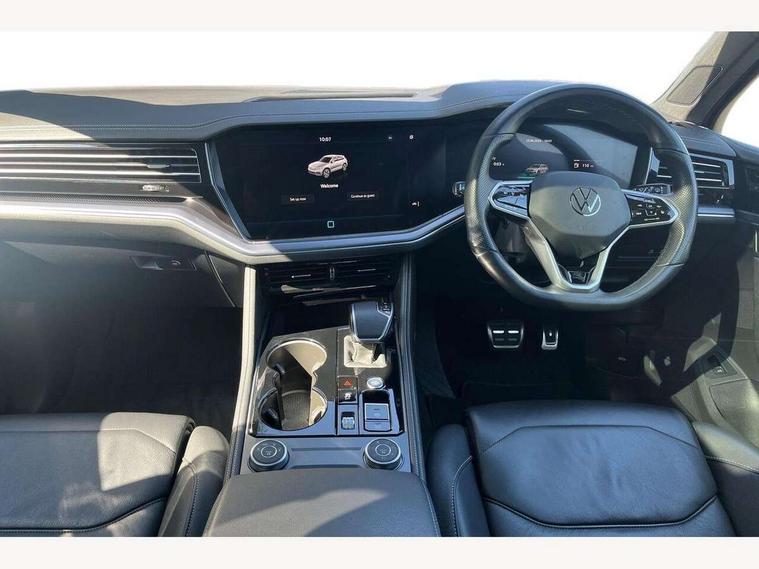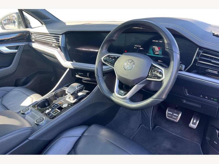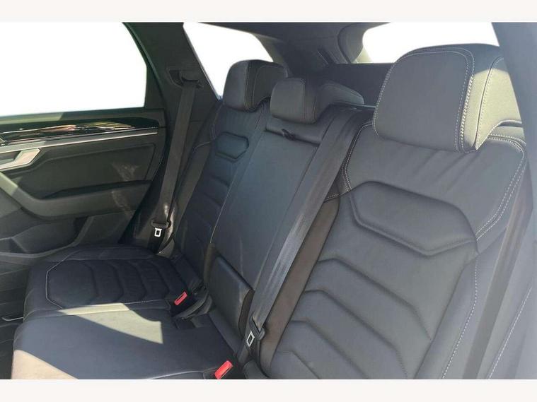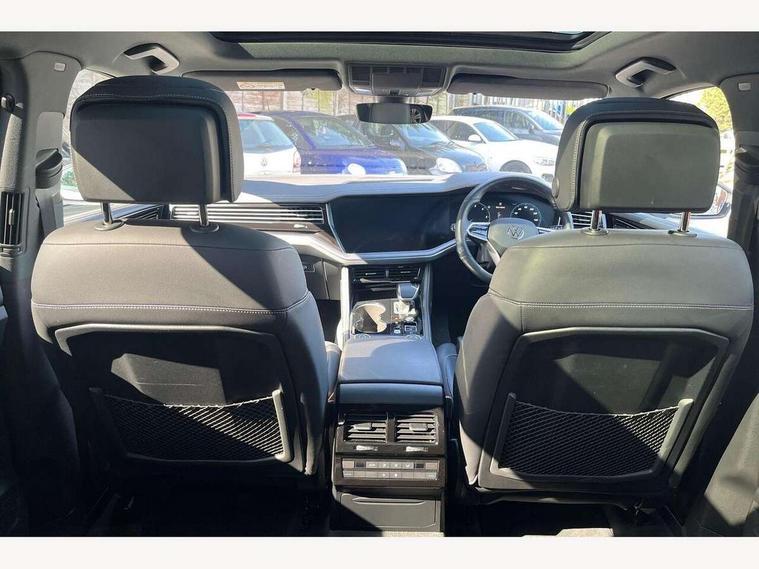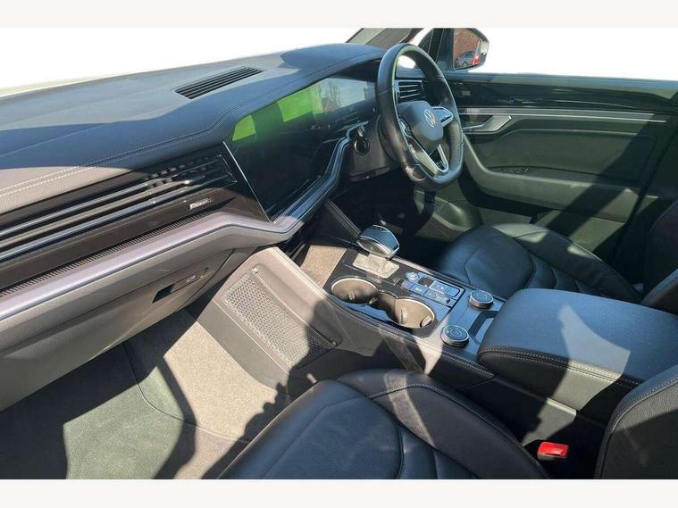 15" Screen Top infotainment system Premium (MIB3), Adaptive cruise control, Driver profile selection, Dynamic road sign display, E-Sim card for online connectivity, eCall emergency system, Innovision cockpit, Intelligent park assist, Mobile phone interface with inductive charging, Multi-colour Active Info display, Park Assist - Sensor controlled steering aid to assist parallel or bay parking, PAS, Warning signal and warning light for front and rear seatbelts not fastened, Wireless app connect, Adaptive chassis control, Air suspension, DAB Digital radio, Diversity antenna for AM/ FM reception, We Connect and We Connect Plus functionality, Automatic coming/leaving home lighting function, Automatic headlights, Black door mirrors, Black style comfort bumpers, Dynamic headlight range control with dynamic cornering light, Electric front tilt/slide panoramic sunroof and fixed rear sunroof, Electrically power adjustable, heated, folding, auto dimming, front passenger exterior door mirror lowering function, External USB type C socket and charging sockets, Gloss black roof rails, HD LED Matrix beam plus digital headlight projection with variable light distribution, Headlight washers, Heat insulating glass in side and rear windows, Heated windscreen washer jets, Highway light, LED 3rd brake light, LED daytime running lights, LED rear combination lamp with variable lighting functions and special styling, Poor weather light, Rear exhaust tailpipe, Rear fog light with back up light on both sides, Rear light bar and illuminated logo, Rear side wing doors, Rear wiper, Stainless steel door sill protection, 12V socket in centre console, 3 rear headrests, 3 seat bench in 2nd row, 4 zone climate control, Airbag label on sun visor and B-pillar, Black decorative trims, Brushed stainless steel pedals, Double sun visors with illuminated vanity mirrors, Front + rear carpet mats, Front centre armrest, Leather wrapped multifunction sports steering wheel, heated, with touch control and shift paddles, Mechanical rear seat release, Power adjustable lumbar support in front, Power seats in front, right side with memory features and seat cushion depth adjustment, Rear seat backrest and split folding with center armrest, Single front passenger seat, Tool kit, Extra acoustics pack - Touareg, Memory pack plus - Touareg, 3 point seatbelts, outer rear with ECE lable, ABS, Advanced driver attention and drowsiness monitor, Child locks on rear doors, Curtain airbags, Driver and front passenger safety-optimised head restraints, Driver/Front Passenger airbags, Extended pedestrian protection measures, Front assist, Front seat side impact airbags, Generative braking with start and stop system, Height adjustable 3 point front seatbelts with pre tensioners, Passenger airbag deactivate switch, Three 3 point rear seatbelts, Two tone horn, Tyre pressure loss indicator, Warning triangle and first aid kit, Alarm system with interior protection, Easy open and close sensor controlled luggage compartment opening and closing with remote unlocking, Keyless Access Keyless locking and starting system with SAFELOCK, Aluminium decorative inserts, Gloss black decorative inserts in centre console,