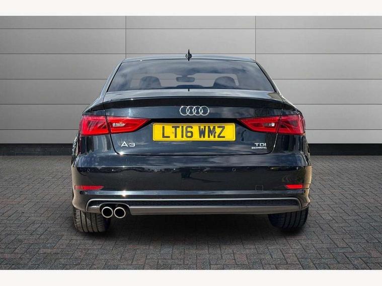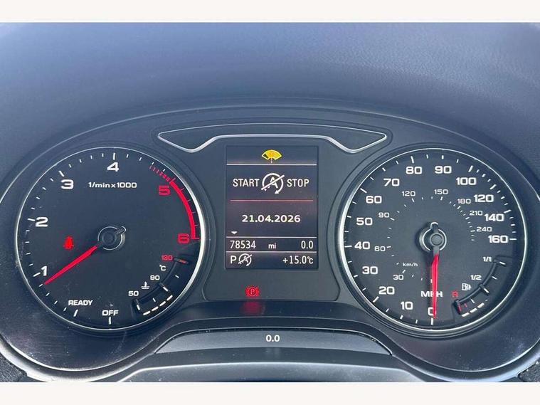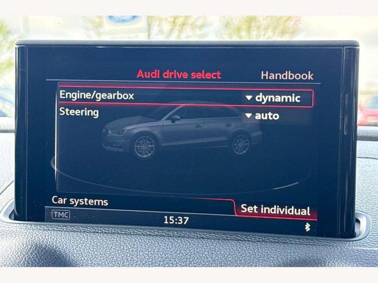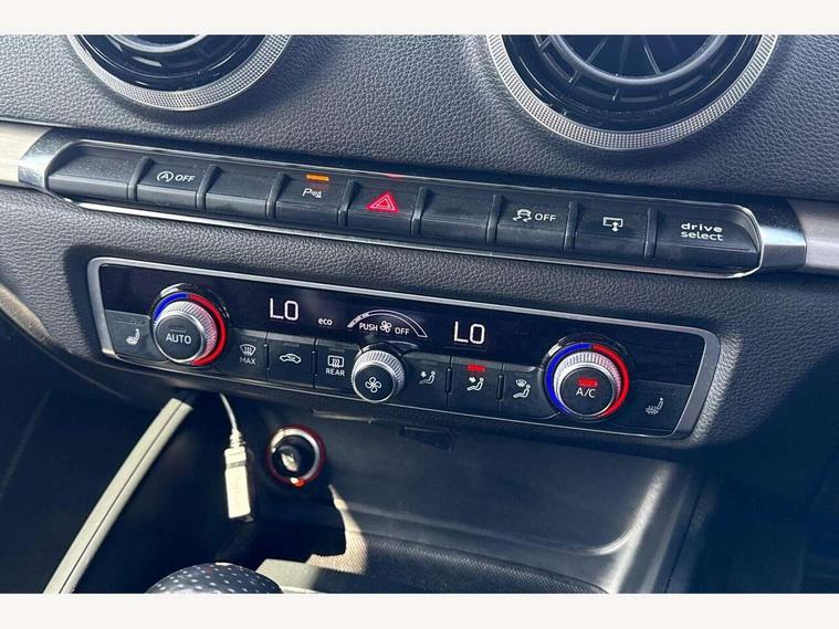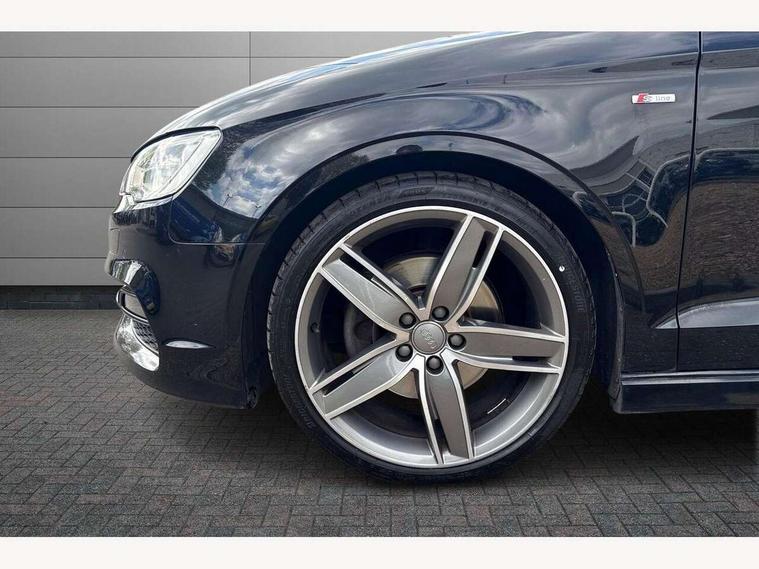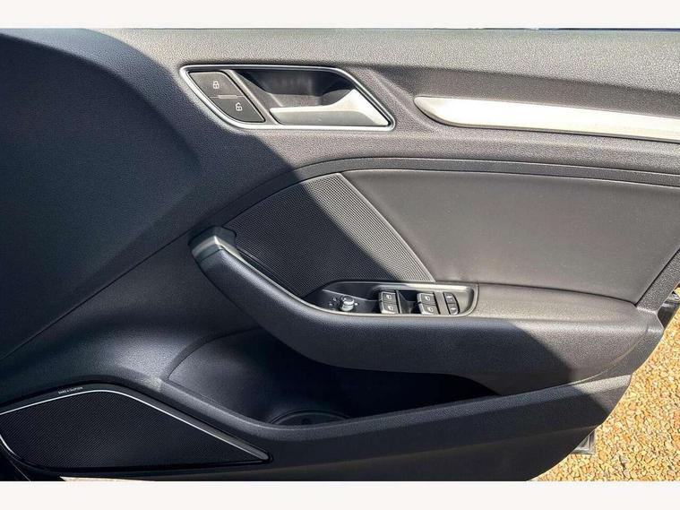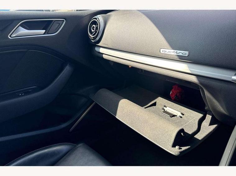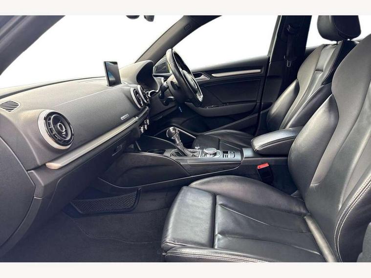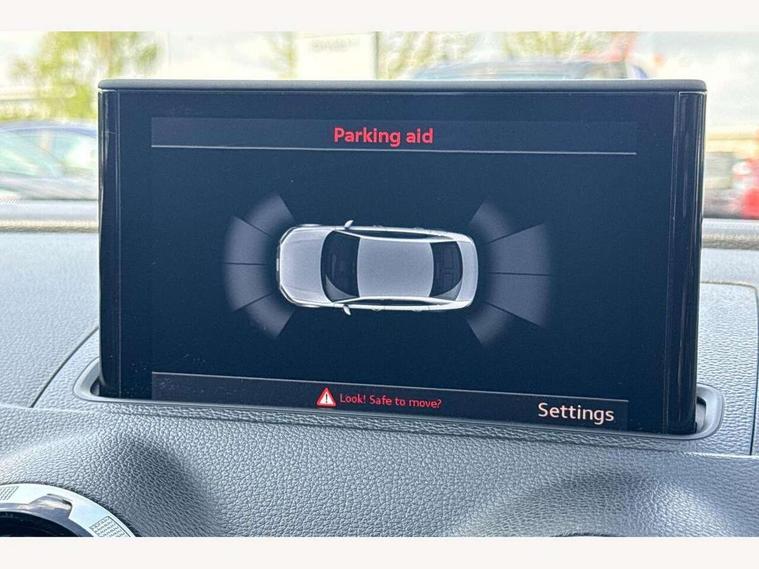 Audi drive select, Colour driver's information system display, Low washer fluid indicator, Service interval indicator, Voice control system, Diesel particulate filter, Audi music interface, DAB Digital radio, Aluminium side window trim, Body colour bumpers, Body colour door mirrors with integral indicators, Body colour roof spoiler, Chrome exhaust tailpipes, Front and rear electric windows, Front fog lights, Heated rear window, Heated windscreen washer jets, High gloss black fog light surround, High gloss black front grille, LED daytime running lights, S Line body styling, Twin exhaust tailpipe, 3 adjustable rear headrests, 3 spoke flat bottomed S Line multifunction steering wheel, 4 lashing points to secure luggage, 60/40 split folding rear seat, Adjustable front armrest, Aluminium door sill trims, Black cloth headlining, Coat hooks on both sides, Cup holders, Door sill trims with S line logo, Driver/passenger sunvisors, Dual zone electronic climate control, Front and rear interior lights with delay, Front/rear floor mats, Height adjustable front seats, Height/depth adjustable steering column, Illuminated glovebox, Illuminated luggage compartment, ISOFIX child seat preparation+airbag deactivation, Passenger underseat drawer, Perforated leather gearknob, Removable rear parcel shelf, Steering wheel gearshift paddles, Storage compartment in centre console, Storage compartments in doors, Storage and luggage pack - A3/RS3, 3 point seatbelts on all seats, ABS/EBD, Active bonnet, Active front headrests, ASR, Curtain airbags, Driver and passenger side airbags, Driver/Front Passenger airbags, Drivers knee airbag, EDL, Electromechanical parking brake, ESC - Electronic Stability Control + traction control, Front passenger airbag deactivation, Manual rear child locks, Seatbelt warning, Tyre pressure monitor, Warning triangle and first aid kit, Anti-theft wheel bolts, Remote control central locking, Thatcham category 1 alarm + immobiliser, Aluminium air vent surrounds, Aluminium trim elements, Matt brushed aluminium inlays,