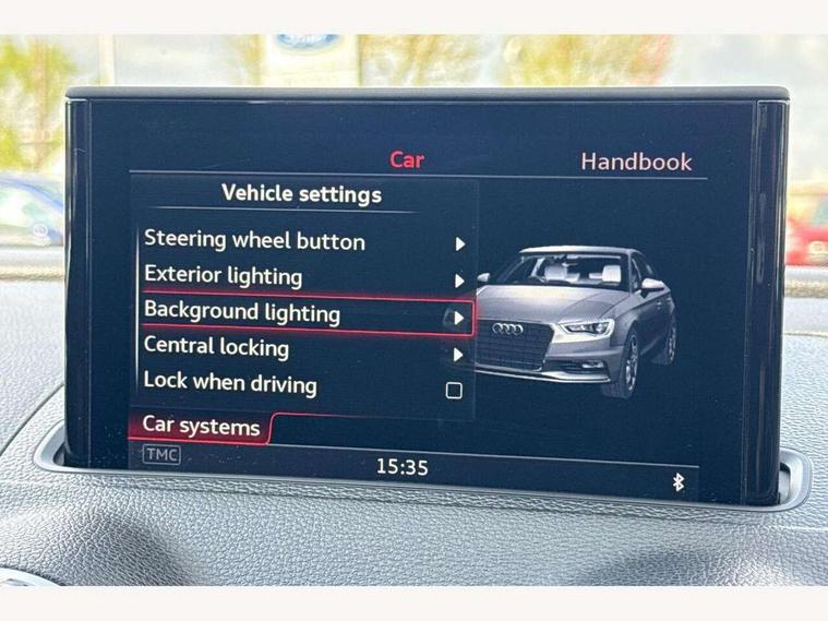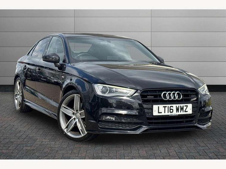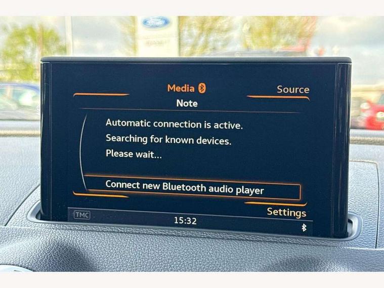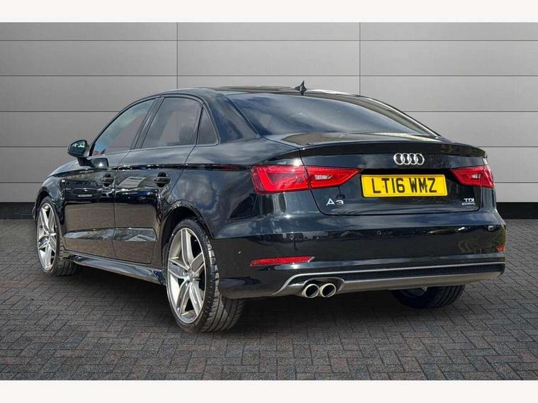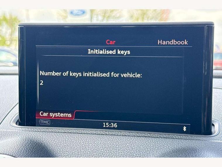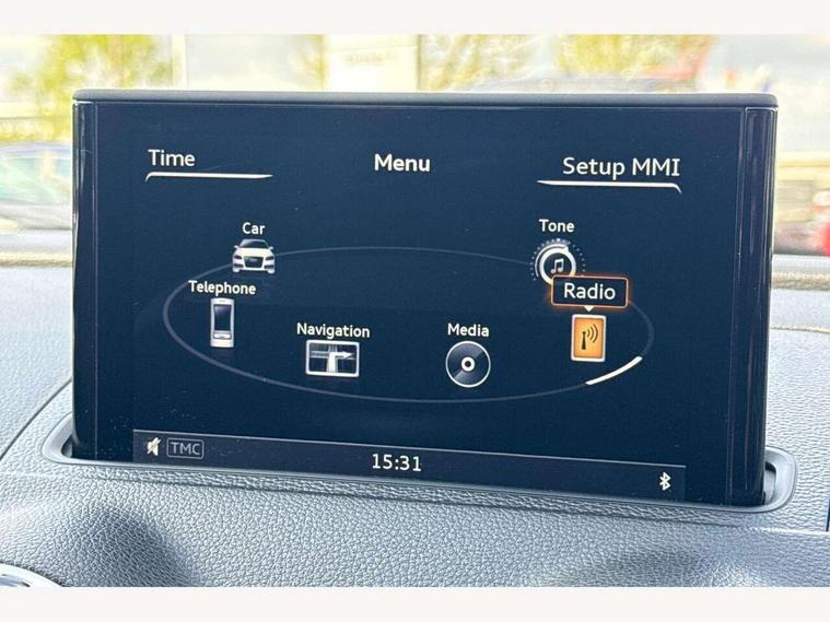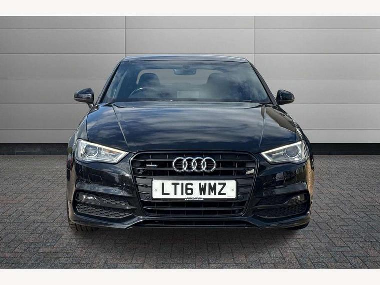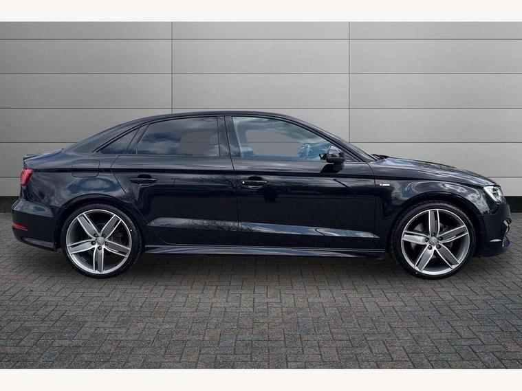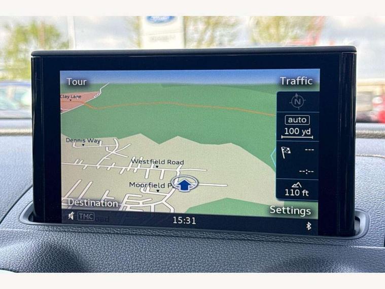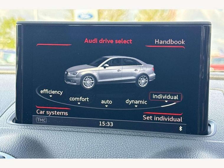 Audi drive select, Colour driver's information system display, Low washer fluid indicator, Service interval indicator, Voice control system, Diesel particulate filter, Audi music interface, DAB Digital radio, Aluminium side window trim, Body colour bumpers, Body colour door mirrors with integral indicators, Body colour roof spoiler, Chrome exhaust tailpipes, Front and rear electric windows, Front fog lights, Heated rear window, Heated windscreen washer jets, High gloss black fog light surround, High gloss black front grille, LED daytime running lights, S Line body styling, Twin exhaust tailpipe, 3 adjustable rear headrests, 3 spoke flat bottomed S Line multifunction steering wheel, 4 lashing points to secure luggage, 60/40 split folding rear seat, Adjustable front armrest, Aluminium door sill trims, Black cloth headlining, Coat hooks on both sides, Cup holders, Door sill trims with S line logo, Driver/passenger sunvisors, Dual zone electronic climate control, Front and rear interior lights with delay, Front/rear floor mats, Height adjustable front seats, Height/depth adjustable steering column, Illuminated glovebox, Illuminated luggage compartment, ISOFIX child seat preparation+airbag deactivation, Passenger underseat drawer, Perforated leather gearknob, Removable rear parcel shelf, Steering wheel gearshift paddles, Storage compartment in centre console, Storage compartments in doors, Storage and luggage pack - A3/RS3, 3 point seatbelts on all seats, ABS/EBD, Active bonnet, Active front headrests, ASR, Curtain airbags, Driver and passenger side airbags, Driver/Front Passenger airbags, Drivers knee airbag, EDL, Electromechanical parking brake, ESC - Electronic Stability Control + traction control, Front passenger airbag deactivation, Manual rear child locks, Seatbelt warning, Tyre pressure monitor, Warning triangle and first aid kit, Anti-theft wheel bolts, Remote control central locking, Thatcham category 1 alarm + immobiliser, Aluminium air vent surrounds, Aluminium trim elements, Matt brushed aluminium inlays,