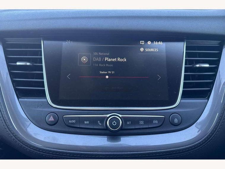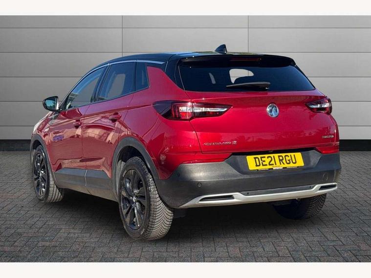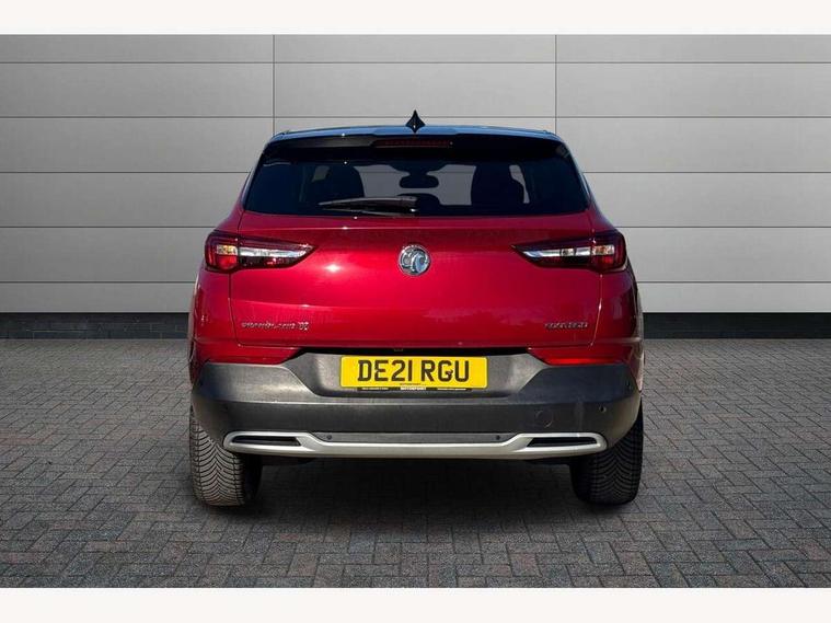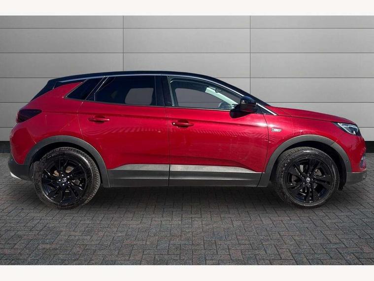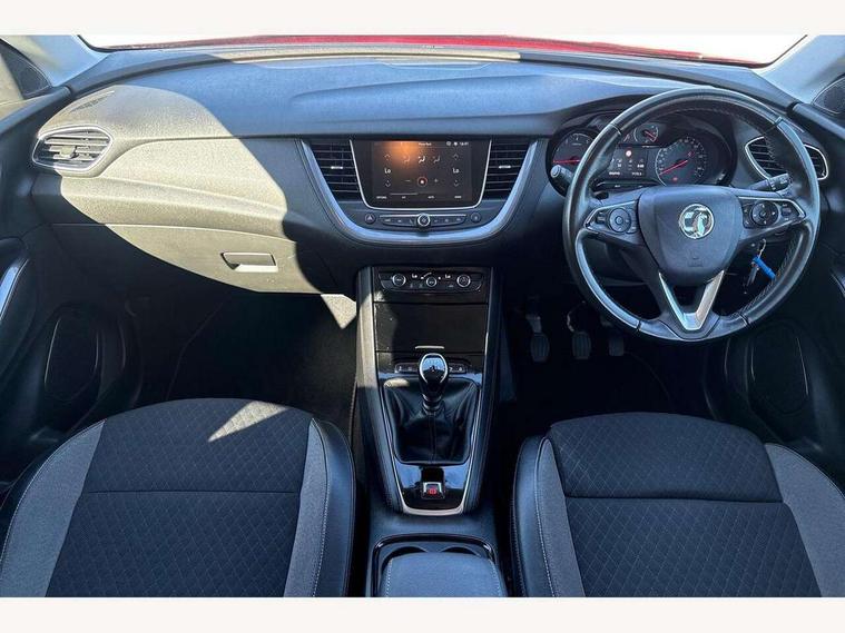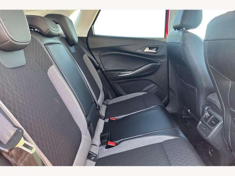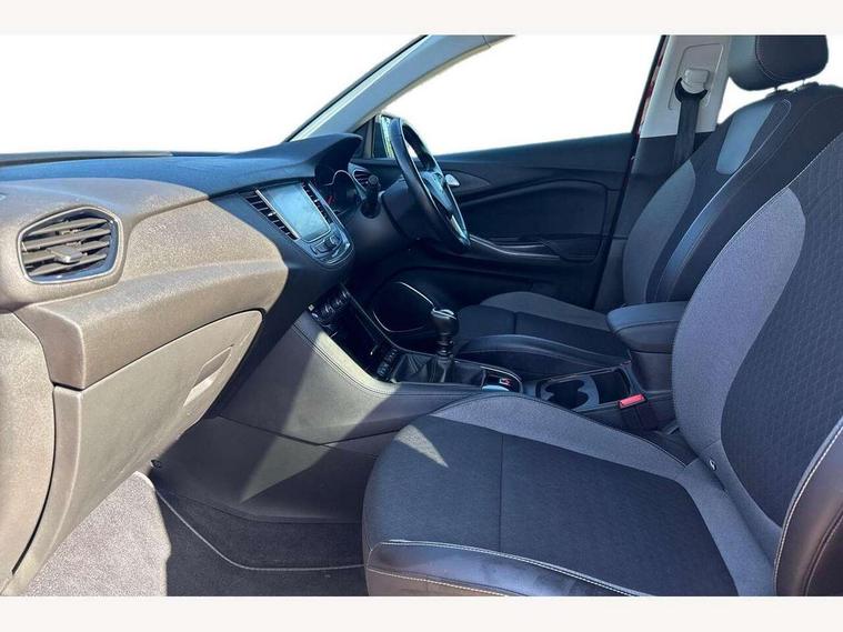 3.5" colour information display, Audible lights on warning, Central facia display with digital clock, outside air temperature and audio information, Cruise control with speed limiter, Digital water temperature gauge with warning light, eCall emergency call system, Fuel gauge with low fuel level warning light, Gearshift up/down indication light, Lane departure warning system, Multi function trip computer, Multimedia navi pro with 8" colour touch+ sat nav+AM/FM/DAB radio, bluetooth audio streaming/mobile phone portal, Apple carplay/Android auto, USB, Rear view camera, Rev counter, Service interval indicator, Speed sensitive electric power assisted steering, Speed sign recognition, Speedometer, Vauxhall connect including Ecall and connected services, Voice control system, iPod connection, Six speaker - four front + two rear, Steering wheel mounted audio/phone/cruise controls, Auto tilting door mirrors, Automatic anti dazzle rear view mirror, Automatic lighting control, Body colour door handles, Chrome effect bar on front grille, Chrome side window trim, Collapsible windscreen wipers, Dark tinted rear windows, Door to door illumination, Electrically foldable door mirrors with puddle lights, Electrically operated front and rear windows with safety auto reverse and one touch up/down facility, Gloss black finish B pillar, Hazard warning lights, High beam assist, High level centre rear brake light, Intermittent rear window wash/wipe, LED daytime running lights, LED front fog lights, LED rear fog lights, LED tail lights, Manual headlight beam levelling, Rain sensor windscreen wipers, Rear spoiler, Reversing lights, Shark fin aerial, Side protection mouldings, Side window demist vents, Sound absorbing windscreen, Twin electrically adjustable and heated door mirrors, Two speed windscreen wipers with variable intermittent wipe, Upper and lower bumper design, Welcome lighting, Windscreen demist vents, 12V electrical accessory socket in front, 12V electrical accessory socket in luggage compartment, 2 way adjustable front passengers sport seat with reach, backrest and head restraints, 3 spoke leather covered steering wheel with satin chrome effect bezel, Anti submarining front seats, Automatic air direction and fan speed with manual override, Black premium leather effect side bolsters, Centre rear head restraint, Chrome effect interior door handles, Covered storage compartment in centre console and in driver armrest, Driver's centre armrest, Driver/passenger sunvisors with illuminated vanity mirrors, Electronic dual zone climate control with air conditioning + advanced predictive logic control using sensor + Charcoal filter + illuminated controls, Four adjustable facia vents, Front and rear passenger assist handles, Front door pockets with 2.6 litre capacity, Front seat back storage pockets, Fully carpeted luggage area, Harlekin cloth upholstery, Heated rear windscreen with timed cut-off, Height adjustable front and rear head restraints, Interior courtesy light operated by all doors, Isofix attachment on front seat, Isofix system on outer rear seats, Luggage compartment cover, Reach + rake adjustable steering column, Rear door pockets with 1.8 litre capacity, Rear passenger compartment heating ducts, Rear reading lights, Two drinks holder in centre console, Ventilated glove box with lid, Ergonomic active driver's sports seats pack - Grandland X, Exterior styling pack - Grandland X, Safety pack - Grandland X, Versatility pack - Grandland X, 3x3 point rear seatbelts, Active pedestrian safety system, Anti-lock braking system (ABS), Child proof locks on rear doors, CSC - Cornering stability control, Deactivation switch for front passenger front and side impact airbags, Deflation detection system, Deformation zones front and rear, Driver/Front Passenger airbags, Dual seatbelt pretensioners on front seats, EBD - Electronic brakeforce distribution, Electronic parking brake, Energy absorbing steering column, Engine drag torque control, Front and rear seatbelt reminder, Front seat side impact airbags, Full size curtain airbags for driver, front passenger and outer rear passenger seats, Hill start assist, Hydraulic Brake Assist (HBA), Inertia reel lap and diagonal seatbelts for all seats, Load limiters on outer rear seatbelt retractors, Outer rear seatbelt pretensioners, Reinforced passenger safety cell, Side impact protection beams, Switchable electronic stability programme, Traction control, Tyre pressure monitoring system, 2 remote folding keys, Electronically protected audio equipment, Engine deadlock and immobiliser, Locking wheel nuts, Remote control central locking, Remote security alarm system, Visible vehicle identification number, Black door panels with black premium leather effect inserts, 18" 5 spoke high gloss black alloy wheels,