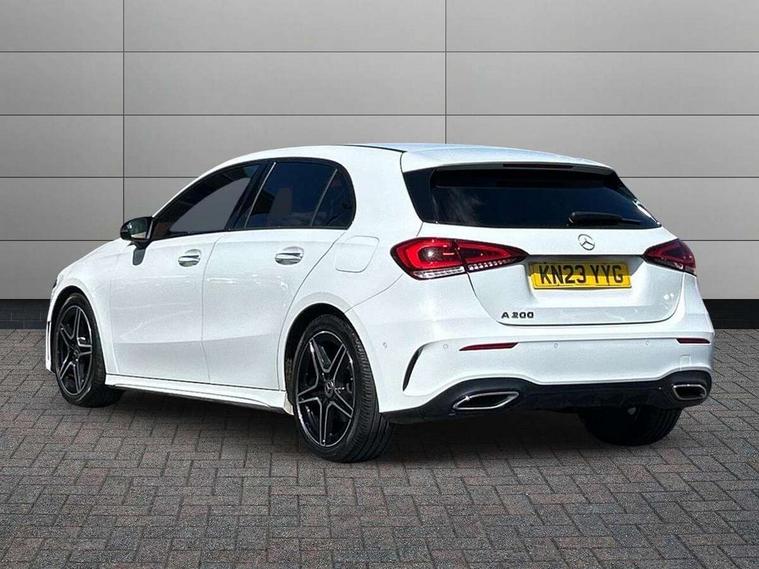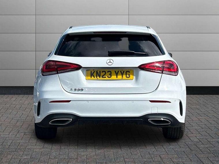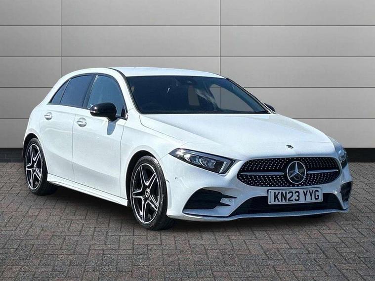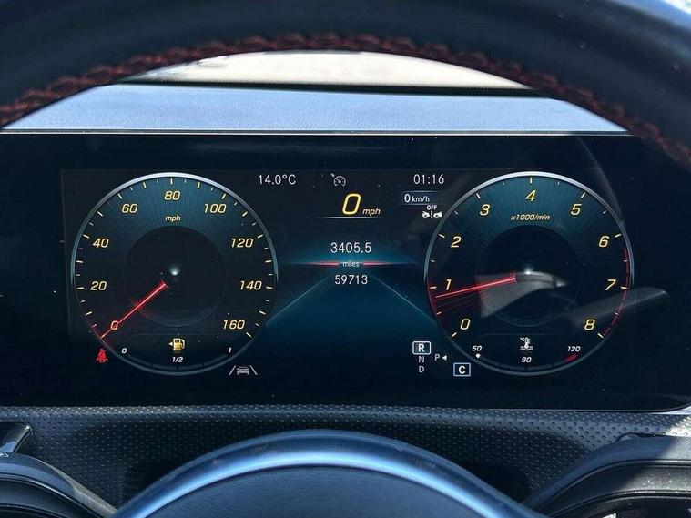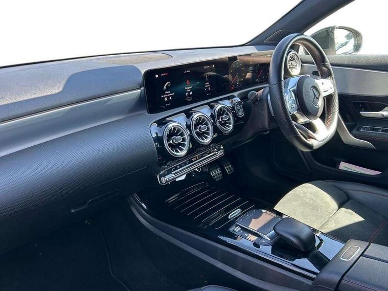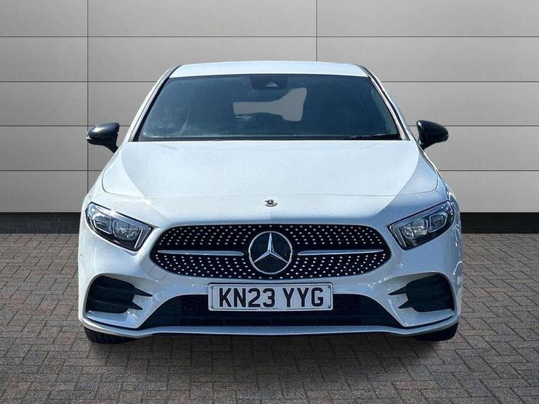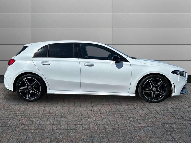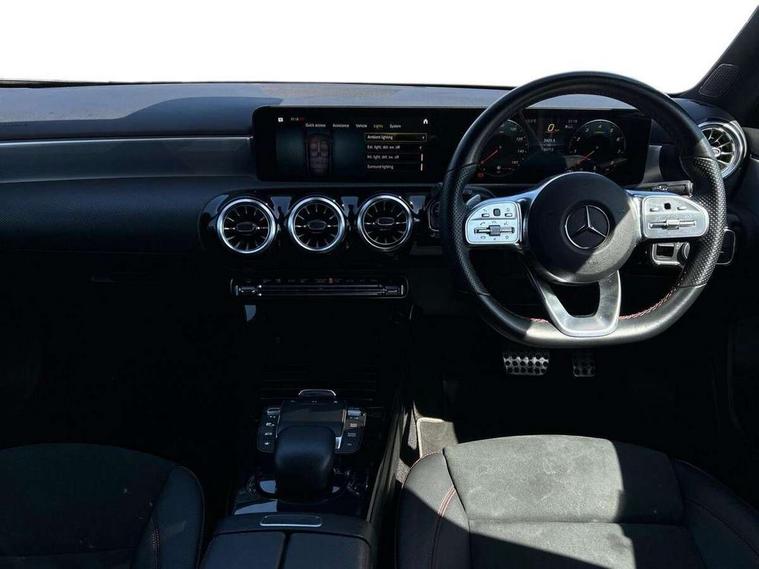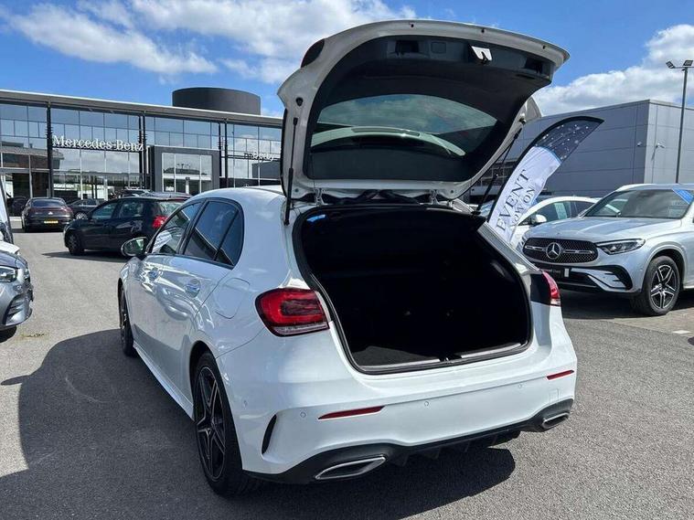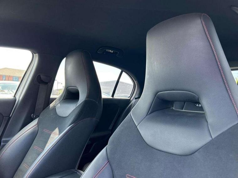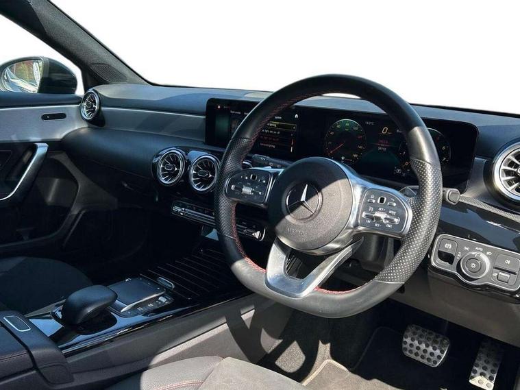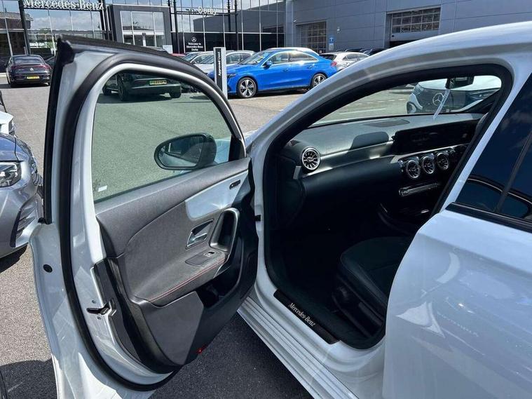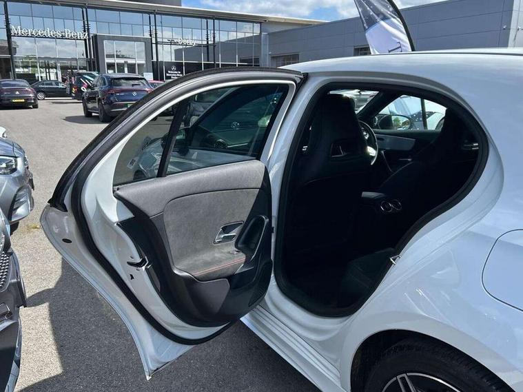 10.25" Digital instrument cluster display screen, 10.25" media display, 180 degree rear view camera with parking guidelines, Active parking assist with visual and audible warning of detected obstacles, Attention assist, Brake pad wear indicator warning light, Car wash mode, Cruise control + speed limiter, Direct steering, Dual bluetooth interfaces, DYNAMIC SELECT with a choice of driving modes (ECO, Comfort, Sport and Individual), ECO start/stop function, Fluid level warning indicator for fuel, oil, coolant and washer fluid, Hard-disk navigation, Hey Mercedes Voice activation, Lamp failure indicator, Lane keeping system, Mercedes me connect including emergency call system, accident recovery, breakdown and maintenance management, Mercedes me remote services, Outside temperature gauge, Owners manual in English, Pre-installation for private car sharing, Preinstallation for Mercedes Benz link, Service indicator (ASSYST), Smartphone integration with Apple CarPlay and Android auto, Speed limit assist, Speed sensitive power steering, Trip computer, Ultrasonic sensors positioned in the front and rear bumpers, Lowered comfort suspension, Rear axle torsion beam, 2 USB ports (type C) in rear stowage compartment and one in front of center console, 6 speakers, DAB Digital radio, MBUX multimedia system with DAB digital radio and touchpad including satellite navigation, Mercedes-Benz sound system - 100W, 4 Electric Front and Rear windows, Adaptive brake lights, AMG bodystyling - Front apron with splitter in chrome, rear apron with chrome trim and chrome visible trim elements in tailpipe, Automatic headlights, Black weather strip, Body colour bumpers, Body colour door handles with chrome inserts, Body colour side skirt, Electric adjustable and heated door mirrors with integrated LED side indicators, Exclusive diamond radiator grille, Exhaust system - Twin visible tailpipes in polished stainless steel, Headlamp assist automatic headlamp activation, Heated glass rear windscreen + timer control, LED High level third brake light, LED high performance headlamps with integrated LED daytime running lights, LED tail lamp, Privacy glass, Radio aerial, Rain sensing windscreen wipers with two sensitivity settings, Rear fog lights, Rear side wing doors, Rear wiper, 3 seat bench in 2nd row, 3 Spoke flat bottom leather multi function steering wheel with perforated leather in grip area, 40:20:40 split folding rear seats, Artico man-made leather/Microfibre Dinamica upholstery with red contrast stitching, Auto Mercedes-Benz child seat recognition sensor, Black air vents with surround in silver chrome, Black roof lining, Brushed stainless steel sports pedals with rubber studs, Controller on centre console with chrome surround, Floor mats with AMG lettering, Front centre armrest with storage compartment, Front seat backs luggage nets, Galvanished gear shift paddles on steering wheel, Heated front seats, Height/reach adjustable steering column, Illuminated Mercedes Benz lettering front door sills with changeable cover, Interior lighting - 64 colour Ambient lighting, Interior mirror with reading lamps in black and frameless, Manual height adjustable front seats, Rear armrest with 2 cupholders, Rear head restraints, Seat occupancy sensor for front passenger seat, Single front passenger seat, Sports seats with integrated headrests, Stowage compartment in centre console with retractable cover, Sunvisors with illuminated vanity mirrors, Touchpad on center console, Twin front cupholders, Two zone thermotronic luxury automatic climate control, Light and sight pack - A Class, Mirror package - A Class, Night pack - A Class Saloon/Hatchback, Seat comfort pack - A Class, 3 rear 3 point seatbelts, ABS with Brake Assist, Active bonnet, Active brake assist includes forward collision warning system with autonomous braking, Adaptive brake assist with hold function and hill start assist, Childproof locks manually operated for rear doors and electrically operated for rear power windows, Crash responsive emergency lighting, Driver and passenger head and side airbags, Drivers knee airbag, Dual stage driver/passenger airbags, Electronic parking brake, ESP curve dynamic assist, ESP with ASR, Front and rear seatbelt reminder, Front brake callipers with Mercedes Benz lettering, ISOFIX and top tether child seat fixing points in two outer rear seats, Tyre pressure monitoring system, Warning triangle and first aid kit, Window airbags, Alarm system/interior protection/immobiliser, Keyless entry lock/unlock, Keyless Go, Remote central locking and crash sensor with emergency opening function, Urban guard vehicle protection system with immobiliser and interior protection, Black seatbelts, Matrix look light longitudinal grain aluminium trim element, 18" AMG 5 twin spoke light alloy wheels aerodynamically optimised painted in black with highsheen finish, Summer tyres, Tirefit sealant kit,