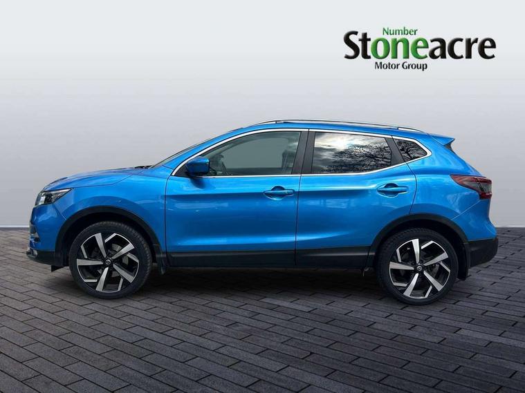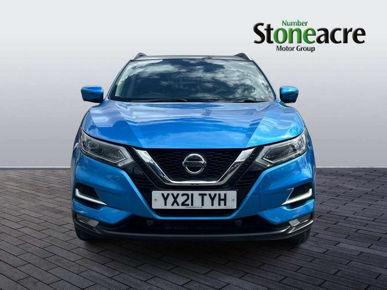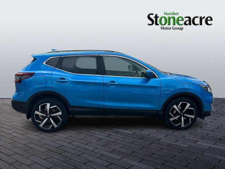360 degree Intelligent around view monitor, Advanced drive assist display 5'' TFT coloured screen, Apple car play/Android Auto, Bluetooth connectivity, Cruise control + speed limiter, Electric speed sensitive power steering, Front parking sensors, Idle stop/start system, Intelligent park assist, Lane departure warning system, Nissan connect evo 7" touchscreen navigation and entertainment system, Normal or sport selectable steering, Outside temperature sensor, Premium Tomtom connected services, Push button starter, Rear parking sensors, Service interval indicator, Smartphone integration, Traffic sign recognition, Trip computer, Voice control system, Nissan chassis control (intelligent ride control, intelligent trace control), 6 speakers, AM/FM radio, CD audio system, Aux-in socket, DAB Digital radio, Steering wheel mounted audio controls, USB port, Anti dazzle rear view mirror, Auto wipers, Body colour bumpers, Body coloured door handles, Body coloured door mirrors, Chrome window surround, Daytime running lights dip function when turn signal applied, Electric adjustable heated door mirrors with memory, Electric folding door mirrors, Electric front and rear windows with one touch illuminated window controls, Front fog lights, High beam assist, Intelligent auto headlights, LED indicators in door mirrors, Matt silver roof rails, Privacy glass, Rear roof spoiler, Rear wiper with reverse link, Shark fin antenna, Silver rear styling plate, Underbody vortex generators, 2 X front 12v power sockets, 3 height adjustable rear headrests, 60/40 split folding rear seat, Ambient interior lighting, Ambient lighting around centre console, Boot lighting, Centre console storage box/armrest, Chrome interior door handles, Dual zone climate control, Electric 4-way lumbar support for drivers seat, Electrically adjustable driver seat with memory, Electrically adjustable passenger seat, Front and rear door pockets with bottle holders, Front and rear seat belt pre-tensioners with load limiters, Height adjustable front headrests, Individual rear seat reading lights, ISOFIX restraints on outer rear seats x2, Leather D shaped steering wheel, Leather gear lever, Leather knee pad, Luggage board system, Luxury floor mats, Manual height adjustable passenger seat, Manual lumbar support on passenger seat, Monoform front sport seats with plastic backboard, Nappa leather upholstery with 3D quilted, Parcel shelf stow function under luggage board, Pollen filter, Rear armrest with 2 cupholders, Synthetic leather wrapped door handle with contrasting stitching, Tilt/telescopic adjustable steering wheel, Glass roof pack - Qashqai, Heat package - Qashqai, LED pack - Qashqai, 6 airbags - Driver, front passenger, curtain and side airbags, ABS, ESP, EBD and brake assist, Auto hold function, Child locks on rear doors, Electronic parking brake, Front and rear seat belt warning, Height adjustable front seatbelts, Hill start assist, Intelligent emergency braking with pedestrian recognition, Manual passenger airbag deactivation function, Three 3 point rear seatbelts, Tyre pressure monitoring system, Anti-theft immobiliser, Intelligent Key, Remote central locking, Thatcham Cat.1 alarm, Carbon graphite dash trim, 19" Alloy wheels,