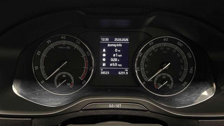 Driver alert system, Driver fatigue sensor, Driver profile selection, Electro-mechanical PAS, Outside temperature gauge, Service interval indicator, Start/stop system with regenerative braking, DAB radio with Bluetooth, SD card slot, USB connection, Acoustic glass, Aero front windscreen wipers with intermittent function, Automatic headlight control system, Black electric window control buttons, Body colour door mirrors and handles, Body coloured bumpers, Electric front and rear windows with child proof lock, Electrically adjustable heated folding and auto dimming door mirrors, Heated rear windscreen, LED rear lights with high functionality, Light assistant (coming/leaving home/tunnel light), Privacy glass, Safety reflectors on front doors, Third brake light, 1.5 litre bottle holders in driver and front passenger door panels, 12V socket in boot, 12v socket in front centre armrest with storage compartment and rear air vents, 2 Folding hooks and nets in boot, 2 Front readings lights for driver and passenger, 3 rear height adjustable headrests, 4 foldable roof handles with rear coat hooks, 4 lashing points on luggage floor, Backrest release, Cargo elements in boot, Chrome inner door handles, Driver and passenger seats height adjust, Dual zone climate control, Folding tables on the front seat backrests, Front head restraints, Front seat and rear pockets, Height adjustable front three point seats belts with tensioners, Height/reach adjust steering wheel, Ice scraper, Illuminated and cooled glovebox, Illuminated luggage compartment, Isofix child seat preparation outer rear, Manual lumbar support for front seats, Net programme in boot, Pen holder, Pollen filter, Rear boot cover, Rear reading lights, Rear seats fixed folding and divided 60:40, Safety vest holder, Storage box in upper central dashboard closed, Sunvisors with illuminated vanity mirrors, Umbrella under passenger seat, Airbags - Front side, head, knee and curtain, Automatic door unlocking in case of crash, Automatic fuel cut off in case of crash, Driver airbag, Electronic parking brake with auto hold function, Emergency rear braking signal, ESC including ABS, MSR, ASR, EDS, HBA, DSR, RBS, MKB and traction control, Front assist radar scanning of the space in front of the car with automatic braking, Hill hold control, Passenger airbag with switch-off function, Pedestrian monitor, Seatbelt reminder signalisation and pretensioner for all seats, Three point seatbelts rear, Two tone horn, Tyre pressure display, Tyre pressure monitor, Alarm with interior monitoring, back up horn and tilt sensor with safe function, Electronic engine immobiliser, Remote central locking with 2 remote folding keys, Chrome framed air vents, Storage on wheel cover,