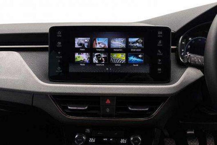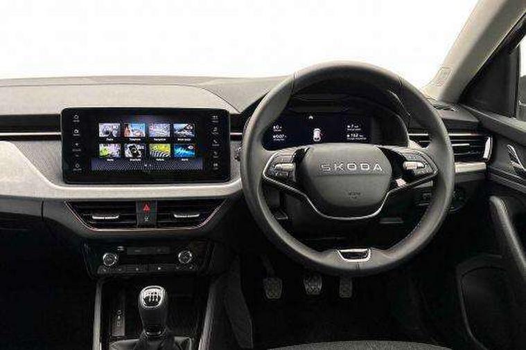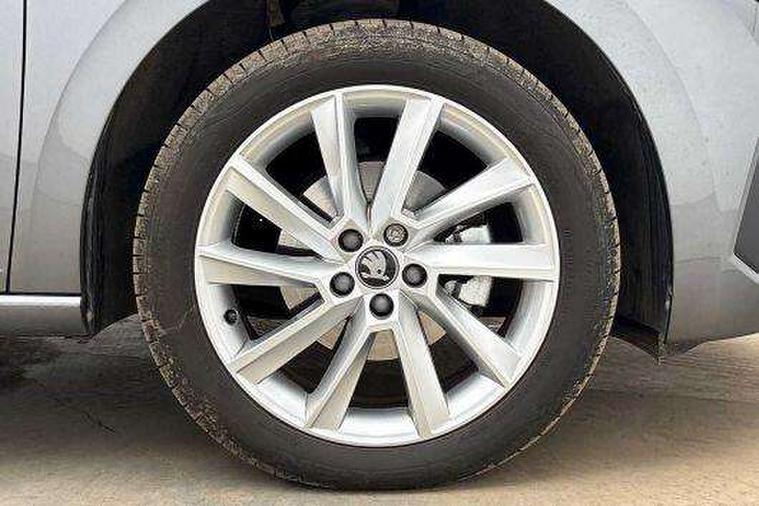 Advanced driver attention and drowsiness monitor, Bluetooth, e-Call (emergency call), Front assist system, PAS, Rear parking sensors, Rear view camera, Speed limiter, Tailgate, Traffic sign recognition, Virtual Cockpit - 10.25" digital display, Voice control system, Wireless smartlink, 4 USB C ports, 8 Speakers, 9.2" Skoda navigation display, DAB radio, Auto dimming rear view mirror, Automatic headlamp activation with Coming home and Leaving home feature, Automatic high/low beam, Automatic intermittent wipers, Body colour bumpers, Body colour door mirrors and handles, Chrome moulding around grille, Chrome window frames, Front and rear electric windows, Heated rear window, LED 3rd brake light, LED brake lights, LED daytime running lights, LED front turning lights, LED high beam, LED low beam, Light sensors, Privacy glass, Rear LED fog light, Rear side wing doors, Rear wiper, Tinted windows, Unique dark chrome design logo on alloy wheels, 12V socket in luggage compartment, 3 seat bench in 2nd row, Ambient lighting in white/red, Black / Copper armrest stitching, Cargo elements, Chrome inner door handles, Copper hotstamping, Door inserts in accent black, Driver and passenger sun visors with vanity mirror, Dual zone climate control, Front and rear roof lights, Front centre armrest, Front head restraints, Glasses storage in roof liner, Height adjustable driver seat, Height adjustable passenger seat, Ice scraper, Illuminated glove compartment, Inner circulation control with pollen filter, ISOFIX for front passenger seat, Isofix preparation for back seats, Leather gearknob and handbrake lever, Lodge cloth upholstery, Luggage net under rear parcel shelf, Manual lumbar support for front seats, Net package and top tether hooks in boot space, Pearl grey ceiling, Pocket on the back of both front seats, incl. mobile phone pockets, Rear centre armrest, Single front passenger seat, Skoda lettering on steering wheel, Textile floor mats, Third rear headrest, Ticket holder, Top tether for front passenger seat, Umbrella in driver's door, Convenience pack without rear camera - Scala, 3x3 point rear seatbelts, ABS, Child locks, Curtain airbags and front side airbags, Disc brakes, Driver and front passenger airbags, ESP, Hill hold control, Manual leather parking brake, One tone horn, Passenger airbag switch off function, Seatbelt reminder for driver and front passenger, Tyre pressure monitoring system, Anti theft alarm system with interior monitoring, backup horn and towing protection, Anti-theft wheel bolts, Remote central locking with 2 remote folding keys, SAFE function for remote central locking, Decorative inserts,