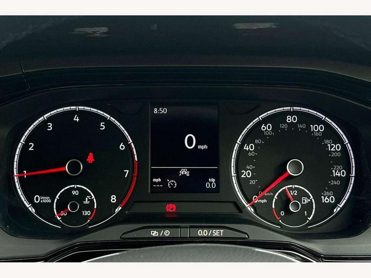 Cruise control + speed limiter, Digital clock, Driver alert system, Emergency call service, Multifunction computer plus, Power assisted speed sensitive steering, Speedo and rev counter, electronic odometer, trip, service interval display and fuel gauge, Start/stop system, Volkswagen connect, Warning buzzer and light for front seatbelts unfastened, Wireless app connect, Battery regeneration during braking, Galvanished body, Diversity antenna for FM reception, Front and rear 6 speakers, Black grille with chrome surround, Black radiator grille with chrome louvres, Body colour bumpers, Body colour door handles, Body colour rear spoiler, Body coloured side sills, Electric front windows, Electrically adjustable and heated door mirrors with reverse activated kerb view adjustment on passenger's side, Front windscreen washers and wipers with 4 speed intermittent delay, Heated rear window with auto timer, High level 3rd brake light, LED daytime running lights, LED rear number plate lights, Rear electric windows, Rear windscreen washer and wiper with interval delay, reverse activated, 2 bag hooks in luggage compartment, 2 front and 2 rear reading lights, 2 front cupholders and 12 V socket with cover, 3 rear head restraints, 4 grab handles, 60/40 split folding rear seat, Centre console storage with open storage compartment, Chrome interior door handles, Driver and front passenger seat height adjustment, Driver and front passenger sunvisors with illuminated vanity mirrors, Dust/pollen filter, Folding rear seat backrest, Front head restraints, Front seat backrest storage pockets, Gear lever gaiter in black trim surround, Glovebox, Handbrake grip button in chrome effect, Height/reach adjustable steering column, Instrument lighting, adjustable panel illumination, Interior light with delay, Isofix Preparation 2 Rear child seats, Leather gear knob and handbrake grip, Leather multifunction steering wheel, Luggage compartment cover, removable, Luggage compartment lighting, Luggage compartment with variable load floor, Storage compartment in front doors, Storage compartment in rear doors, Storage compartment under front seats, Sunglasses holder, 3 point height adj front seatbelts + pretensioners, 3x3 point rear seatbelts, ABS, Automatic post collision braking, Driver/front passenger airbag, Drivers and front passengers safety optimised head restraints, ESP with EDL + ASR, Front and rear passenger curtain airbags, Front disc brakes and rear drum brakes, Front passenger airbag deactivation, Front seat side impact airbags, Hill hold control, Hydraulic Brake Assist (HBA), Single tone horn, Tyre pressure monitoring system, Alarm with interior protection and deactivation via infotainment system, Electronic engine immobiliser, Remote central locking with 2 remote folding keys, Air vents in High gloss black, Limestone grey decorative inserts,