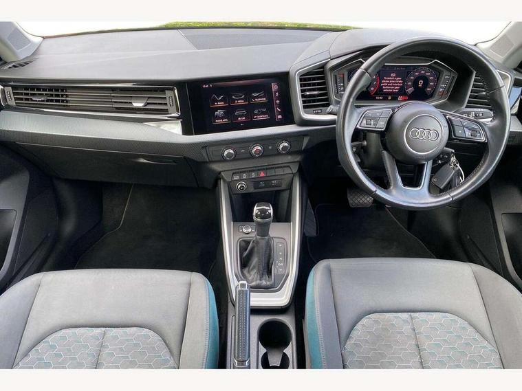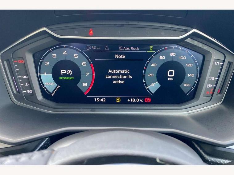 10.25" Digital instrument cluster display screen, Audi connect safety emergency and service including E-call, Audi drive select, Audi smartphone interface, Automatic start/stop system, Bluetooth interface, Driver's information system, Electromechanical power steering, Lane departure warning system, Service interval indicator, Speed limiter, Voice control system, Washer fluid level indicator, Dynamic suspension, 1 x SDXC card reader, 1 x USB type C and 1 USB type A charging points, Audi music interface, Bluetooth audio streaming, DAB Digital radio, MMI radio plus with 8.8" colour MMI display screen and MMI touch, Adaptive brake lights, Auto dimming rear view mirror, Body coloured bumpers, Body coloured door mirrors, Electric front and rear windows, Front side air inlets in grained matt black and C frame in titanium black, Heat insulating glass windscreen and side windows, Heated rear windscreen, LED headlights with LED rear lights + dynamic rear indicators, Radiator grille in matt titanium black, Radiator protective grille frame in matt aluminium silver, Rain and light sensors, Rear fog lights, Rear wiper, Side front spoiler lips in grained matt black, Titanium black matt diffuser, 12V socket in centre console with two cup holders, 3 rear seats, Door sills trims with aluminium inlays, Driver and passenger seat with manual height adjust with forward and backwards adjustment, Front head restraints, Front/rear floor mats, Height and reach adjustable steering wheel, Illuminated glovebox, ISOFIX child seat mounting in front passenger and rear outer seats, Leather gear knob with aluminium trim, Leatherette handbrake grip, Luggage compartment light with front and rear reading lights, Lumbar adjustment for front seats, Novum cloth upholstery with front sport seats, Rear head restraints, Split folding rear seats, Titanium grey cloth headlining, 3x3 point rear seatbelts, Audi pre-sense front with pedestrain and cyclist recognition, Brake assist function, Driver and front passenger airbag with front side and head airbags, Electronic Stability Control including ABS, EBD, ASR and EDL, Front and rear seatbelt reminder, Front passenger airbag deactivation switch, Hill hold assist, Seatbelt height adjustment for front seats, Seatbelt monitoring, Tyre pressure warning light, Warning triangle and first aid kit, Anti theft alarm, Anti theft wheel bolts and loose wheel warning, Immobiliser, Remote central locking with 2 remote folding keys, Aluminium trim for control switches, air vents and digital instrument cluster, Silver grey accent areas including air vents, door handle recesses and centre console in diamond paint finish, Slate grey inlays polygon structure in fine paint finish,