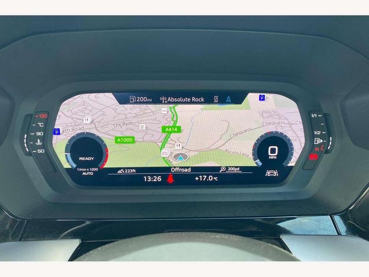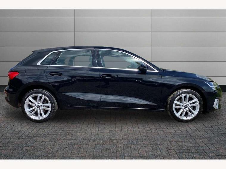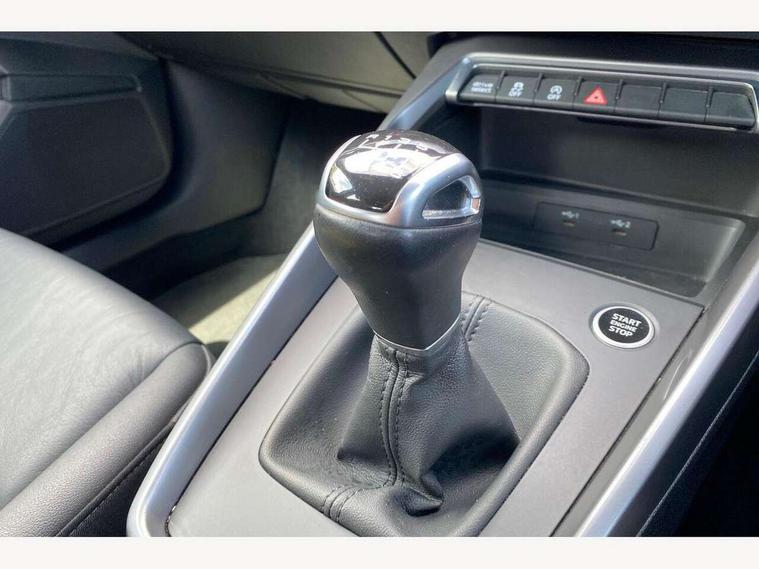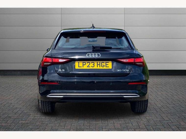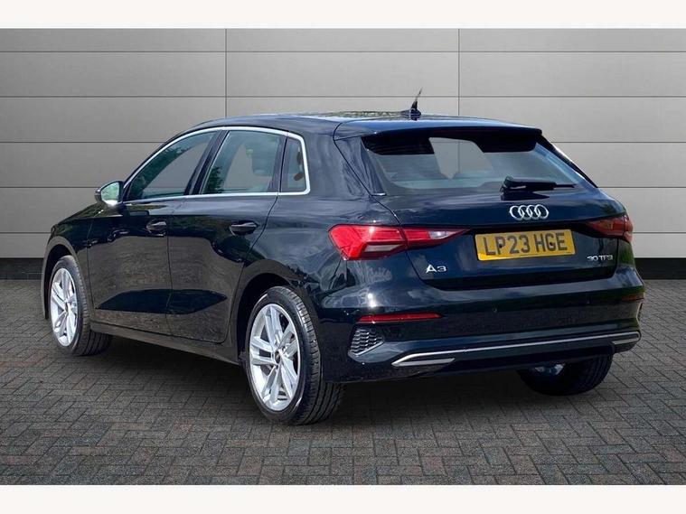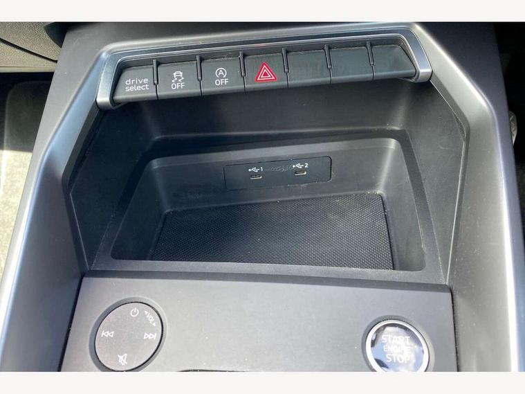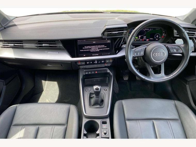 Audi drive select (Auto, Comfort, Dynamic and Individual), Audi smartphone interface, Audi Virtual Cockpit - 10.25" digital and colour instrument cluster, Automatic start/stop system with recuperation, Bluetooth interface, Camera based traffic sign recognition, Collision avoidance assistant, Cruise control, e-Call (emergency call), Electromechanical power speed sensitive steering, Lane departure warning system, MMI Navigation Plus with high resolution 10.1" colour touch screen display, Rear parking sensors, Service indicator, Trip computer, Voice control system with natural language interaction, Standard suspension, 2xUSB-C connection with data and charging functions, 6 passive loudspeakers, DAB Digital radio, 3rd brake light, Acoustic glass windscreen, Aluminium window trim, Auto dimming frameless rear view mirror, Body colour exterior mirrors, Body colour roof spoiler, Electrically adjustable/heated/folding/auto dimming door mirrors with integrated LED indications + kerb view function for passenger side, Front electric windows, LED daytime running lights, LED headlights and halogen rear lights, Light and rain sensors, Rear electric windows, Rear side wing doors, Rear window, rear door windows and rear side windows in clear glass, Rear wiper, 12V socket and storage compartment in front centre console, 3 seat bench in 2nd row, 3 spoke leather multifunction steering wheel, 4 way electrically adjustable lumbar support for driver and front passenger, 60/40 split folding rear seat bench, Dual zone electronic climate control, Front and rear headrests, Front centre armrest, Front door sill trims with aluminium inlay, Front/rear floor mats, Height and reach adjustable steering wheel, Interior lighting - Front and rear roof module including reading lights, glove compartment light and right hand side, Interior lighting - glove compartment light and right hand side, Luggage compartment floor covering, Manual boot compartment lid, Manually adjustable front seats, Routine cloth upholstery with front sports seats, Seat side bolsters, Single front passenger seat, Steel grey cloth headlining, Aluminium interior elements pack - A3 Sportback, LED interior lighting pack - A3 Sportback, Sport styling pack - A3 Sportback, 3x3 point rear seat belts, Driver and front passenger airbag with passenger airbag deactivation, Electronic Stabilisation Control (ESC) including ABS, ASR and EDL, First aid kit with warning triangle and 2 safety vests, Front side airbags with head airbags and interaction airbag, Pre-sense front with pedestrian and cyclist detection, Seatbelt monitoring, Tyre pressure loss indicator, Anti theft alarm, Anti-theft wheel bolts, Electronically operated child lock, Immobiliser, Remote control central locking, Inlays with silk effect paint in platinum grey,