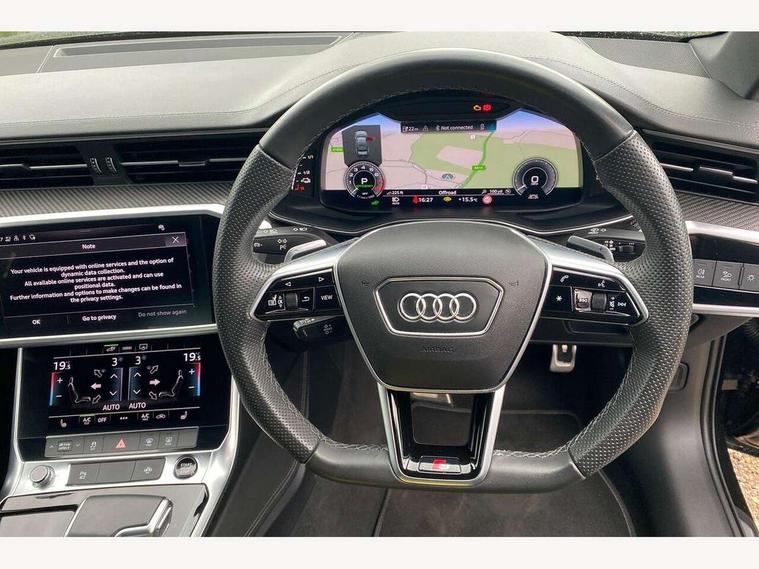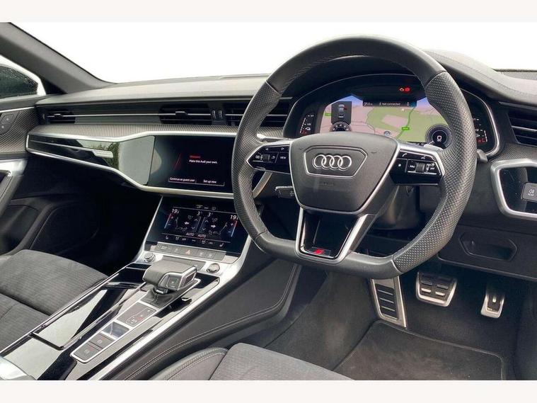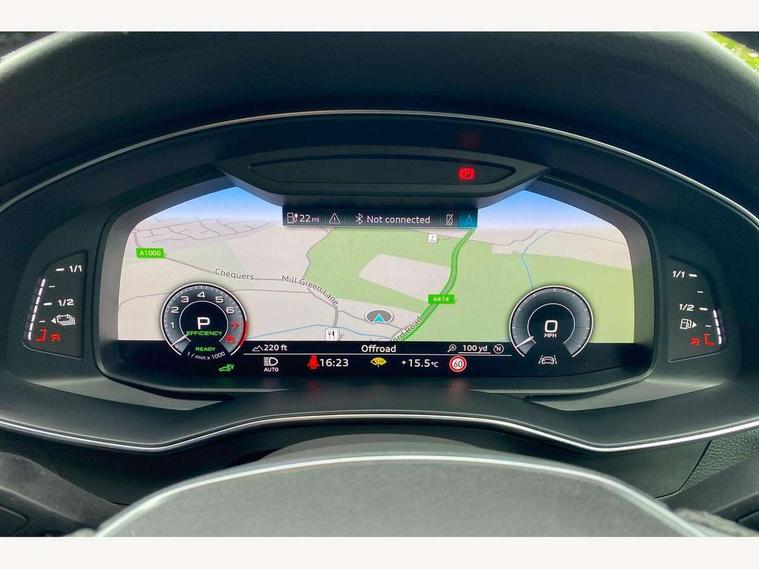 Audi connect safety and service (e-call), Audi connect with Amazon Alexa Integration, Audi drive select, Audi parking system plus - acoustic and visual park assist system for front and rear, Audi virtual cockpit, Automatic start/stop system with coasting functionality, Bluetooth interface, Camera based traffic sign recognition, Electric boot lid release, Lane departure warning system, MMI navigation plus with 10.1" and 8.6" touch screens, Progressive steering, Rear view camera, Service interval indicator, Smartphone interface includes wireless Apple carplay/Android Auto, Voice control system, 3 pin 10 amp domestic charging cable, 52 litre fuel tank, 7.4 kW onboard charger, Compact charging system, Hybrid propulsion system, Industrial connector CEE 32A, 230V, long and straight for the e-tron charging system, Mode 3 charging cable for public charging (AC), Sports suspension, Type 2 socket for AC charging, Audi front music interface, Audi sound system, Auxiliary input socket, DAB Digital radio, USB connection, Audi beam, Electric front/rear windows, Electrically adjustable heated and folding + automatically dimming exterior mirrors with memory function, Frameless auto dimming interior rear view mirror, Front intermittent wipers, Heat insulating darkened glass in side and rear windows, Heat insulating glass in windshield, LED rear lights with dynamic indicators, LED signature front daytime running light, LED third brake light, Matrix LED headlights, Matt black rear diffuser with diffuser strip and tailpipes in chrome, Matt black side air intake grille with inlay in matt aluminium, Omission of output/technology badging, Privacy glass, Radiator grille in anthracite black matt, single frame in chrome and horizontal struts in matt aluminium silver, Rain and light sensors, Rear boot, Rear side wing doors, 4 zone deluxe automatic climate control, 40/20/40 split folding 3 rear seat bench in 3 parts with rear centre armrest, Audi phone box light, Black cloth headlining, Electrically adjustable front seats including seat height, fore/aft position, backrest angle and 4-way lumbar with memory for driver's seat, Front and rear floor mats, Front centre armrest, Front head restraints, Heated front seats, Height/reach adjust steering wheel, Illuminated door sill trims with S logo, Illuminated sun visors with vanity mirrors, Leather gear knob, Rear headrests, Single front passenger seat, Stainless steel pedals and foot rest, Tool kit and car jack, Black styling package plus - A6 Black edition, LED Interior Ambient Lighting Pack - A6, Non smoking pack - A6, S line exterior style pack - A6, 3 point seatbelts on all seats, Airbags - Front side, front and rear including head, Audi pre-sense front, EBD - Electronic brakeforce distribution, Electromechanical parking brake, Electronic Stability Control (ESC) including ABS, ASR and EDL, Extended pedestrian protection measures, ISOFIX child seat mounting for front passenger seat and ISOFIX child seat mounting with Top Tether for outer rear seats, Manual child proof rear door locks, Seatbelt monitoring, Tyre pressure warning light, Warning triangle and first aid kit, Anti theft alarm with tow away protection, Anti-theft wheel bolts and wheel loosening detection, Immobiliser, Keyless Go, Remote central locking, Carbon twill inlays, Tyre repair kit,