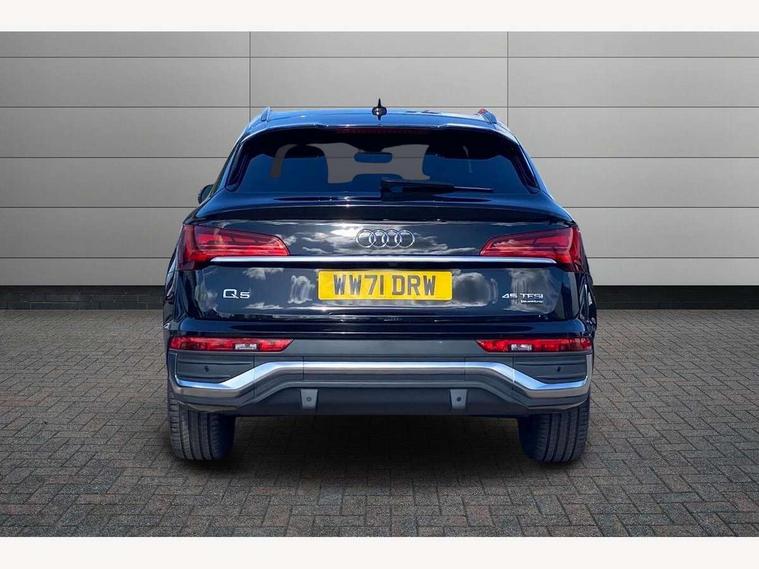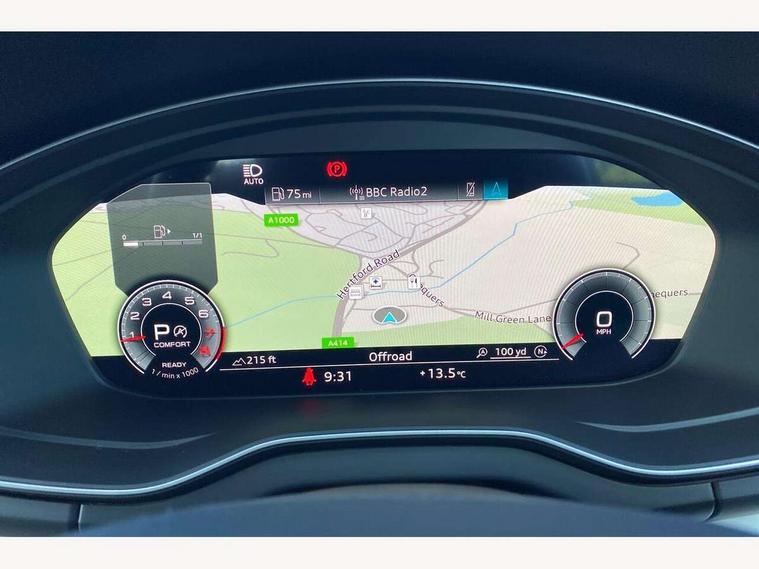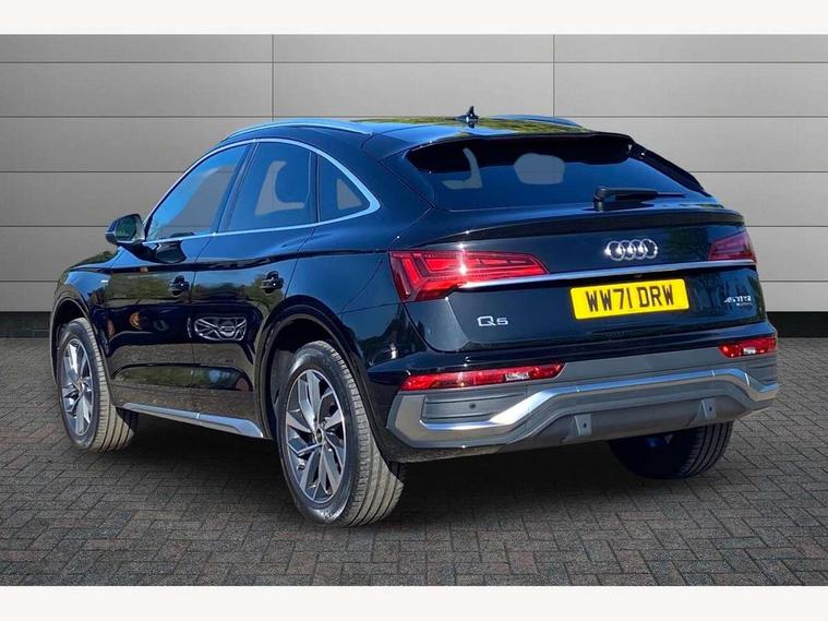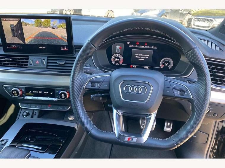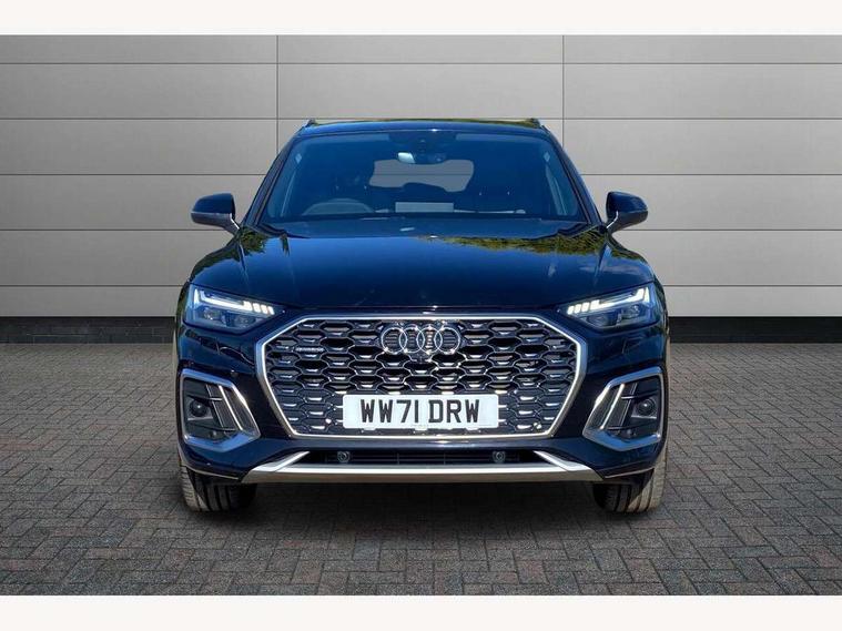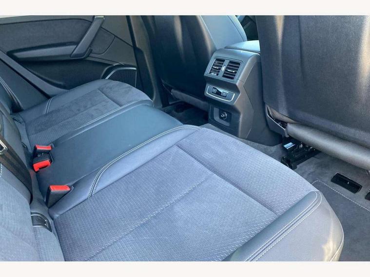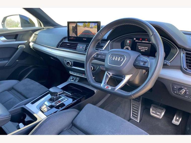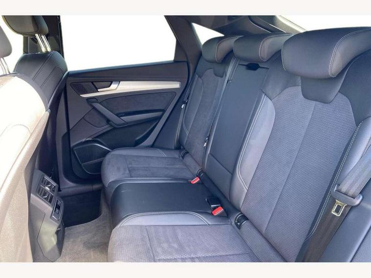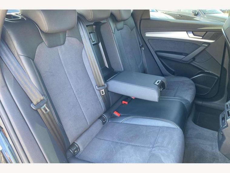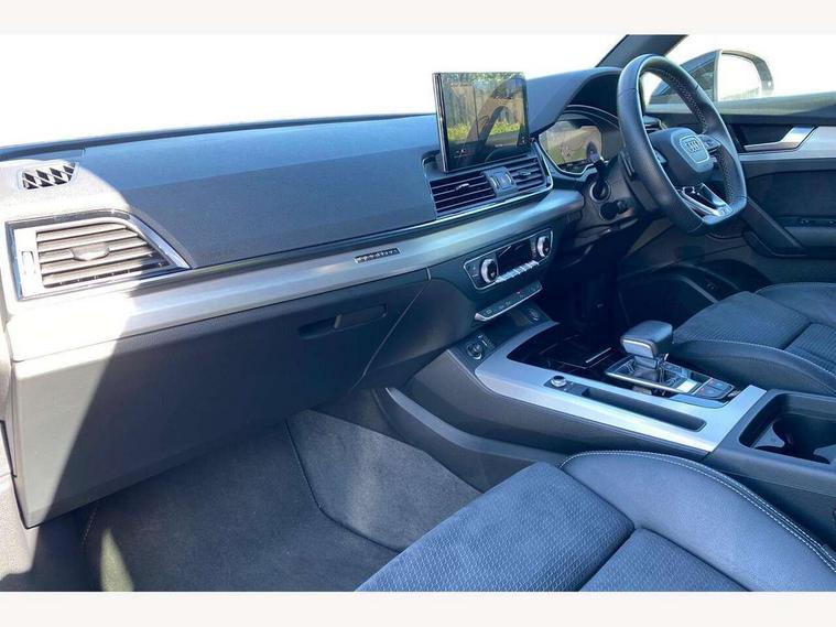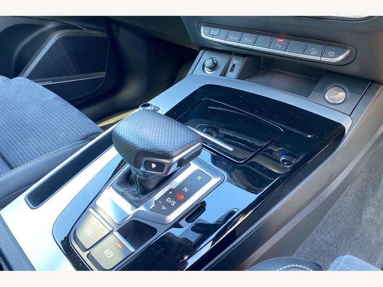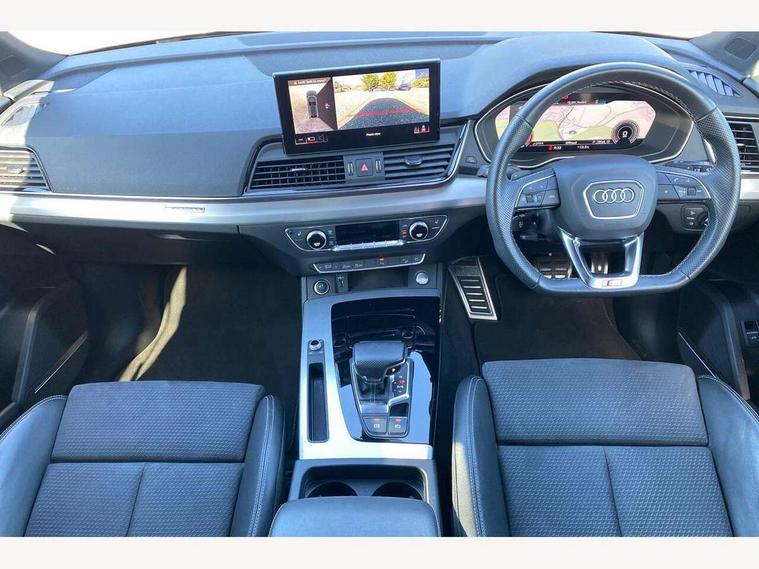 Audi connect safety and service (e-call), Audi connect with Amazon Alexa Integration, Audi drive select, Audi virtual cockpit plus with 12.3" screen and three different layout designs, Audi wireless smartphone interface, Automatic start-stop system with coasting functionality and efficiency programme, Bluetooth interface, Electro - mechanical power assisted steering, MMI navigation plus with 10.1" touch screen, Power tailgate, Reversing camera, Service interval indicator, Voice control system with Audi hotword activation "Hey Audi", Quattro on demand, S line sports suspension, DAB Digital radio, Acoustic windscreen, Aluminium roof rails, Audi matrix LED headlights with dynamic front and rear indicators, Auto dimming rear view mirror, Automatic headlights and windscreen wipers, Body colour door mirrors, Body colour rear diffuser with matt aluminium silver surrounds, Body colour underbody protection, Chrome plated exhaust trims, Door sills in Selenite silver, Electric adjustable/heated/folding door mirrors, Front air inlet surrounds in aluminium, Front and rear electric windows, Front radiator grille in honeycomb design, Headlight washers, Lower bumpers painted in contrast Manhattan grey, Rear chrome trim strip below lights, Rear privacy glass and rear side windows, Rear spoiler, Rear wiper, Roof bars, S Line badges on the front wings, S Line front and rear bumpers, S Line side skirts, 2 x USB charging port with aux input socket, 3 rear headrests, 40:20:40 split folding rear seat with rear centre armrest, Black cloth headlining, Comfort front centre armrest, Contrast stitching on seats, steering wheel and gear lever gaiter, Deluxe 3 zone electronic climate control, Front head restraints, Front/rear floor mats, Gear lever in black leather, Heated front seats, Height/reach adjustable steering column, Illuminated door sill trims with S logo, ISOFIX child seat mounting and top tether, Manual seat adjustment with 4-way electric lumbar support, Removable luggage compartment floor, Stainless steel pedals, Sunvisors with vanity mirrors, Trunk roller cover, High gloss pack - Q5, LED interior light pack - Q5, 3 point seatbelts on all seats, 6 airbags - Driver, front passenger, curtain and side airbags, Electrically operated child locks on rear doors, Electromechanical parking brake, Electronic stabilisation control including ABS, ASR and EDL, Front passenger airbag deactivation, Hill descent control, Hill hold assist, Multi collision brake assist, Pop-up bonnet for pedestrian protection, Pre sense city, Seat belt force limiter, Seatbelt monitoring, Tyre pressure warning, Warning triangle and first aid kit, Anti theft alarm, Anti-theft wheel bolts, Keyless Go access/ignition system, Matt brushed aluminium inlays,