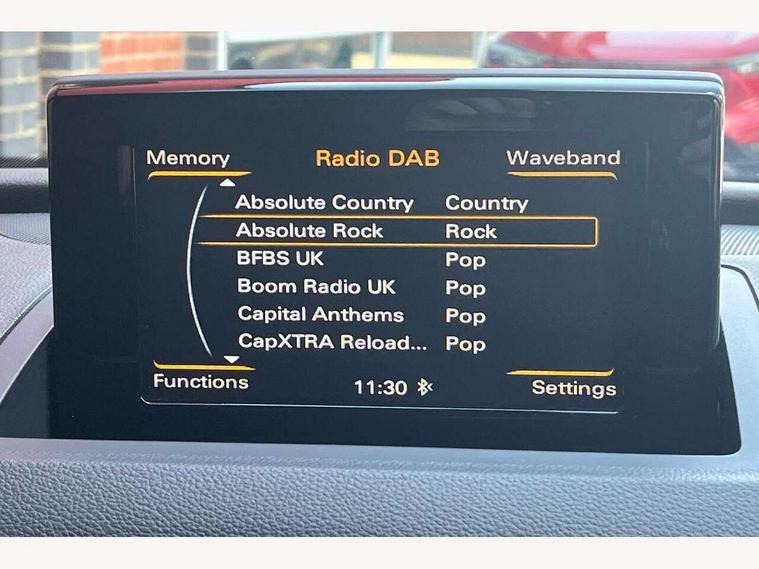 6.5" colour display screen, Audi drive select, Cruise control, Low washer fluid indicator, MMI - Multi Media Interface control system, On board computer, PAS, Remote electric boot opening/closing, Service interval indicator, Voice control system, Diesel particulate filter, Audi music interface, DAB digital radio module, Acoustic windscreen, Aluminium window surround, Auto dimming rear view mirror, Body colour door mirrors, Body coloured bumpers, Chrome exhaust tailpipe, Chrome fog light surround, Chrome grille, Coming home function, Door mirror integrated indicators, Front and rear electric windows, Heated windscreen washer jets, LED daytime running lights, LED headlights with headlight washers, LED rear lights, Light and rain sensor for auto activation of lights and windscreen wipers, Loading sill protector in stainless steel, Rear wiper, S Line body styling, Sunband for windscreen, Towbar preparation, 12V socket in rear centre console, Aluminium door sill trims, Black cloth headlining, Dual zone climate control, Electric front lumbar adjustment, Front and rear headrests, Front and rear velour floor mats, Front centre armrest with storage compartment and angle adjustment, Front sports seats, Height/reach adjust steering wheel, ISOFIX on front passenger and rear outer seats, Jack and tool kit, Perforated leather gearknob, Retractable luggage cover, Split fold rear seat, Under floor storage in luggage area, 3x3 point rear seatbelts, ABS+Electronic Brake force Distribution, Curtain airbags, Driver and passenger airbags, Driver and passenger side airbags, EDL + ASR, Electrically operated child locks on rear doors, Electromechanical parking brake, ESP, First aid kit, Front passenger airbag deactivation, Seatbelt warning light, Tyre pressure monitoring system, Warning triangle, Locking wheel bolts, Remote central locking, Thatcham category 1 alarm + immobiliser, Matt brushed aluminium fascia and door trim inlays,