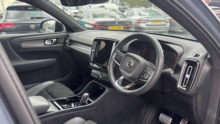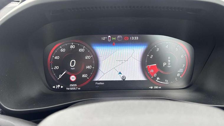 12.3" Active TFT crystal driver's instrument display, 9" centre console portrait touch screen, Adjustable steering wheel force, Bluetooth hands free telephone kit, Drive mode selector, Lane keep assist with driver alert control, Oncoming Lane Mitigation, Power operated tailgate, Sensus navigation with European mapping and traffic information, Speed limiter, Speed sensitive steering, Voice activated control for key functions, Volvo on call, Sports chassis, DAB Digital radio, Steering wheel mounted remote controls, Adaptive brake lights with high level LED brake lights, Auto dimming interior mirror, Automatic headlamp levelling, Dark tinted windows for rear door side windows and cargo compartment, Electric adjustable/heated/auto folding door mirrors, Front aluminium tread plates, Front and rear electric windows, High gloss black front and rear skid plate, High gloss black lower front bumper, High gloss black mesh front grille with high gloss black surround, High gloss black sensus surround deco, High gloss black window trim, Home safe and approach lighting, Integrated roof rails in high gloss black, LED Headlights + Active high beam incorporating daytime running lights, Rain sensor with automatic windscreen wiper activation, Rear side wing doors, Rear wiper, Roof antenna, Roof spoiler, Visible VIN plate, 12V socket in front tunnel console and cargo compartment, 2 zone electronic climate control and rear air vent, 3 seat bench in 2nd row, 60/40 versatile split folding rear seat, A-pillar parking ticket holder, Centre console cupholders and storage, Charcoal headlining, Front footwell illumination, Front headrests, Front reading light and theatre lighting, Front seat cushion extensions, Front tunnel net pocket and integrated waste bin, Glovebox bag hook, Height/reach adjustable steering column, High gloss centre tunnel deco, Illuminated glovebox, Illuminated luggage compartment, Illuminated vanity mirrors, Isofix attachments on rear seats, Leather gearknob, Load protection net, Multi directional lumbar support, Rear armrest / integral cup holders / storage tray, Rear coat hook, Single front passenger seat, Sports floor mats, Sports pedals, Sports tailored steering wheel, Underfloor cargo storage, Vanity mirror with ticket holder, 3x3 point rear seatbelts, City safety includes pedestrian, cyclist and large animal detection and front collision warning with full auto brake, Drivers knee airbag, Dual stage driver/passenger airbags, Electronic parking brake with auto hold, First aid kit, Front and outer rear seatbelt reminder and pretensioners, Front seats SIPS airbags, Hill descent control, Hill start assist, Inflatable curtain, Passenger airbag cut-off device, Road sign information display, Run off Road Mitigation, Run off Road Protection, SIPS (Side Impact Protection System), Slippery road and hazard light alert, Stability and Traction Control with Spin control, Engine Drag Control and Corner Traction Control, Tyre pressure monitoring system, Vehicle deceleration control with Anti-lock Brake System, Electronic Brake Distribution and Emergency Brake Assist, Warning triangle, WHIPS whiplash protection system - front, Anti-theft alarm including immobiliser/volume sensor + level sensor, Care key with user defined top speed, Key integrated remote control central locking + fuel flap with deadlocking system and auto open/close power windows, Locking wheel nuts, Private locking for tailgate, Cutting edge aluminium inlay, Lower dashboard, tunnel console and door panel in charcoal,