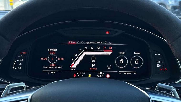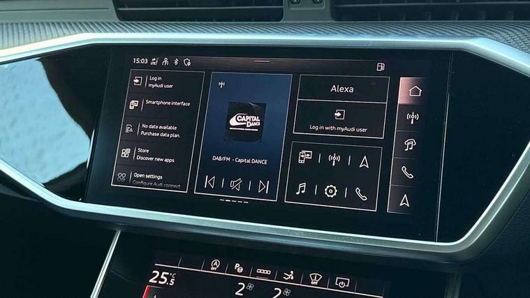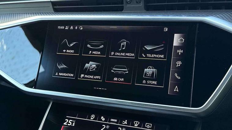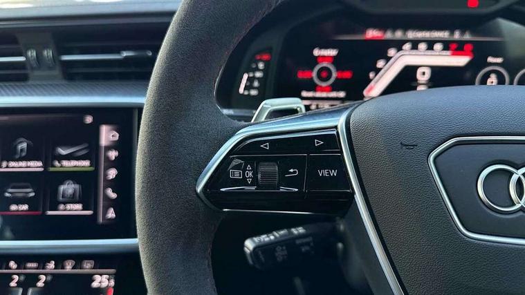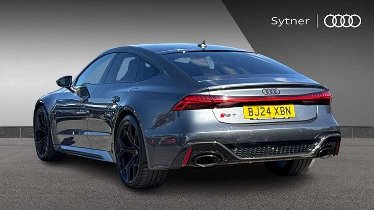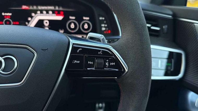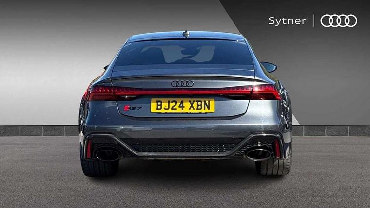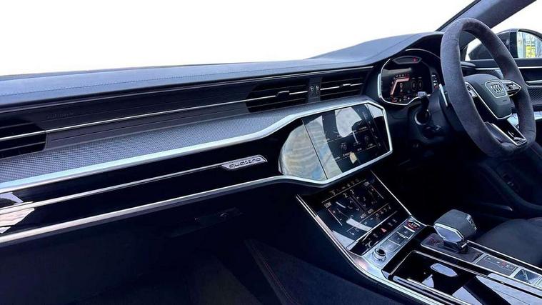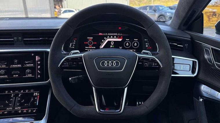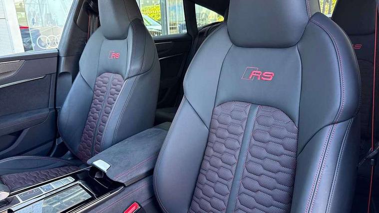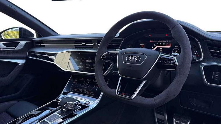Audi connect safety and service (e-call), Audi connect with Amazon Alexa Integration, Audi drive select with new RS modes, Audi smartphone interface including application store, Audi virtual cockpit plus with 12.3" screen and three different layout designs, Automatic start/stop system, Bluetooth interface, Dynamic all wheel steering, Head up Display, Lane departure warning system, MMI navigation with MMI touch + twin touch screens 10.1" and 8.6" with haptic and acoustic feedback, Night vision assistant, Operating buttons in black, glass look with haptic feedback including extended aluminium look, Power operated tailgate, Power-assisted door closing, Surround view camera system, Voice control system, 48V Mild hybrid technology, 73 litre fuel tank, Quattro sports differential, RS Sports suspension plus with dynamic ride control, Speed limiter 174mph, 2 USB-C ports with charging functionality in the rear, Audi music interface, Auxiliary input socket, Bang & Olufsen 3D Premium Sound System, DAB digital radio module, Black window trims, Frameless auto dimming interior rear view mirror, Front and rear electric windows, HD Matrix LED headlights with Audi laser light with dynamic light design and dynamic turn signal, Headlight washers, Illuminated door sill trims with RS lettering, LED 3rd brake light, LED daytime running lights, LED rear combination lamps with dynamic light design and dynamic turn signal, Panoramic glass sunroof, Power folding, adjustable, auto dimming, heated with memory function door mirrors + integrated LED side indicators, kerb view function passenger side, Privacy glass with rear/side windows and acoustic glazing side windows, Radiator grille in honeycomb structure, large front air inlets and rear diffuser in gloss black, Rain and light sensors, Rear boot spoiler (Electrically extendable depending on speed), Rear side wing doors, Rear window sunscreen, Rear wiper, RS front bumper with air inlets on both side, RS sport exhaust system, Towbar preparation, Variable front intermittent wipers, 3 bench rear seats in 2nd row, 4 zone deluxe automatic climate control, 4-way electric lumbar support, Audi phone box light, Electric adjustable steering column, Electrically adjustable front seats - driver seat with memory, Entry LED with RS Performance projection (Audi Beam) in front and rear, Front and rear head restraints, Front centre armrest, Front seat ventilation, Heated front and rear seats, ISOFIX and Top Tether child seat mounting for the outer rear seats, ISOFIX child seat mounting and Top Tether with front passenger airbag deactivation, Jack and tool kit, RS sports seat plus, Single front passenger seat, Stainless steel footrest and pedals, Air quality package - RS7, Ambient lighting pack plus - RS7, City assist package - RS7, Park assist pack with park assist plus - RS7, Storage pack - RS7, Tour package - RS7, 3 point seatbelts on all rear seats, ABS, Airbags - Front side, front and rear including head, ASR traction control, Audi pre-sense front, Direct tyre pressure monitoring system, EDL, Electromechanical parking brake, Electronic stability control, ESP, Extended pedestrian protection measures, High performance braking system, Hill hold assist, Manual child lock in rear doors, Rear side airbags, Warning triangle and first aid kit, Anti theft alarm with tow away protection, Keyless Go, Remote central locking, Performance tyres, Tyre mobility system,