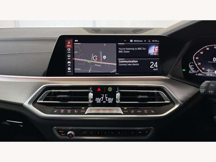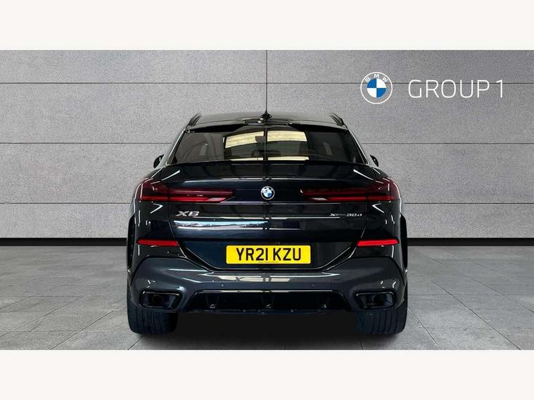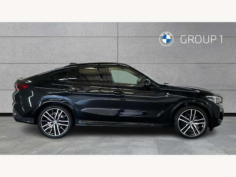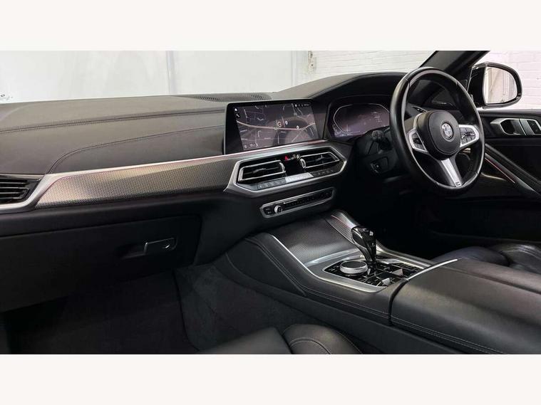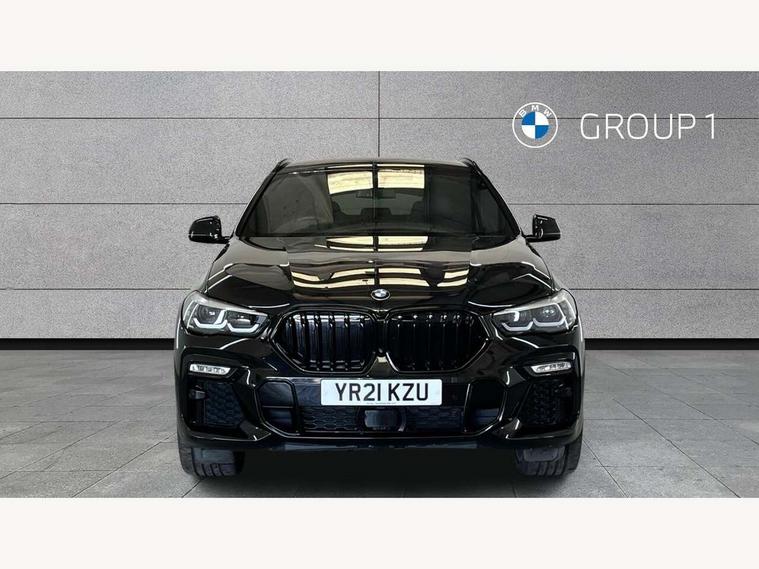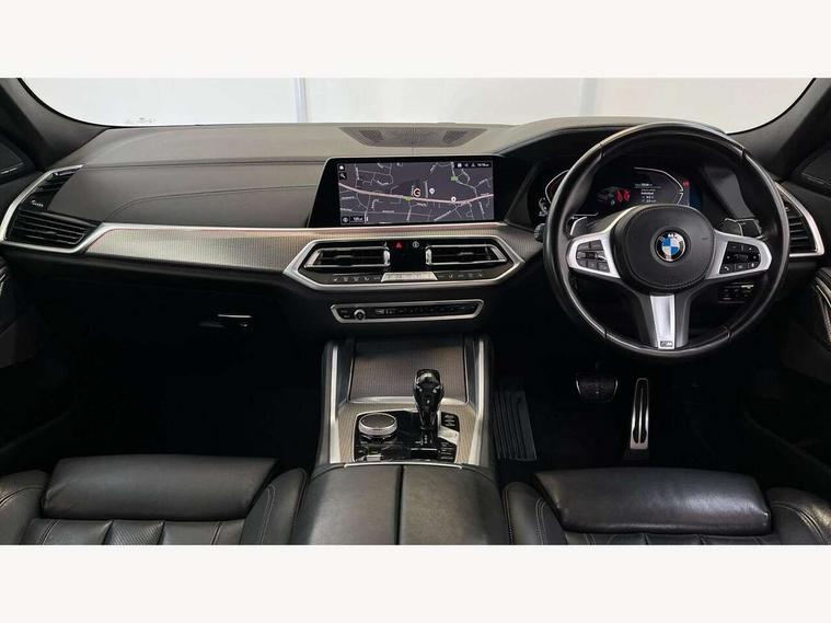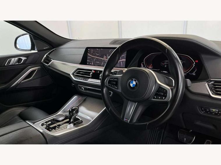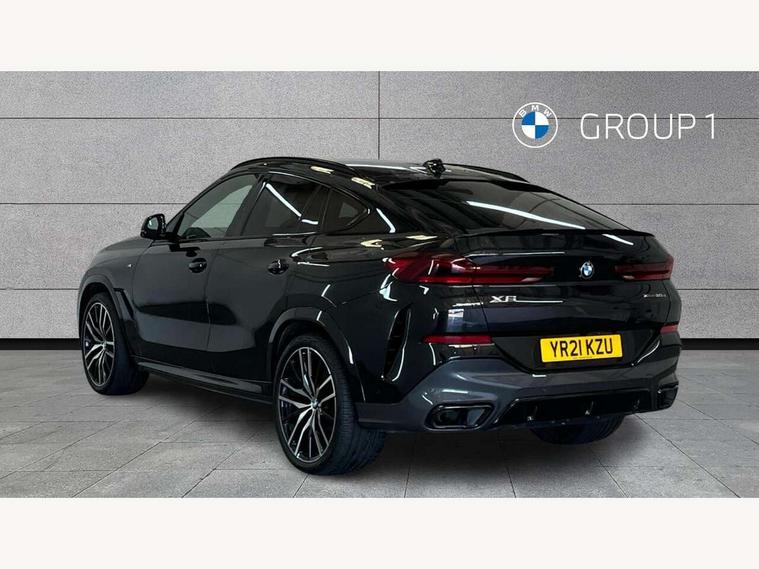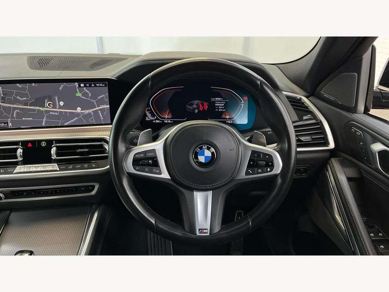 50GB hard disc drive (HDD) memory, Active guard plus, Attentiveness assist, Automatic tailgate two part with top hinged section open and manual bottom hinged section, BMW ConnectedDrive online services, BMW digital live cockpit professional - 12.3" digital instrument panel and 12.3" CID, with touch/voice command, BMW legal emergency call, BMW Teleservices, Brake force display, Brake pad wear indicator warning light, Cruise control with brake assist, Enhanced bluetooth hands free facility with Telephony wireless charging, Front/rear park distance control (PDC), iDrive touch controller with shortcut buttons, Lights on warning, Oil sensor for level and grade, On board computer inc. average speed, fuel consumption, liquid crystal Info display, journey computer, outside temperature display, personal profile, Service interval indicator, Speed limit info display, Speed limiting function, Wi-Fi hotspot, 48V Mild hybrid technology, Diesel particulate filter, Double wishbone front axle, Drive performance control with ECO PRO comfort + sport mode, Eight speed steptronic sport automatic transmission and gearshift paddles on the steering wheel, Safety battery terminal clamp, Variable vane geometry, DAB Tuner enables digital radio reception, Favourite buttons, Hi-Fi loudspeaker system, USB connection, USB type A 1.5A in cupholder, USB Type C 3A in centre armrest, Active Air Stream kidney grille with high-gloss chrome, Adaptive air flap control bar in high-gloss black, Automatically dimming rear view mirror, BMW individual exterior line aluminium satinated window frame and window guide rail in front door/pillar trim/door mirrors in high gloss black, BMW Individual high gloss shadow line, Body colour bumpers, Body colour door handles, Dynamic brake lights with LED technology, Exhaust tailpipes - single, left and right with Chrome finisher, Follow me home headlight function, Front and rear electric windows with open and close fingertip control, anti trap facility and comfort closing, Heated windscreen washer jets, High beam assistant, High gloss black outer and central air intakes on front bumper with pearlescent chrome finish, High gloss black Side elements, LED daytime running lights, LED fog lights, LED rear lights, M aerodynamic body styling, M designation on left and right front side panels, M Sport exhaust system, Rain sensor with automatic headlight activation and windscreen wiper control, Satin aluminium side window graphic, Third brake light in rear spoiler, Welcome light carpet, X6 on left tailgate, xDrive designation on right tailgate, 12V - Power sockets with 2x centre console and 1x luggage compartment, 40:20:40 split folding rear seats, Centre and rear interior light, Child seat ISOFIX attachment with rear outer seats includes top tether, Compartment in front of cupholder, Electrical steering column with adjustable height and length with activation and control on the steering column, Foldable rear centre armrest with 2 cupholders and storage compartment, Front and rear cupholders x 2, Front and rear door pockets, Front and rear door sill inlays with illuminated BMW M designation, Front and rear side armrest integrated into door trim, Front reading lights, Light inside glove compartment, Lockable glove compartment, Luggage compartment floor panel with integral storage tray, Luggage compartment lighting, M leather steering wheel, M specific key, M specific velour floor mats, Make-up mirror lights, Multifunction controls for leather steering wheel, Multifunctional hooks, Rear head restraints, Seat back with flap pocket, Storage tray and compartment with cover in centre console, Sunvisors with illuminated vanity mirrors, Toolkit located in luggage compartment, Ambient light interior pack - X6, Connected Package Professional - X6, Expanded exterior mirror pack with electric folding door mirror - X6, Non-smokers pack - X6, 3 rear seatbelts, Airbags - driver/front passenger, rear and side, first and second row seats head airbags, front passenger seat airbag deactivation + knee airbag, Anti-lock braking system (ABS), Automatic Stability Control (ASC), Brake drying, Brake energy regeneration, Brake fade compensation, Braking pre-tensioning, Cornering brake control (CBC), Crash sensor activating central locking release, hazard warning lights, fuel cut off, interior lighting + activation of safety battery terminal clamp, Deformation zones - front and rear with door reinforcements and bumpers up to 2.5 mph, DSC - Dynamic Stability Control, Dynamic brake control, Dynamic Traction Control - DTC, Electromechanical parking brake with automatic drive away release and auto hold function, Electronic brake force distribution, Front and rear brake discs with interior ventilation, Front and rear seatbelts with seatbelt stopper, seatbelt tensioner for front and outer rear seats and belt force limiter, Front head restraints with anti-whiplash, Hill start assistant, Integrated brake system, M Compound brake in high gloss blue, M Sport braking system, Mechanical child proof lock on rear doors, Passive protection for pedestrians, Seat occupancy detection for driver and passenger side, Side impact protection, Two tone horn, Tyre pressure monitoring system, Warning triangle and first aid kit, Closing system with central locking, Driver and front passenger door centre lock switch, Locking wheel bolts, Thatcham 1 alarm system with remote control and engine immobiliser, Start/stop toggle diamond shaped trim finisher in pearl chrome,