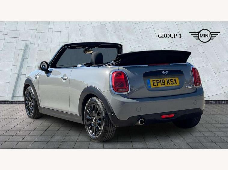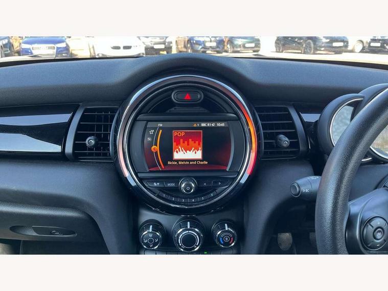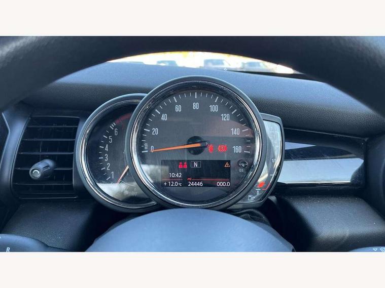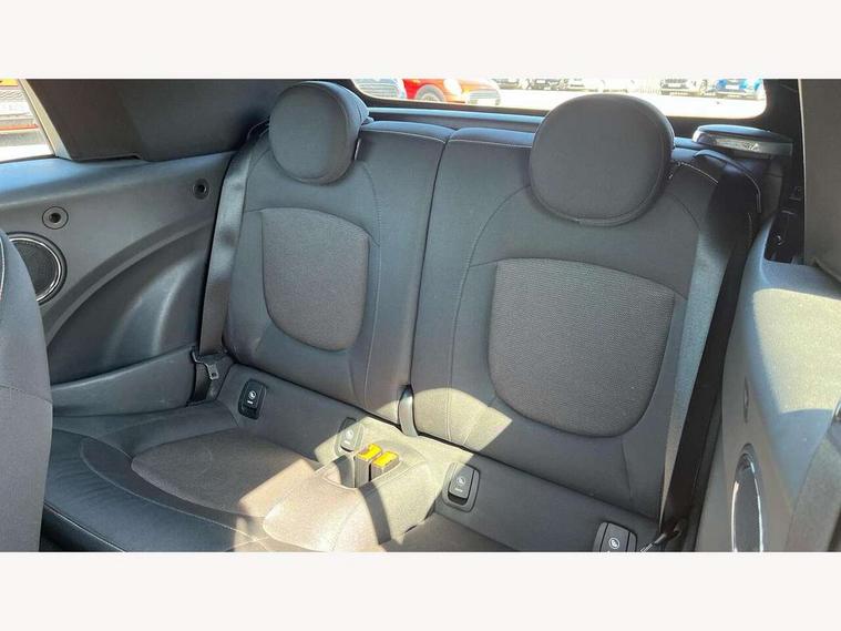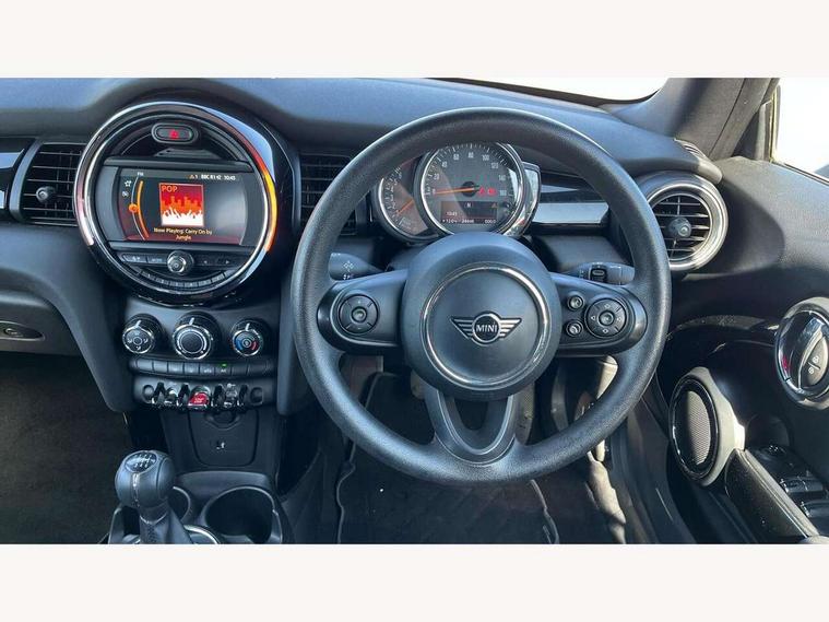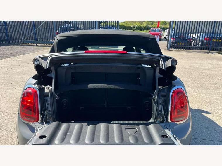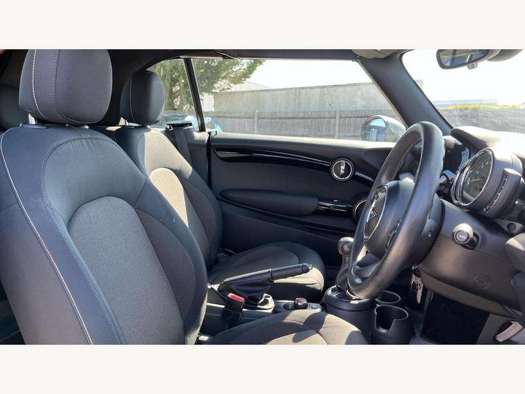 Automatic start/stop function with brake energy recuperation, Compatible mobile phone bluetooth with audio streaming, Electro-mechanical speed dependant steering assistance, Gear change indicator, Instrument cluster, Mini E-call, MINI TeleServices, On board computer, Rear park distance control, Service interval indicator, Double Vanos system, Fully variable valve control, High precision injection, 6.5" touchscreen with LED ring, FM tuner and DAB digital radio, Automatic headlight activation switch, Body colour fuel filler cap, Chrome border high gloss black slats radiator grille, Dynamic brake lights, Electric windows, Fully electric black softtop with integrated sunroof functionality, Heated rear window, Heated windscreen washer jets, LED headlight with closed ring and daytime driving lights, Left exhaust tailpipe with chrome finisher, Metal door sill strips with MINI imprint, Model logo Cooper on right of tailgate, Rain sensor window wipers, Rear fog lights, Rear LED lights with union jack design, Side scuttle panel with integrated indicator, Sun/heat protection glass, White indicator lenses, 12V Accessory socket in centre console, 4 lashing eyes in luggage compartment, 50/50 split folding rear seats, Chrome interior highlights, Colour line - Carbon black, Cupholders, Easy Load boot handles, Front and rear head restraints, Front and rear isofix with front passenger airbag deactivation, Glove compartment, Height and length steering column adjustment, Interior lighting with 12 basic colours selectable via toggle switch in roof, Leather gearshift lever and handbrake gaiters, LED reading lights, vanity mirror lights, front foot well light and spotlight on front seats, Manual air conditioning, Mechanical seat adjustment, driver seat height adjust, forward/back and front seats backrest, Mini logo projection on floor from drivers exterior mirror, Multifunction steering wheel, Storage compartments in doors, Sunvisors with vanity mirrors, 3 point seatbelts on all four seats, 6 Airbags - front, side and seat belt tensioners, Active rollover protection, Anti-lock braking system (ABS), DSC - Dynamic Stability Control, Front and rear disc brakes, Hill start assist, Single tone fanfare horn, Tyre pressure monitoring system, Alarm system with tilt sensor, monitoring doors, bonnet interior and tailgate, Electronic vehicle immobiliser, Keyless Go, Tool kit,