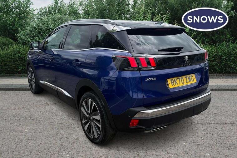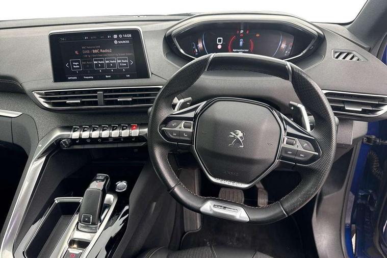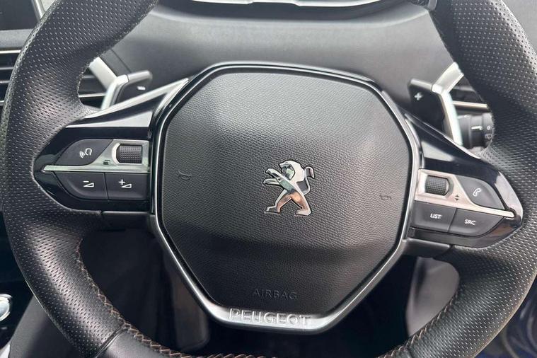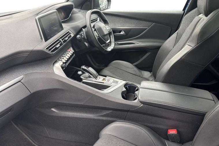 'Lights On' Reminder warning buzzer, 3D connected navigation + voice control + Peugeot connect SOS and assistance, Bluetooth telephone facility, Digital clock, Electric impulse automatic gearbox control, Exterior temperature indicator with ice warning, Front and rear parking sensors, Lane departure warning system, Mirror screen with mirror link, apple carplay and android auto, Multi function trip computer, PEUGEOT i-Cockpit with 8.0" capacitive touchscreen in centre console, PEUGEOT i-Cockpit with compact sports steering wheel, PEUGEOT i-Cockpit with configurable 12.3" Head-up digital instrument panel, Smartphone charging plate, Speed limit recognition and recommendation, Sports button, Diesel particulate filter, Dynamic stability control and electronic anti-skid system, DAB Digital radio, Steering wheel mounted controls, USB socket, 2 X Rear number plate lights, Aluminium longitudinal roof bars, Auto self levelling headlights, Automatic hazard light activation upon heavy brake application, Automatic triggered rear windscreen wiper in reverse gear, Black front wing trim with chrome detail, Body colour door handles, Body colour rear spoiler with stainless steel edging trim, Body coloured bumpers, Body protectors (bottom of front and rear bumpers + wheel arches + protection at bottom of doors) in black, Chrome front fog light trim, Chrome rear bumper facia, Chrome side window trim, Dark tinted rear side windows + tailgate window, Door mirror mounted LED Peugeot lion approach lights, Electric operated/heated door mirrors, Front windscreen wiper with magic wash cleaning system, Full LED headlights with LED fog lights with static cornering function, sports front bumper and grille, Gloss black B and C pillar and aerodynamic deflector trim, Gloss black rear cluster connecting strip, Gloss black windscreen surround, GT Line emblem in satin copper (front wings and tailgate), Headlights left on audible warning, Heated rear windscreen with integrated antenna, LED daytime running lights, LED sequential scrolling front indicators, LED side indicator lights integrated into door mirrors, Lion grey front bumper scuff plate, Nera black door mirrors, One touch electric front/rear windows with pinch protection, Panoramic opening glass roof, Power folding door mirrors with blind spot detection indicator and auto dipping function in reverse gear, Radiator grille in chrome edge trim with chequered design and black 'PEUGEOT' lettering, Rear LED Peugeot signature 'Claw Effect' lights, Stainless steel roof arches, Twin exhaust tailpipe, 1/3 to 2/3 split folding rear seats, 12V Sockets in dashboard, rear cabin and load area, 2 cupholders in front centre console, 2 rear reading spotlights, 230V socket on rear centre console, 2x Rear coat hooks, 3x Isofix child seat fittings in the front passenger and outer rear seats, 4 Grab handles retractable and damped, Aikinite stitching in armrest, gear lever and dashboard facia, Automatic gear lever in satin chrome, Blue ambient lighting for connecting zone, Blue ambient lighting to front door panels, central storage and cupholders, Blue ambient lighting to head up instrument panel, Centre front armrest with butterfly wing opening and illuminated storage compartment, Dual zone automatic climate control, Electric power steering with reach and rake adjustable steering column, Fixing rings 4 in load compartment, Flocked front door pocket interior with blue ambient lighting, Flocked glovebox interior, Fold flat front passenger seat with picnic table, Footwell illumination, Front interior light with 2 reading spotlights and rear interior light with timer, Front passenger seat manual adjustments, Front seat back map pockets, Gear shift indicator, Illuminated glovebox, Illuminated vanity mirrors, Imila cloth/Leather upholstery, LED interior lighting in storage spaces and load area, Mistral floor mats with Aikinite contrast stitching, Mistral full grain perforated leather steering wheel with aikinite stitch detail and satin chrome 'GT Line' emblem, Rear armrest with ski flap and two cup holders, Rear centre console ventilation system, Reclining front seats, Roof LED interior lighting, Roof lining - Mistral black, Satin chrome dashboard trim, Satin chrome digital instrument panel and touchscreen trim, Satin chrome front door panel recess trim, Satin chrome interior door handles, Satin chrome scorpion's tail and toggle switch trim, Seatbelt not fastened audible and visual alert for front seats, Seatbelt unfastened on the move audible and visual alert for front and rear seats, Stainless Steel Scuff Plates, Two position boot floor, Driver sport pack - 3008 Auto, Safety pack - 3008, Safety Plus Pack - 3008, Visibility pack - 3008, 3x Rear three-point retractable seatbelts with force limiters in the outer rear seats, Adaptive driver and front passenger airbags with passenger airbag deactivation function, Anti lock braking system + Electronic brake force distribution, Driver and front passenger side airbags, Electric child locking functionality on rear windows and doors, Electric parking brake, Front and rear curtain airbags, Front optimised safety headrests and 3 x rear retractable headrests with height adjustable, Front three point retractable seatbelts with pre tensioners and force limiters, Front ventilated disc brakes and rear disc brakes, Height adjustable front seatbelts, Hill start assist, Tyre pressure sensor, Anti theft alarm, Automatic door locking when moving off, Central locking button on dash, Deadlocks, Electric tailgate with Peugeot open & go system, Electronic immobiliser, Locking wheel bolts, Remote control central locking with two plip keys, Brumeo fabric Dashboard, front and rear door panel finish, 19" Washington two tone diamond cut alloy wheels, Space saver spare wheel,