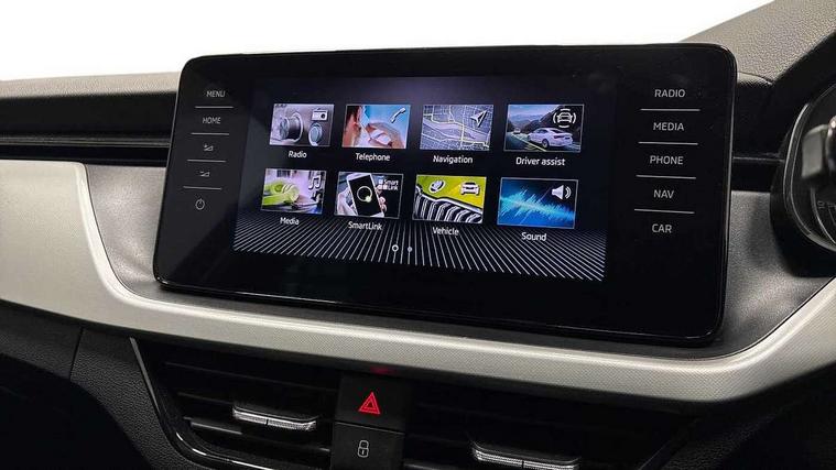 Amundsen satellite navigation with 9.2" glass colour touchscreen display, web radio, voice control and traffic sign recognition, Bluetooth system, E-call, Front assist system, Gesture control, PAS, Service indicator, Speed limiter, Wireless SmartLink for apple car play, android auto and mirrorlink, 8 Speakers, Auxiliary input socket, DAB Digital radio, Body colour bumpers, Body colour door mirrors and handles, Chrome grille surround, Dimming rear view mirror with black surround, Electrically adjustable and heated door mirrors, Front and rear electric windows, Headlight range control, Heated rear window, LED rear lights - low functionality, LED third brake light, Light sensors, Privacy glass, Rain sensor, Rear fog lights, Rear side wing doors, Rear wiper, 12V Accessory socket in centre console, 3 seat bench in 2nd row, Chrome inner door handles, Cloth upholstery, Front head restraints, Glove compartment with illumination, Height adjustable driver and front passenger seats - manual, Ice scraper, Isofix child seat fittings on outer rear seats, ISOFIX on front passenger seat, Manual lumbar support for front seats, Rake/reach adjustable steering wheel, Reading lights, Single front passenger seat, Sun visors with illumination on front passenger, Textile floor mats, Third rear headrest, Top tether for front passenger seat, Umbrella in driver's door, 3x3 point rear seatbelts, Airbags - driver and front passenger, ESP, Front passenger airbag deactivation switch, Front side airbags with curtain airbags, Hill hold control, Manual parking brake, Manual rear child locks, One tone horn, Rear disc brakes, Seatbelt reminder for driver an co-driver, Traction control, Tyre pressure monitor, Anti-theft alarm system with interior monitoring, backup horn, towing protection and remote central locking with SAFE system, Anti-theft wheel bolts, Electronic engine immobilizer, Silver haptic decorative insert on the dashboard with hot stamping in glossy black,