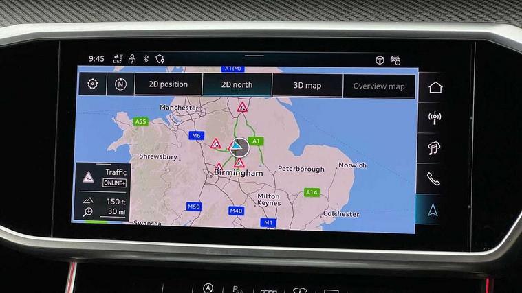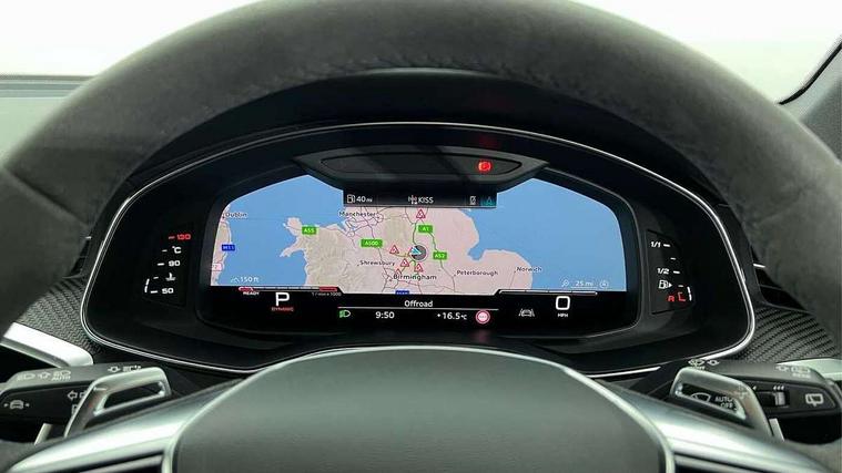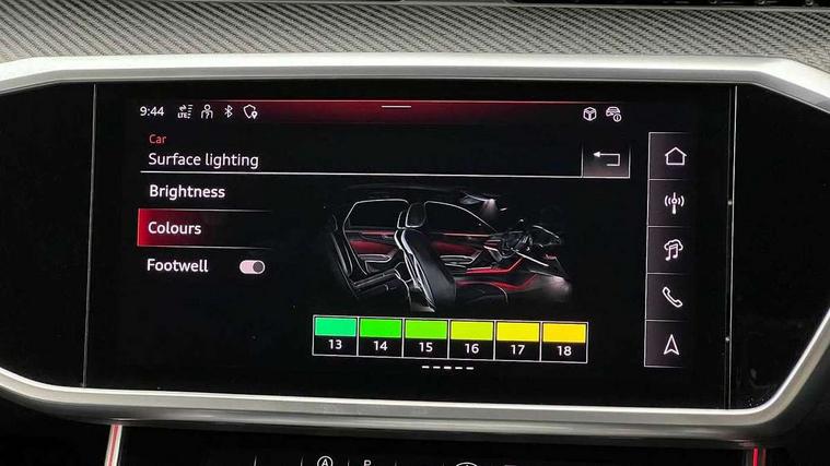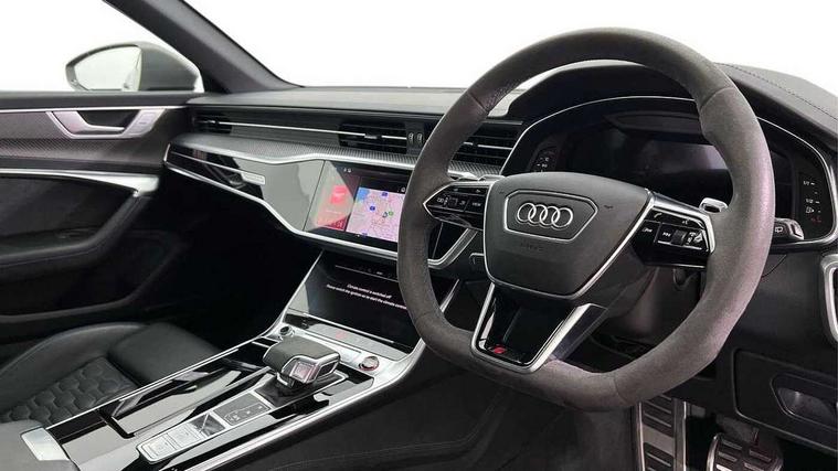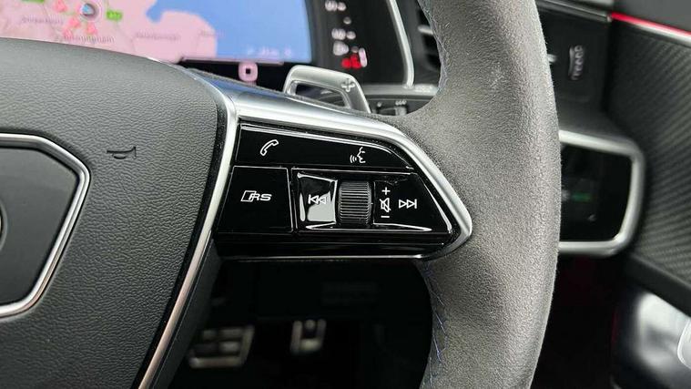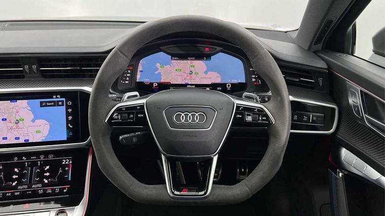 Audi connect safety and service (e-call), Audi connect with Amazon Alexa Integration, Audi drive select with 2 configurable RS modes, Audi smartphone interface with app store includes wireless Apple carplay, Android auto and Amazon alexa integration, Audi virtual cockpit plus with RS specific design and 12.3" display with additional graphic display options, Automatic start/stop system, Bluetooth interface, Convenience key, Dynamic all wheel steering, Head up Display, Lane departure warning system, MMI navigation with MMI touch + twin touch screens 10.1" and 8.6" with haptic and acoustic feedback, Operating buttons in black, glass look with haptic feedback including extended aluminium look, Power operated tailgate, Service interval indicator, Surround view camera system, Voice control system, 48V Mild hybrid technology, 73 litre fuel tank, Increased top speed to 174mph, Quattro sports differential, Audi music interface, Bang & Olufsen 3D Premium Sound System, DAB Digital radio, 3rd brake light, Adaptive windscreen wipers with integrated washer jets, Black audi rings and black RS badges, Electric front/rear windows, Electrically adjustable, heated and folding door mirrors with integrated LED indicators and kerb view function for passenger side, Frameless auto dimming interior rear view mirror, HD Matrix LED headlights with Audi laser light with dynamic light design and dynamic turn signal, Headlight washers, Heat insulating darkened glass in side and rear windows, LED daytime running lights, LED rear combination lamps with dynamic light design and dynamic turn signal, Matt grey mirror housing, Privacy glass with rear/side windows and acoustic glazing side windows, Radiator grille in honeycomb structure, large front air inlets and rear diffuser in gloss black, Rain and light sensors, Rear side wing doors, Rear wiper, RS front bumper with air inlets on both side, RS rear spoiler in body colour, RS sports exhaust system with high gloss black oval tailpipe trims, Towbar preparation, 3 seat bench in 2nd row, 3 spoke RS flat bottom alcantara leather multifunction steering wheel with shift paddles, heated funtion, contrast stitching, RS mode button/RS emblem, 4 way electric lumbar support for driver and front passenger, 4 zone deluxe automatic climate control, Audi phone box light, Electric steering wheel adjustment, Electrically adjustable front seats with driver memory, Entry LED with RS Performance projection (Audi Beam) in front and rear, Front and rear headrests, Front centre armrest, Front seat ventilation, Heated front seats, Illuminated front and rear door sill trims with aluminium inlays and RS6 logo, ISOFIX and Top Tether child seat mounting for the outer rear seats, ISOFIX child seat mounting and Top Tether with front passenger airbag deactivation, RS sports seat plus, Single passenger seat, Stainless steel pedals and foot rest, Air quality pack - RS6, Ambient lighting pack plus - RS6, Matt grey exterior styling pack - RS6, Park assist pack with park assist plus - RS6, Storage pack - RS6, 3 point rear seatbelts, Audi pre sense basic, Audi pre-sense front, Curtain Airbag System, Direct tyre pressure monitoring system, EBD - Electronic brakeforce distribution, Electromechanical parking brake, Electronic Stability Control (ESC) including ABS, ASR and EDL, Extended pedestrian protection measures, Manual child lock in rear doors, Warning triangle and first aid kit, Anti theft alarm with tow away protection, Immobiliser, Keyless Go, Remote central locking, Tyre repair kit,