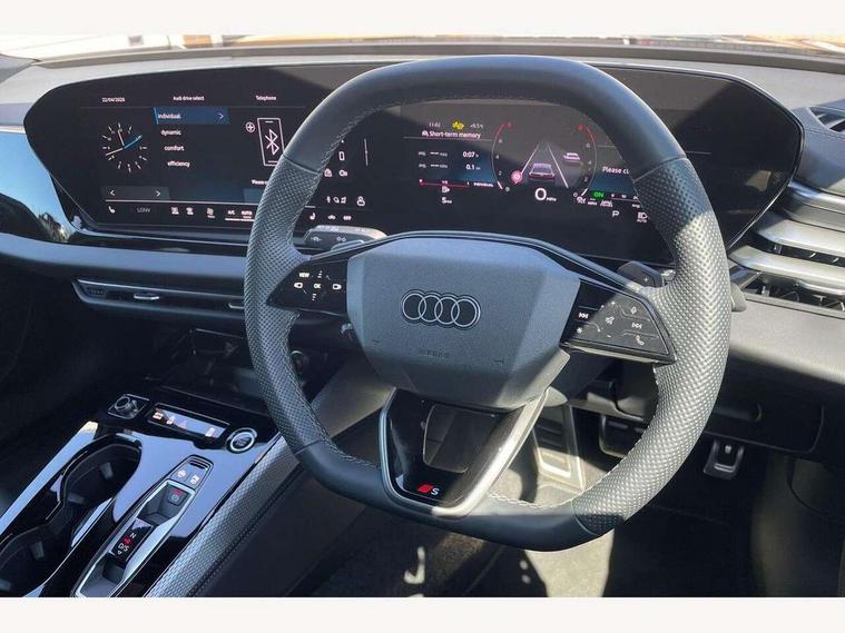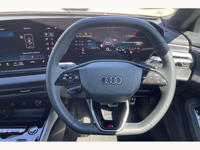 Adaptive cruise control, Advanced driver attention and fatigue montior, Audi application store, Audi assistant, Audi connect emergency call and service, Audi drive select, Audi smartphone interface, Audi virtual cockpit plus with 11.9" OLED colour display, Automatic start/stop system with coasting functionality, Camera based traffic sign recognition, Intersection assist, Lane departure warning, MMI navigation plus with high resolution 14.5" OLED touchscreen colour display, Park assist plus, Parking system plus with 360 display, Progressive steering with servotronic, Rear view camera, Swerve assist and turn assist, Traffic sign based speed limiter, Sports suspension lowered by 20mm, 2 USB-C ports in both the front and rear, Audi sound system impressive sound with 10 loudspeakers including centre speaker and subwoofer, 6-channel amplifier with a total output of 180 watts, DAB digital radio reception, Smartphone compartment with wireless charging, Aluminium window trims, Auto dimming rear view mirror, Body colour door mirrors, Door mirrors - electrically adjustable, heated, folding and auto dimming on both sides, Front and rear electric windows, Front door sill trims with aluminium inlays, illuminated with 'S' logo, High beam assist, LED headlights Plus incl. digital daytime running lights, turning light, all-weather light, motorway light, manouevring light and intersection light, LED rear lights pro incl. dynamic rear indicators and illuminated light strip with animated coming and leaving home function, LED third brake light, Privacy glass, Rear and side windows with heat insulating glass, Rear boot, Rear side wing doors, S Line badges on the front wings, S line bumpers, radiator grille and diffuser in phantom black and diffuser insert in matt anthracite, White rhombus logo projection light in exterior mirrors, Windscreen with acoustic glazing, 3 rear headrests, 3 seat rear bench, 3 spoke leather steering wheel with multi-function buttons with touch control, flattened on top and bottom, with S badging and contrast stitching, 3-zone automatic climate control, 40:20:40 split folding rear seat bench with centre armrest and cup holders, Comfort front centre armrest, Front and rear floor mats, Front seats with manual adjustment for position and 4-way electric lumbar support, Front sport seats with integrated headrest and S embossed logo, Headlining in black cloth, Heated front seats, i-Size child seat mounting on the front passenger side and outer rear seats, i-Size and top tether on the outer rear seats, Luggage compartment lid, electrically opening and closing, Manual steering column height and depth adjustment, Single front passenger seat, Stainless steel pedals and footrest, Steering wheel grips in perforated leather and shift paddles, Ambient lighting package plus - A5, 3x3 point rear seat belts, Driver airbag, Electric child safety locks, First aid kit with warning triangle and vests, Front emergency brake assist, Front passenger airbag, Front passenger airbag deactivation, Front side airbags with head airbag system and front interaction airbag, Hill hold assist, Seat belt monitoring with rear seat occupant reminder, Tyre pressure loss indicator, Anti theft alarm, Anti-theft wheel bolts, Keyless Go, Accent surfaces and control buttons in gloss black, Black dashboard with contrast stitching, Inlays in matt brushed aluminium with linear embossing, anthracite, Softwrap in leatherette with contrast stitching, Upper and lower interior elements in leatherette, Tyre repair kit,