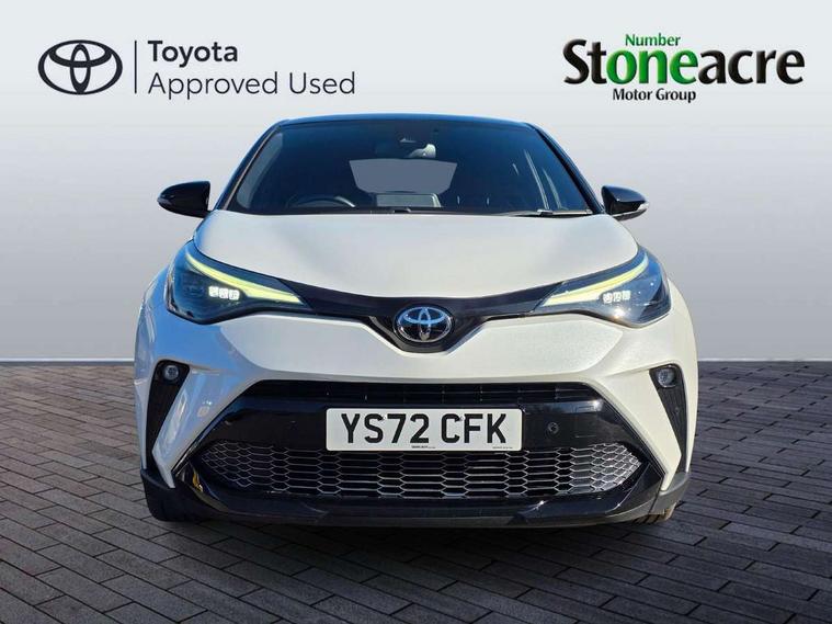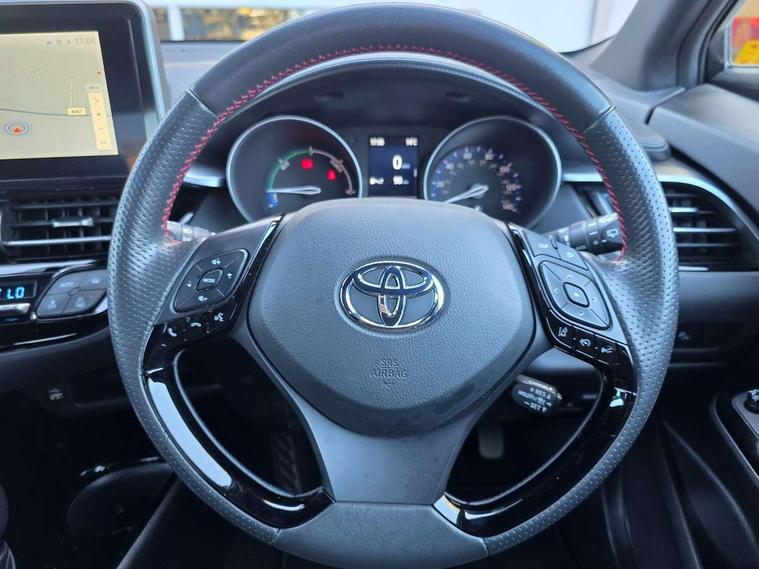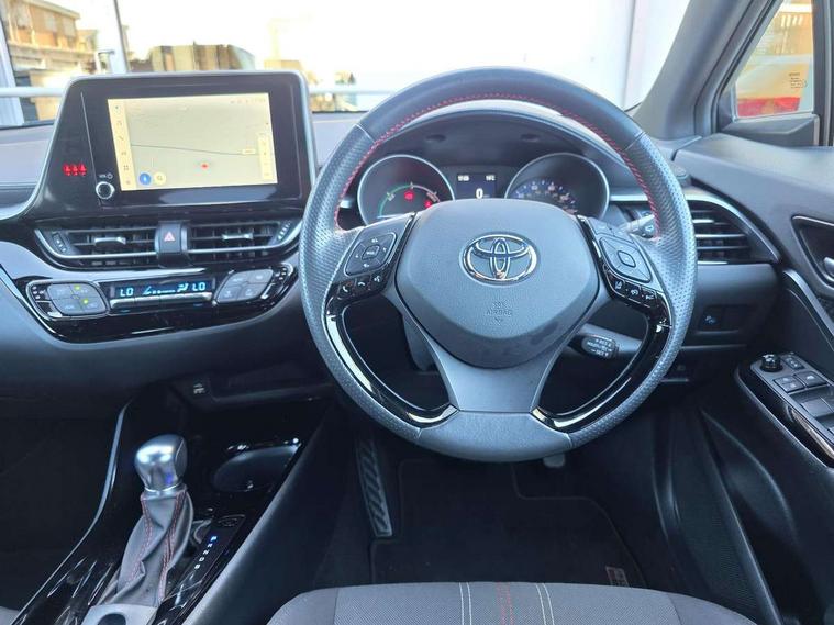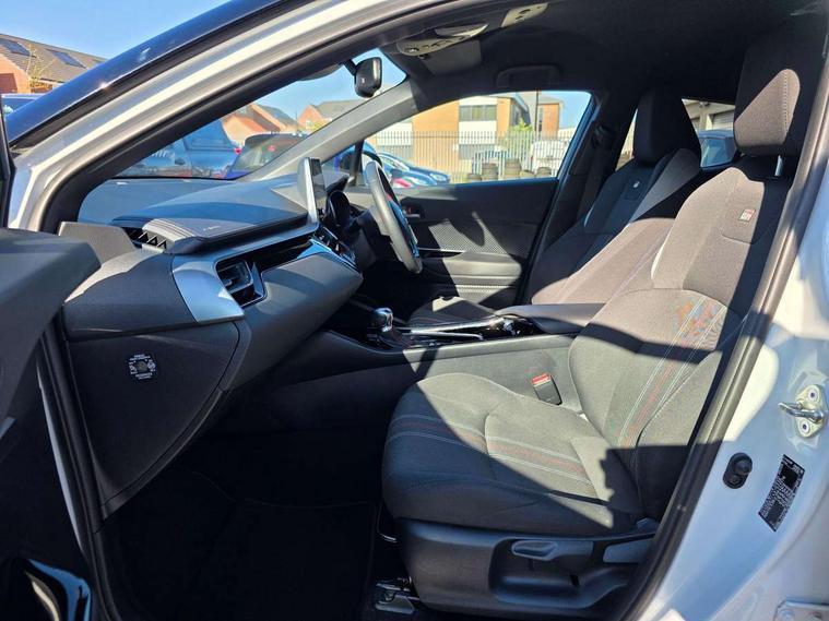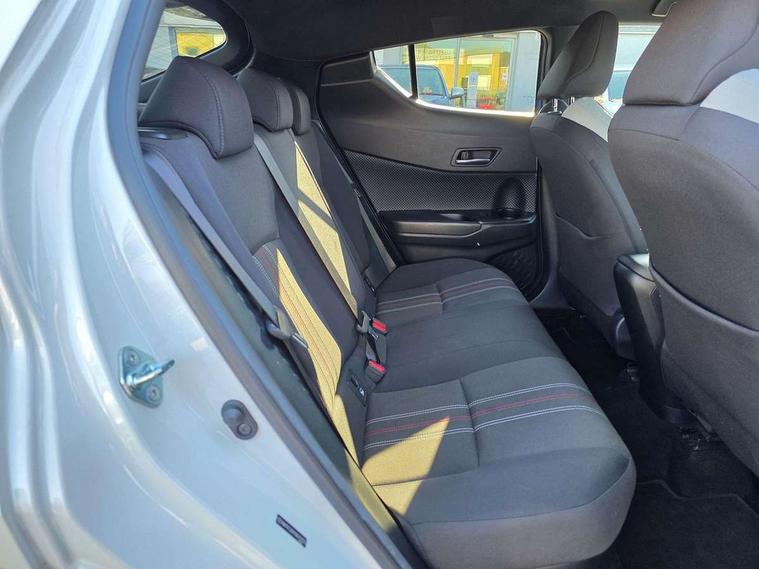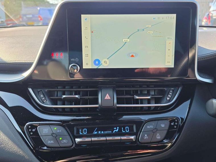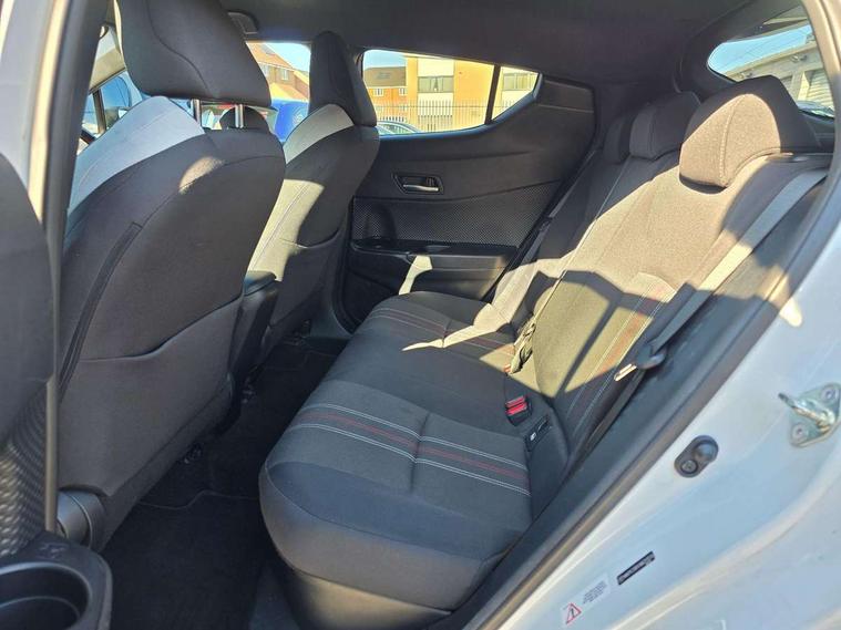 4.2" coloured TFT screen for multi-information display, Adaptive cruise control, Apple car play and Android auto, Bluetooth connectivity, E-call, Electric power steering, Hybrid system indicator, Lane departure alert with steering control, Lane trace assist, Push button tailgate release, Remote boot door release in cabin, Remote boot door release in key, Reversing camera, Road sign assist - RSA, Simple Intelligent parking assist, Smart voice assist, Touch 2 Go navigation system, Trip computer, Voice recognition, Wireless smartphone integration, Vehicle Stability Control (VSC), 6 speakers, AM/FM radio, DAB Radio (Digital Audio Broadcasting), Toyota touch 2 multimedia system with 8" display, USB connector, Wi-fi connectivity, Adaptive front light system, Adaptive LED Headlights, Anti-jam protection on power windows, Auto high beam, Auto up and down function on all power windows, Automatic headlight levelling, Automatic headlights, Automatic headlights cut-off, Black and body coloured rear bumper, Black upper front grille, Body colour door handles, Body colour door mirrors, Body coloured front bumper, Boot door release with push button, Chrome front lower bumper, Electric heated door mirrors, Follow me home headlights, Front and rear power windows, Front spoiler lip in black, Headlight cut off reminder, Honeycomb lower front grille, LED daytime running lights, LED fog lights, LED front light guide, LED High mounted stop light, LED rear brake lights, LED rear combination lights, Noise reduction layer on front windows and windscreen, Power adjustable door mirrors, Privacy glass, Rain sensor, Rear sequential indicators, Rear side wing doors, Rear spoiler, Rear tailgate, Rear window defogger, Rear window wiper, Shark fin antenna, UV-filter on driver and passenger windows, UV-filter on rear windows, Variable front intermittent wipers, 12v power outlet - front, 3 rear headrests, 3 seat bench in 2nd row, 3 spoke perforated leather steering wheel, 60/40 split folding 2nd row rear seats, Adjustable rear headrests, Adjustable speed limiter switch on steering wheel, Assist grips front and centre pillar, Audio and telephone switches on steering wheel, Black front door assist grips, Blue ambient lighting on front cup holders, Blue ambient lighting on front doors, Boot light, Chrome interior door handles, Cloth upholstery, Driver and front passenger personal light, Driver and front passenger Whiplash Injury Lessening seats, Driver and passenger seatback pockets, Dual zone automatic air conditioning, Floor mats, Front cupholders, Front head restraints, Front sports seats, Glovebox with internal light, Hard tonneau cover, Heated driver and front passenger seats, Hooks for luggage holding net, Humidifying Nanoe air purifier, Illuminated entry system, Isofix attachments on outer rear seats, Leather gearshift, Light on driver sun visor, Light on passenger sun visor, Manual telescopic steering wheel, Manual tilt steering wheel, Manually height adjustable driver seat, Manually height adjustable front passenger seat, Manually reclining driver seat, Manually reclining front passenger seat, Manually sliding driver seat, Manually sliding front passenger seat, Microphone on front personal light, Mirror on driver sun visor, Mirror on passenger sun visor, Multimedia switches on steering wheel, Pollen filter, Power adjustable lumbar support on driver seat, Shopping bag hooks, Single front passenger seat, Slow opening on lower glovebox, Voice recognition switch on steering wheel, Tech with parking sensor pack - C-HR, 16 Disk front wheel brake, 3x3 point rear seatbelts, ABS+EBD+Brake assist, Electronic parking brake, Front and rear seatbelt reminder, Front passenger airbag on/off switch, Hill start assist control (HAC), Pre collision system with pedestrian detection, Pre-tensioners and force limiters, Rear door child safety locks, SRS Airbags - Driver + Front passenger, front side, front and rear curtain and driver's knee airbags, Toyota safety sense, Tyre pressure monitoring system, Tyre pressure warning system, Acoustic vehicle alert system (AVAS), Glass-breaking alarm sensors, Immobiliser, Intrusion alarm, Intrusion sensor, Motion sensor alarm, Power door locks, Power passenger window lock, Remote central locking, Black lower dashboard, Black upper dashboard, Piano black console, Silver deco line on upper dashboard, 19" Black machined alloy wheels, Tyre repair kit,